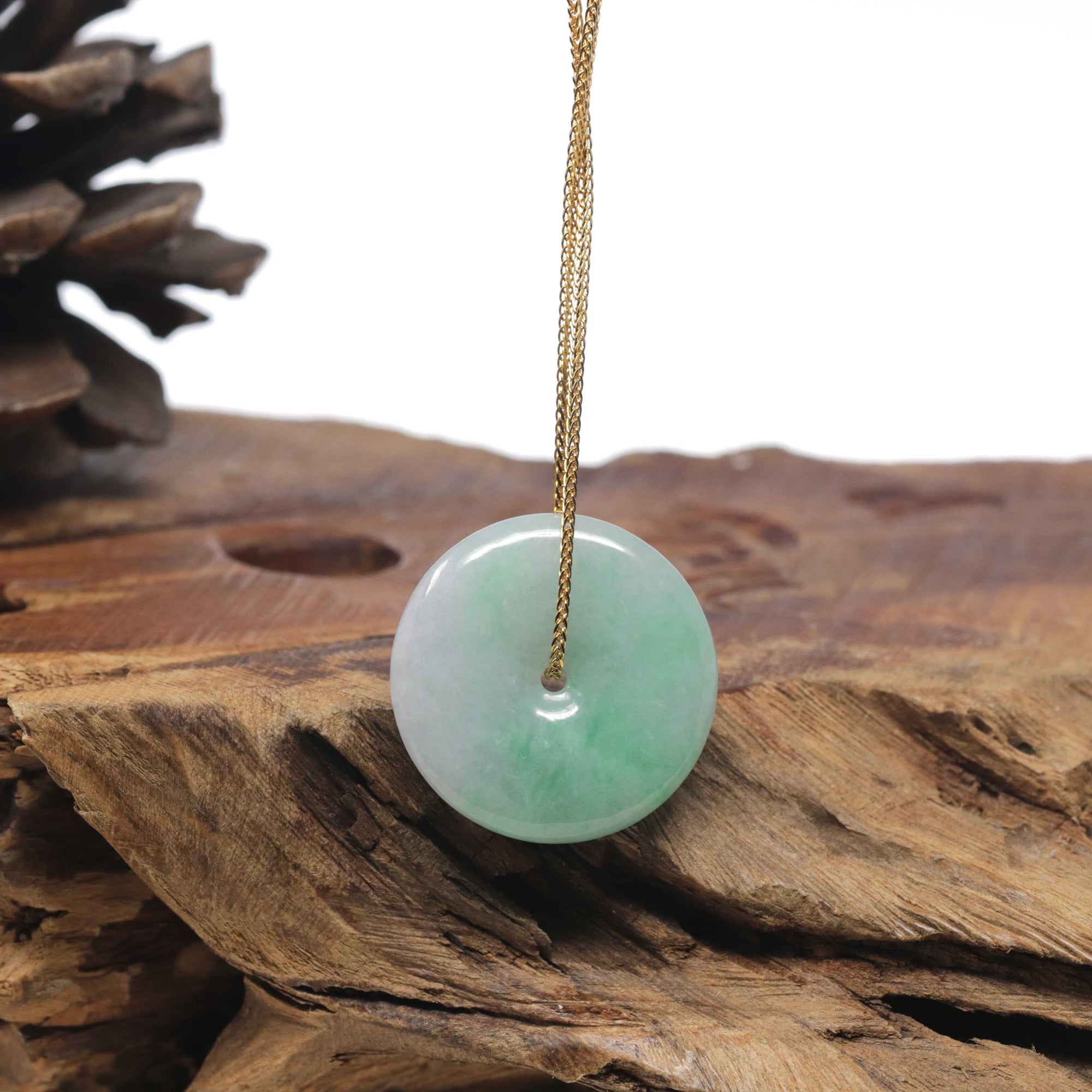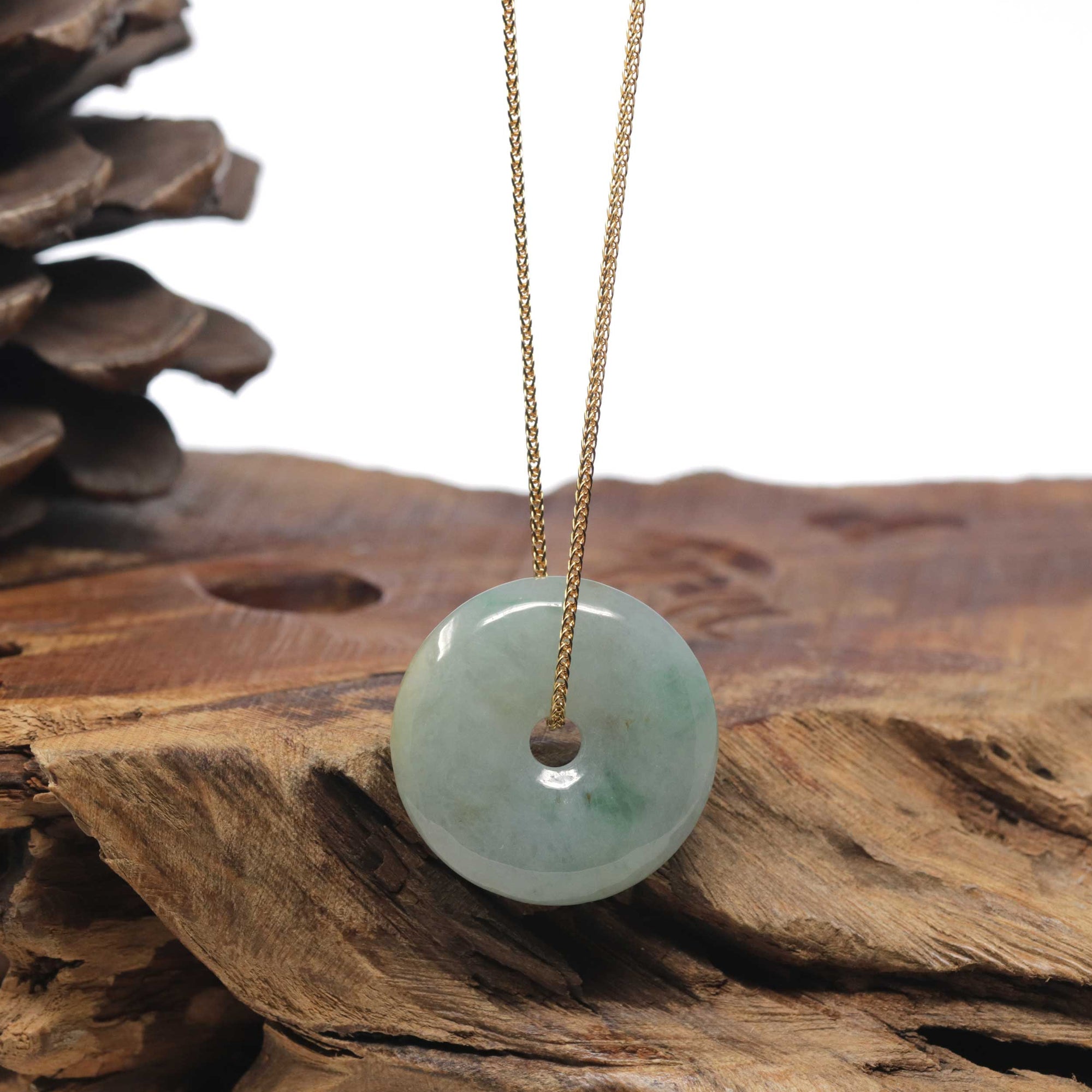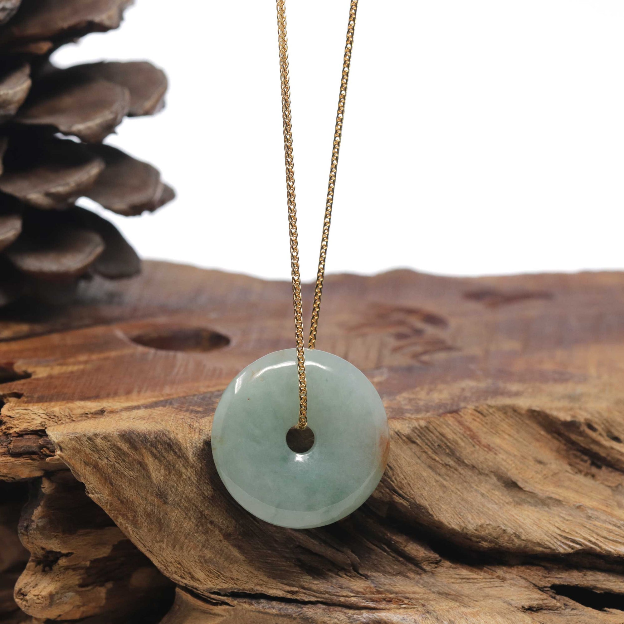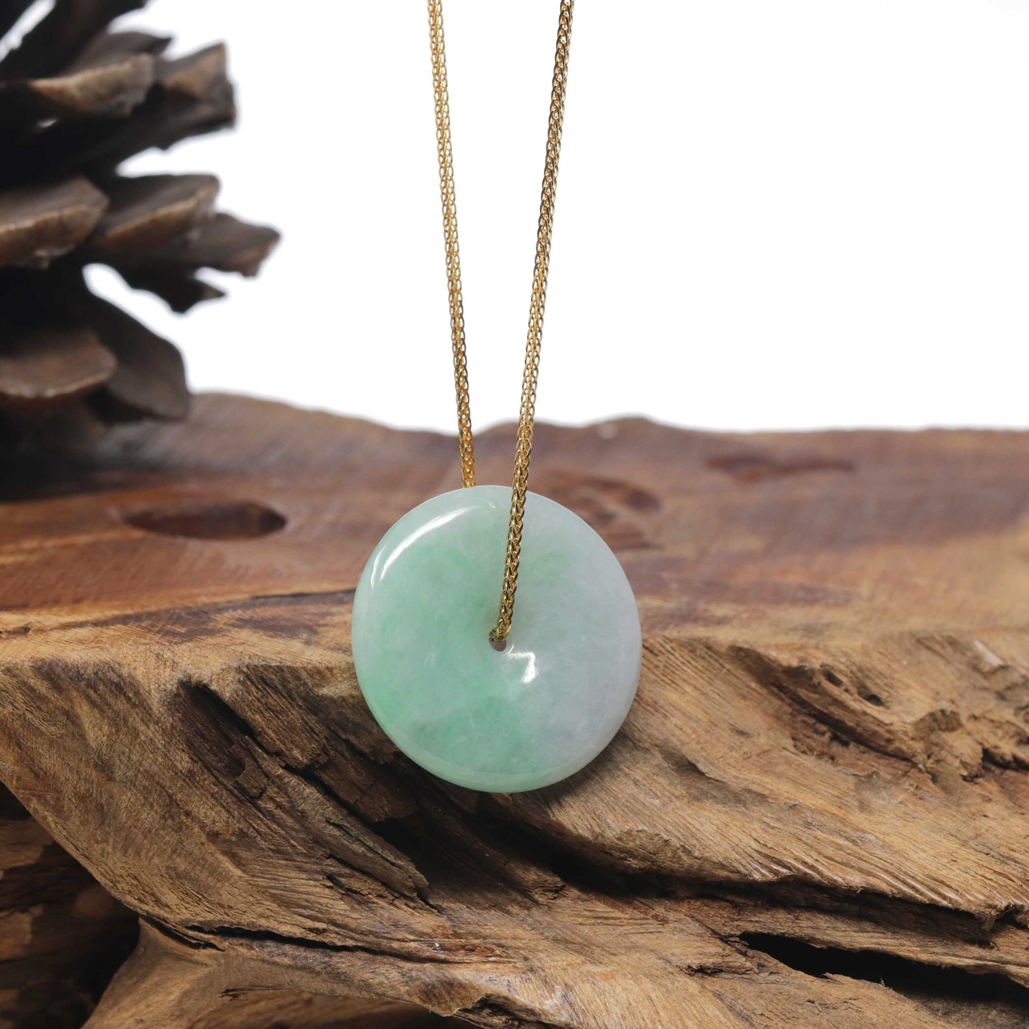 Baikalla™ "Good Luck Button" Necklace Real Light Green Jade Lucky TongTong Pendant Necklace
