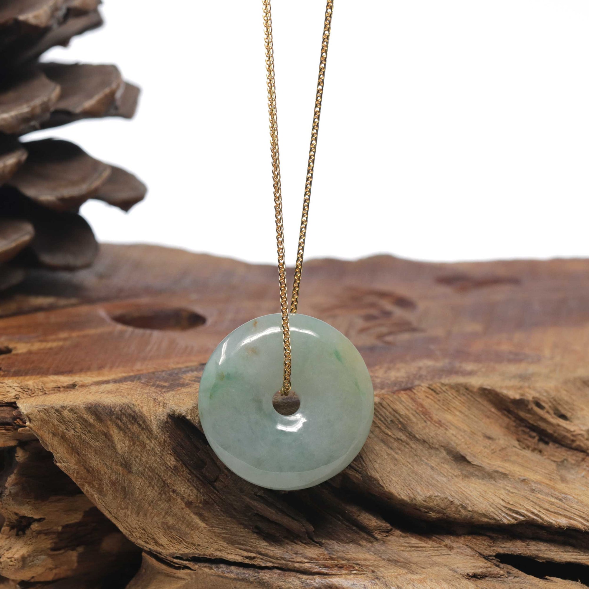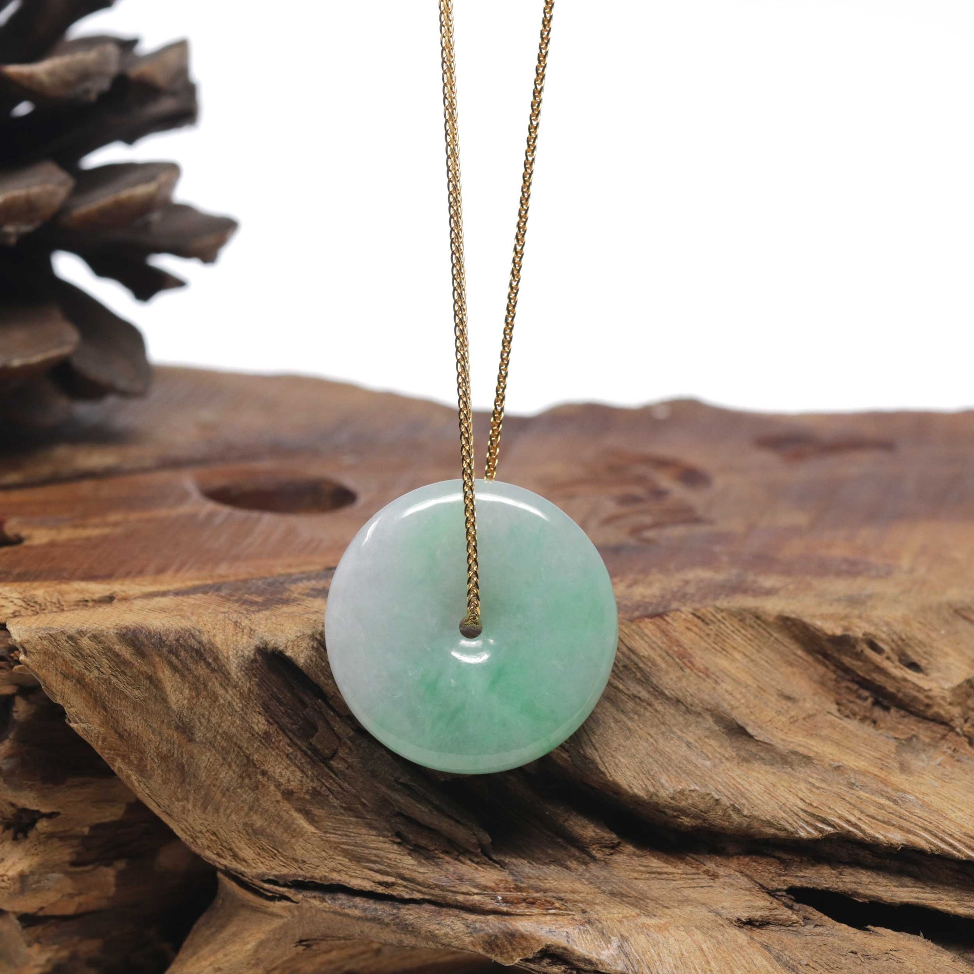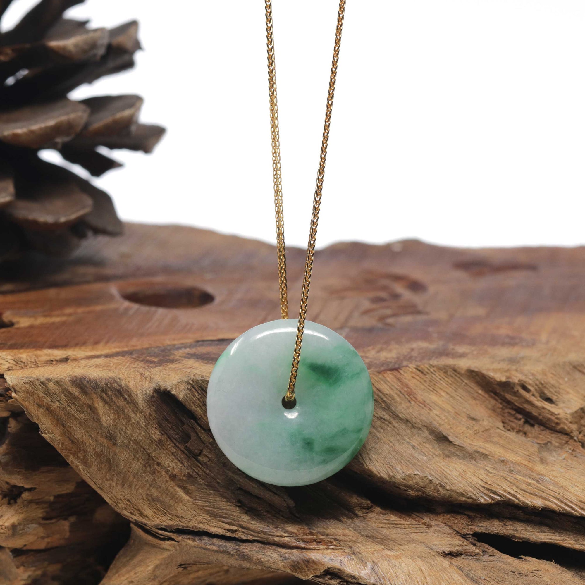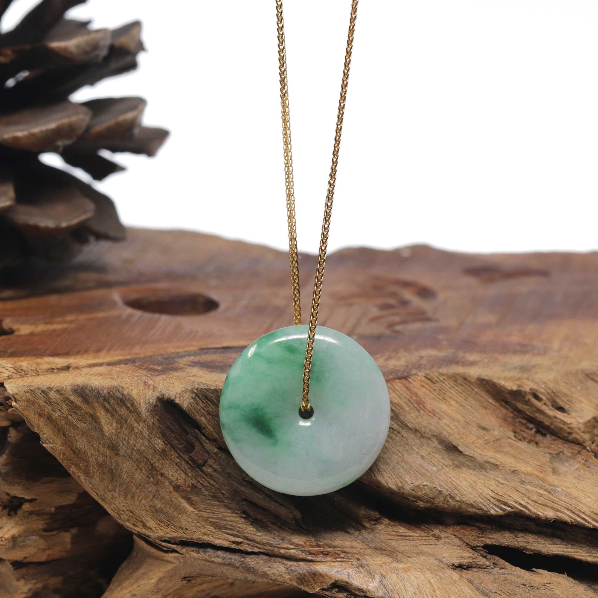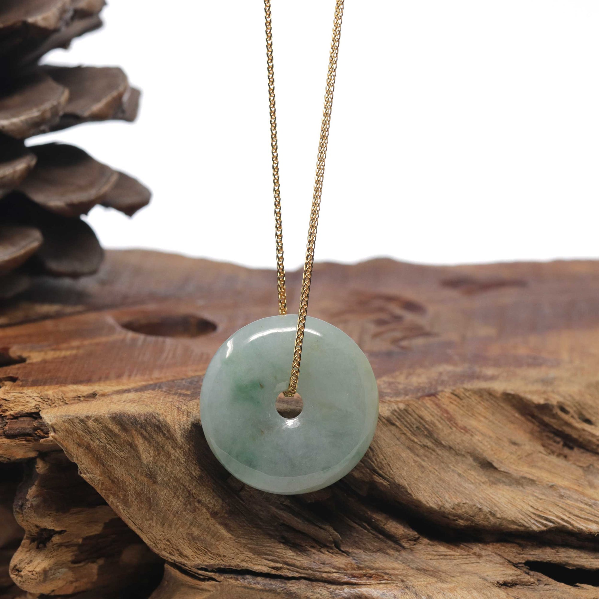 Baikalla™ "Good Luck Button" Necklace Real Light Green Jade Lucky TongTong Pendant Necklace