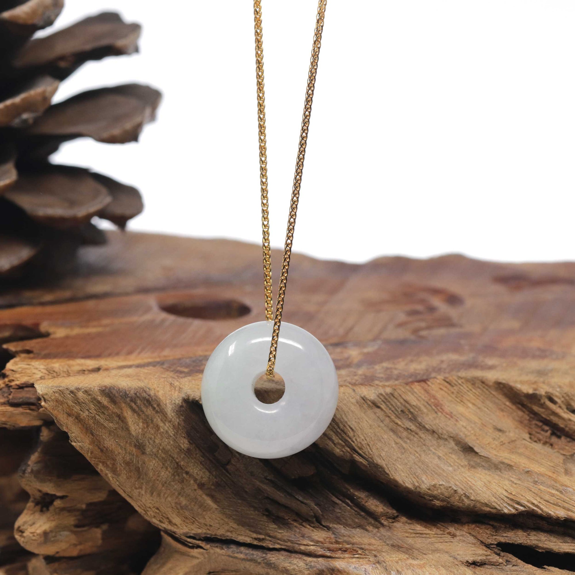 Baikalla™ "Good Luck Button" Necklace Real Lavender Jade Lucky TongTong Donut Pendant Necklace