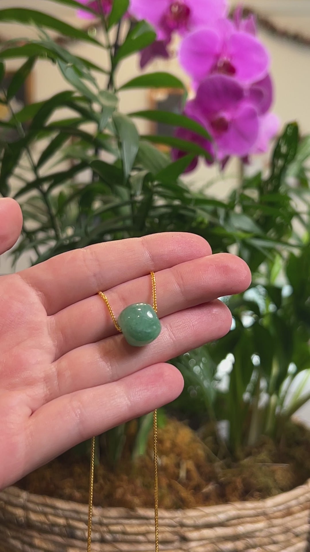 18K Rose Gold Genuine Burmese Green Jadeite "FuShou Melon" Pendant Necklace