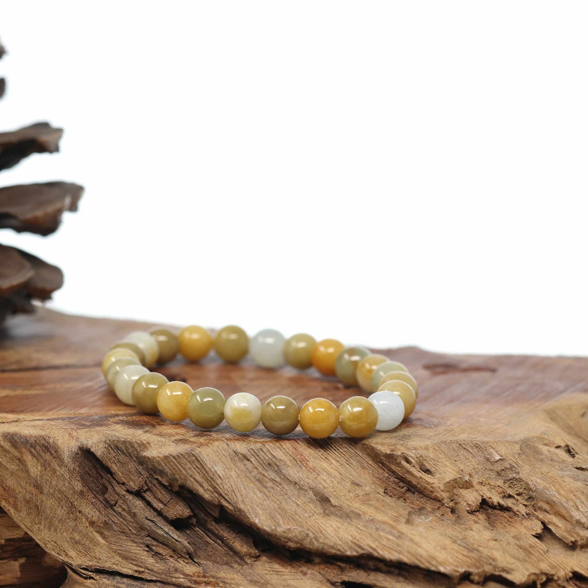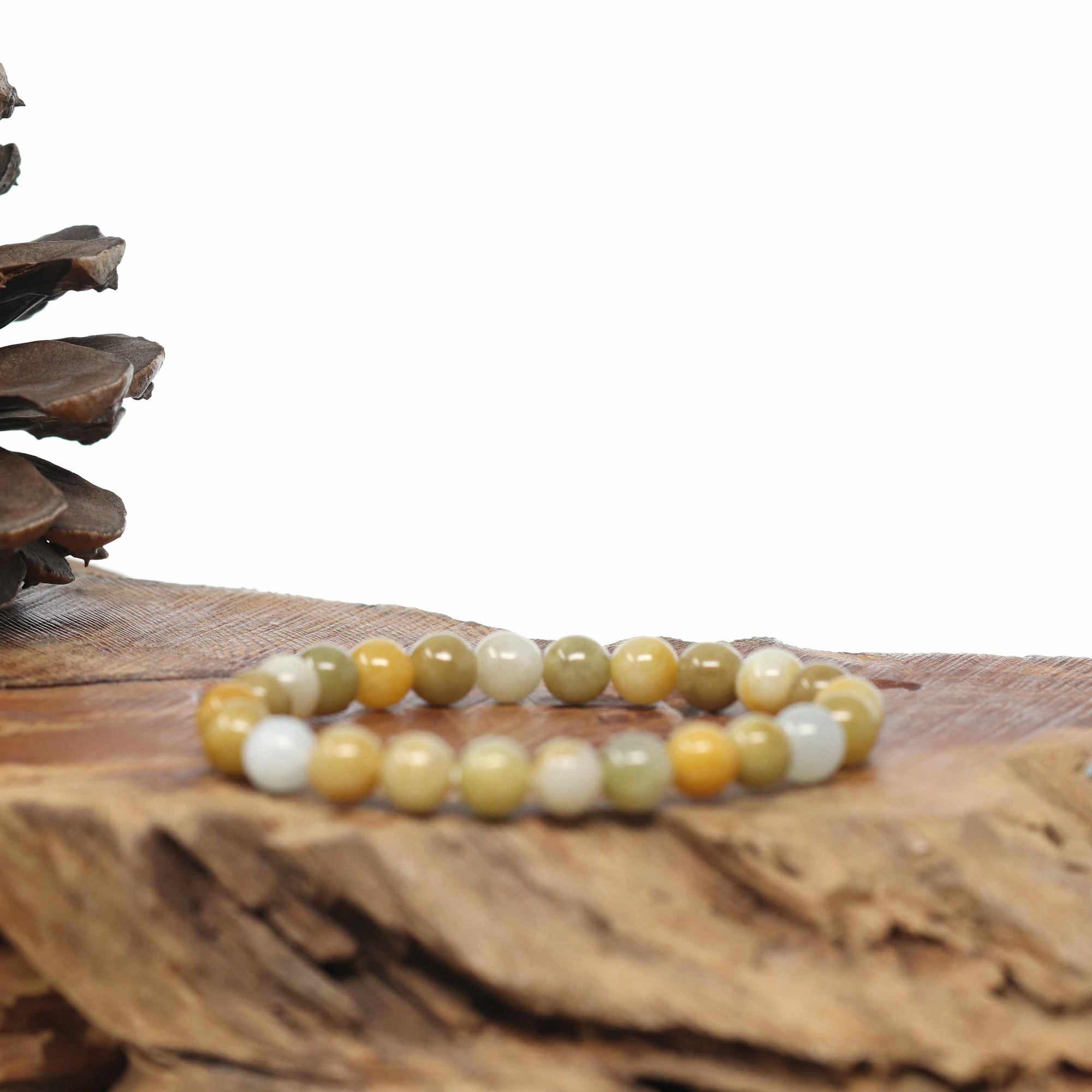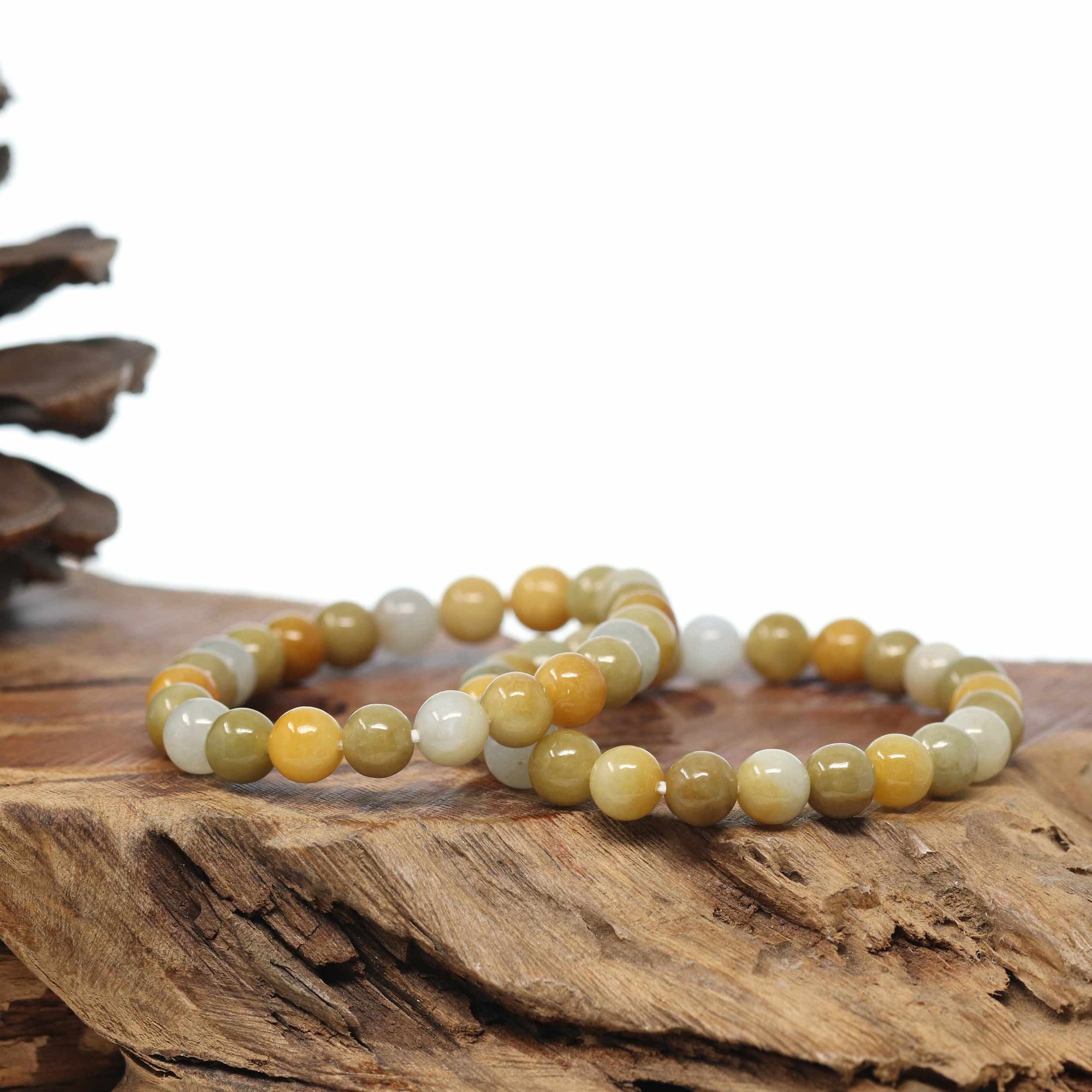 Baikalla Natural Jadeite Jade Round Multi Color Yellow & Green Beads Bracelet (9.5mm)