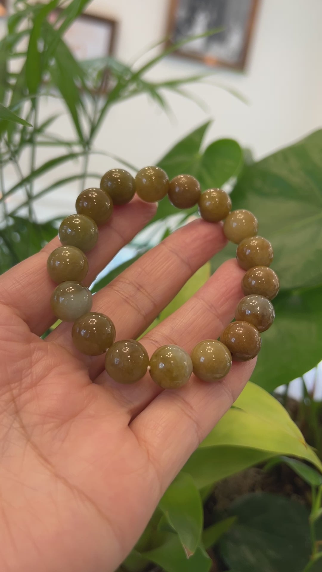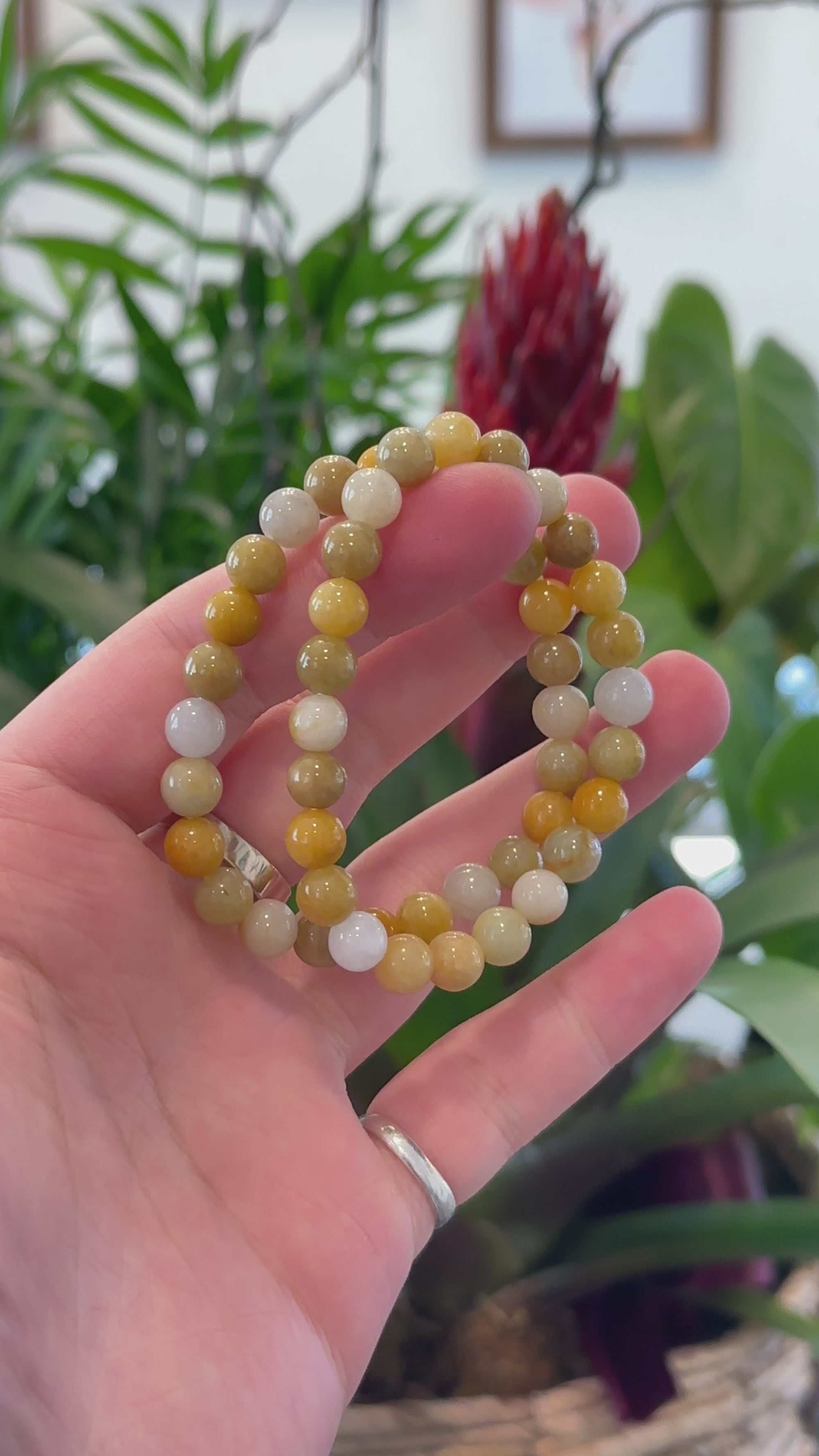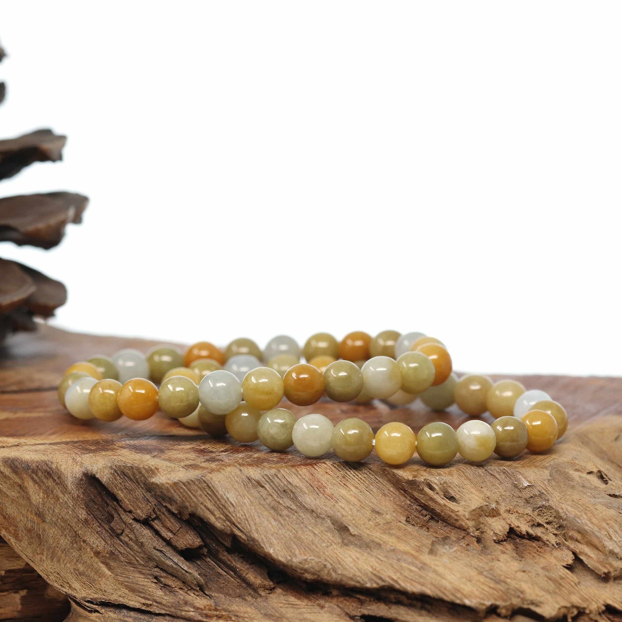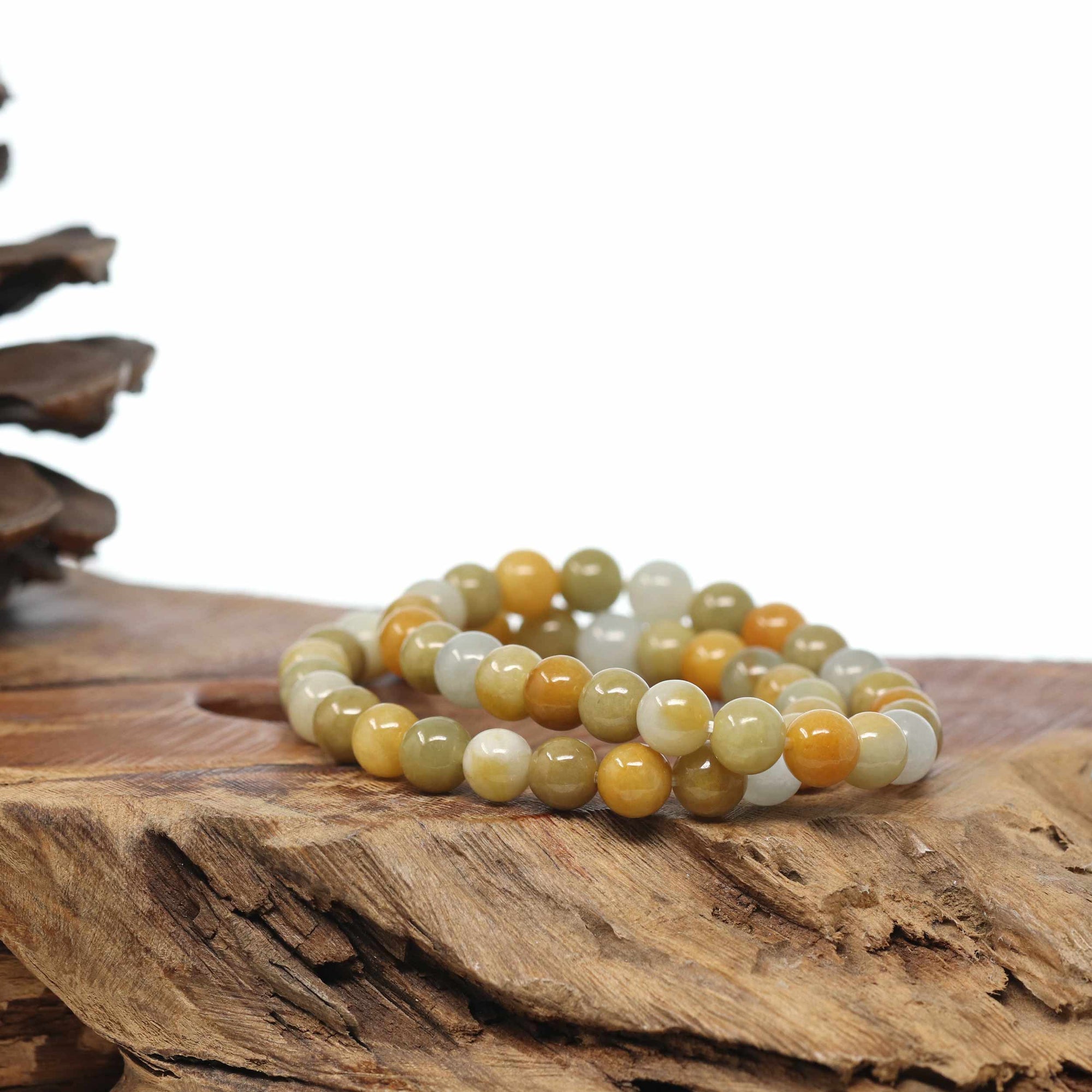 Baikalla Natural Jadeite Jade Round Multi Color Yellow & Green Beads Bracelet (9.5mm)
