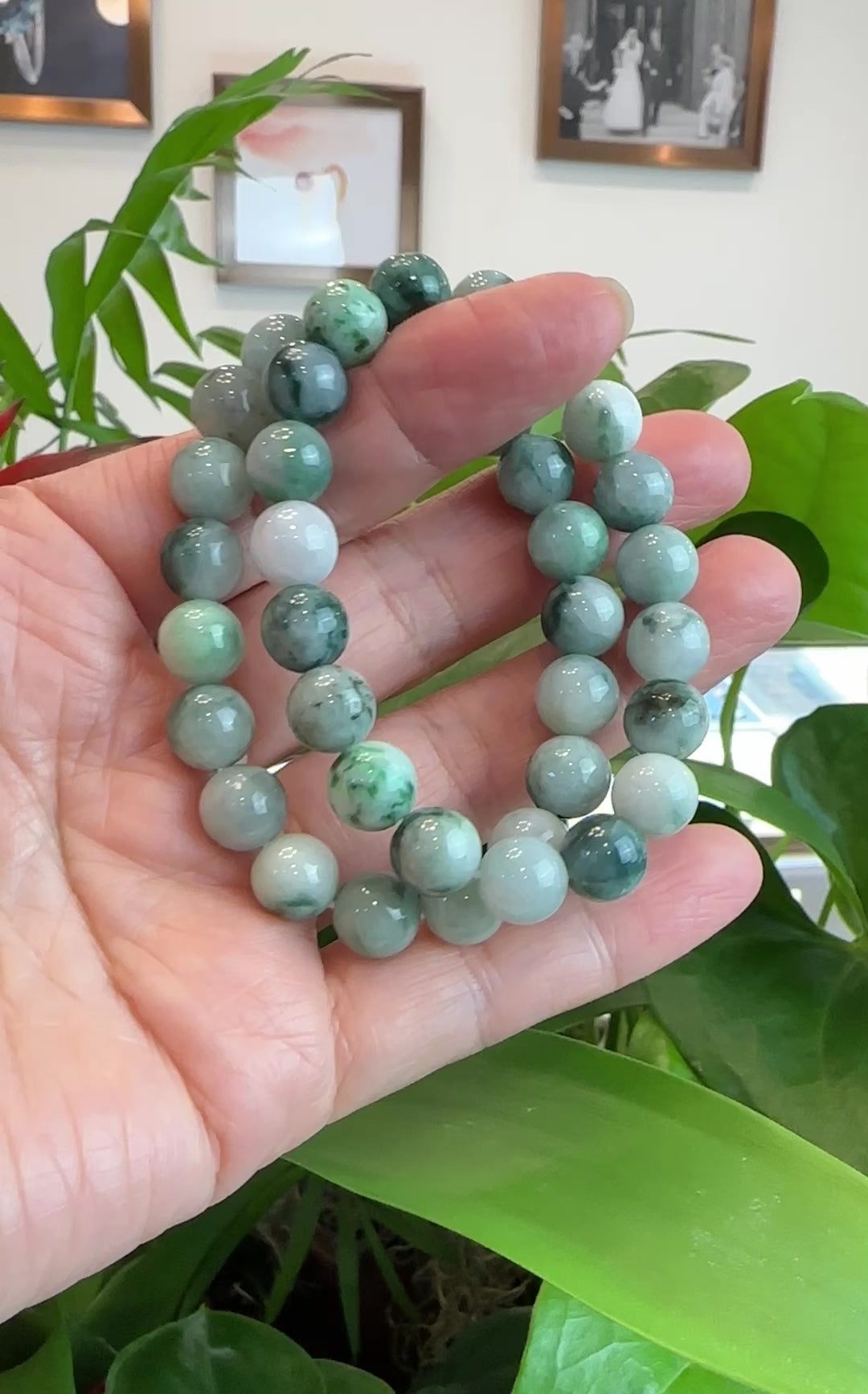 Genuine Jadeite Jade 10mm Round Blue Green Multiple Color Beads Bracelet (10mm)