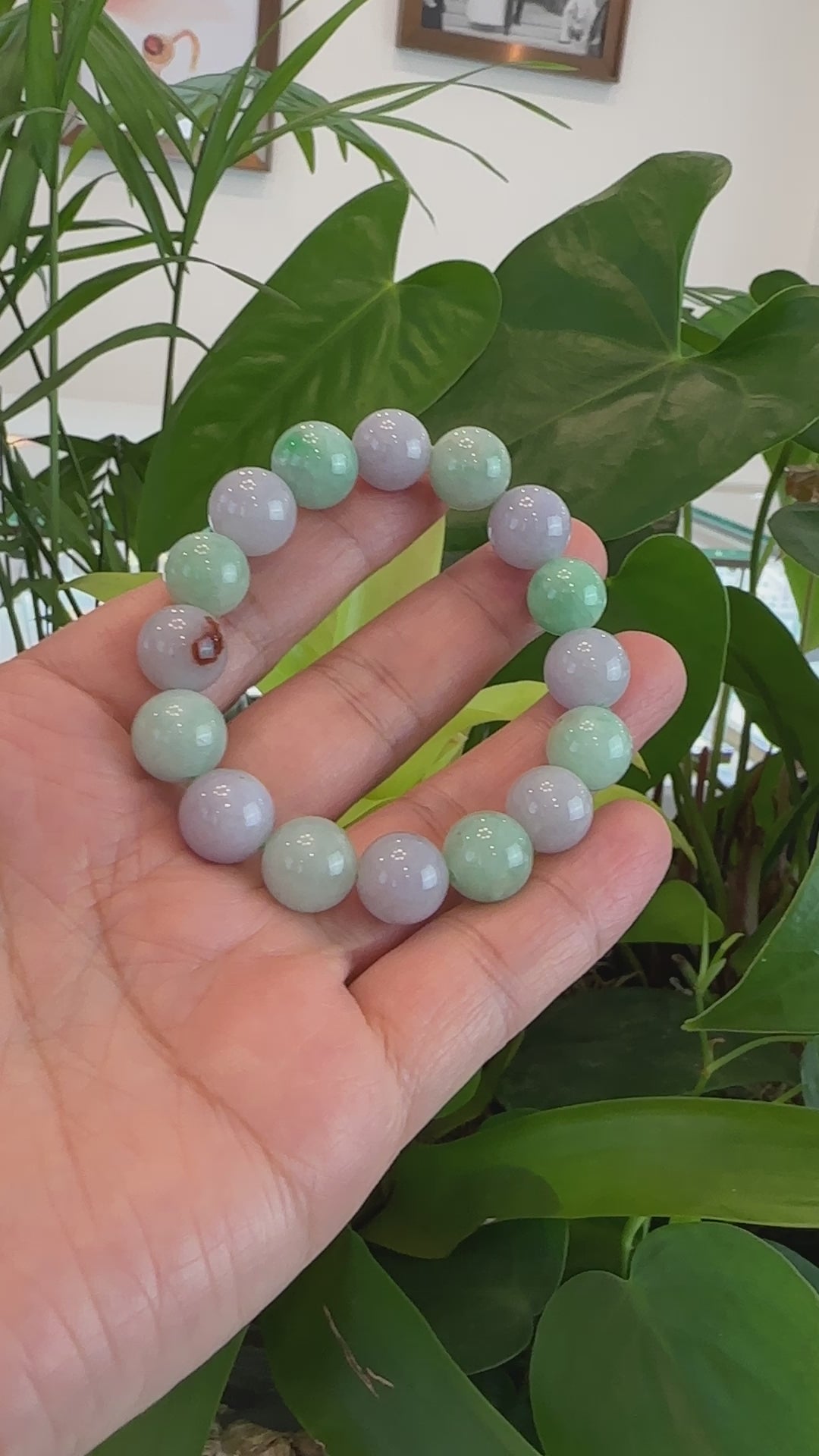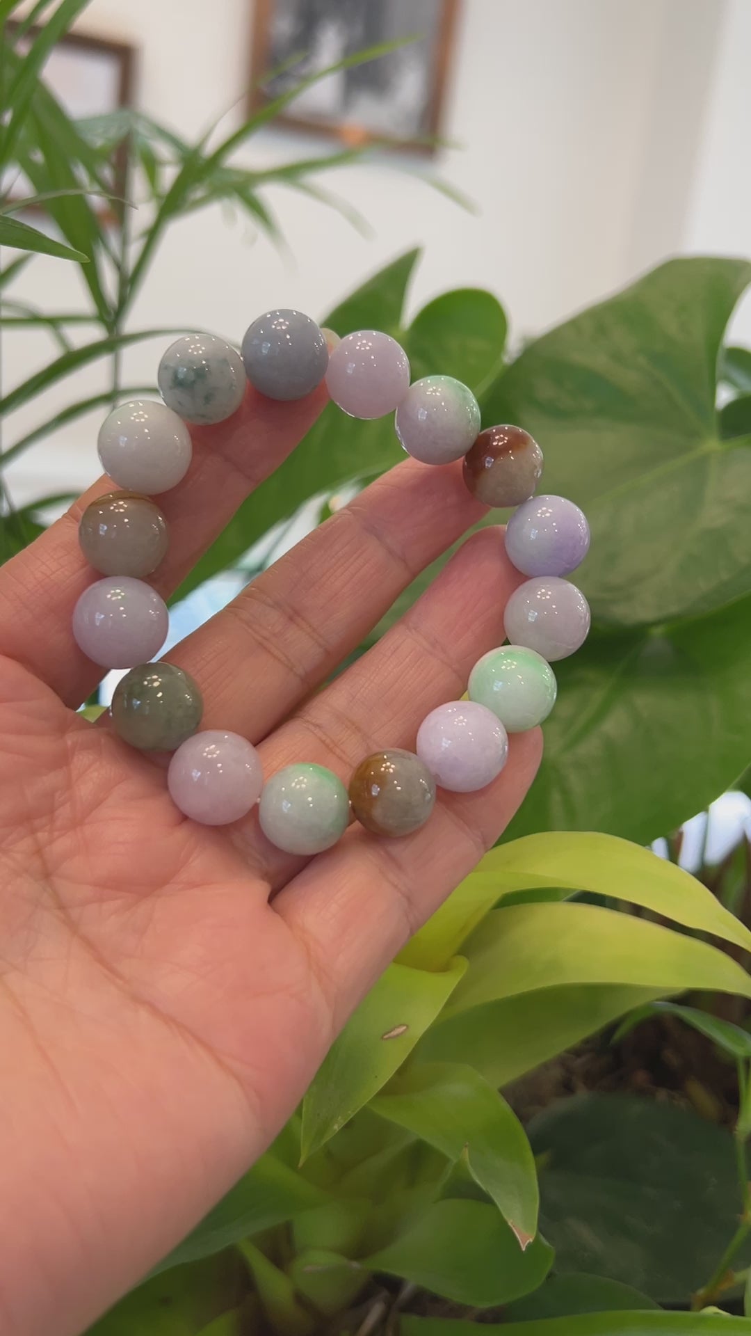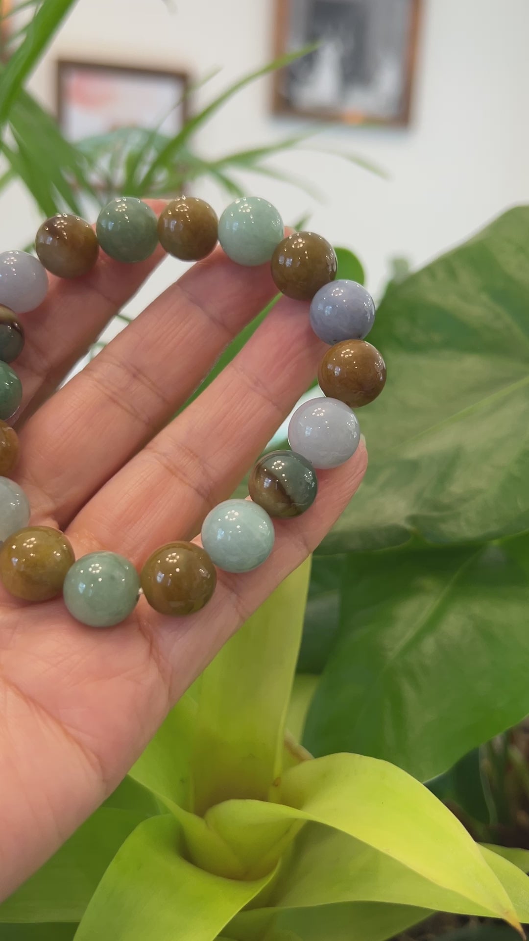 High end Genuine Jadeite Jade Round Multiple Colors Beads Bracelet (12 mm)