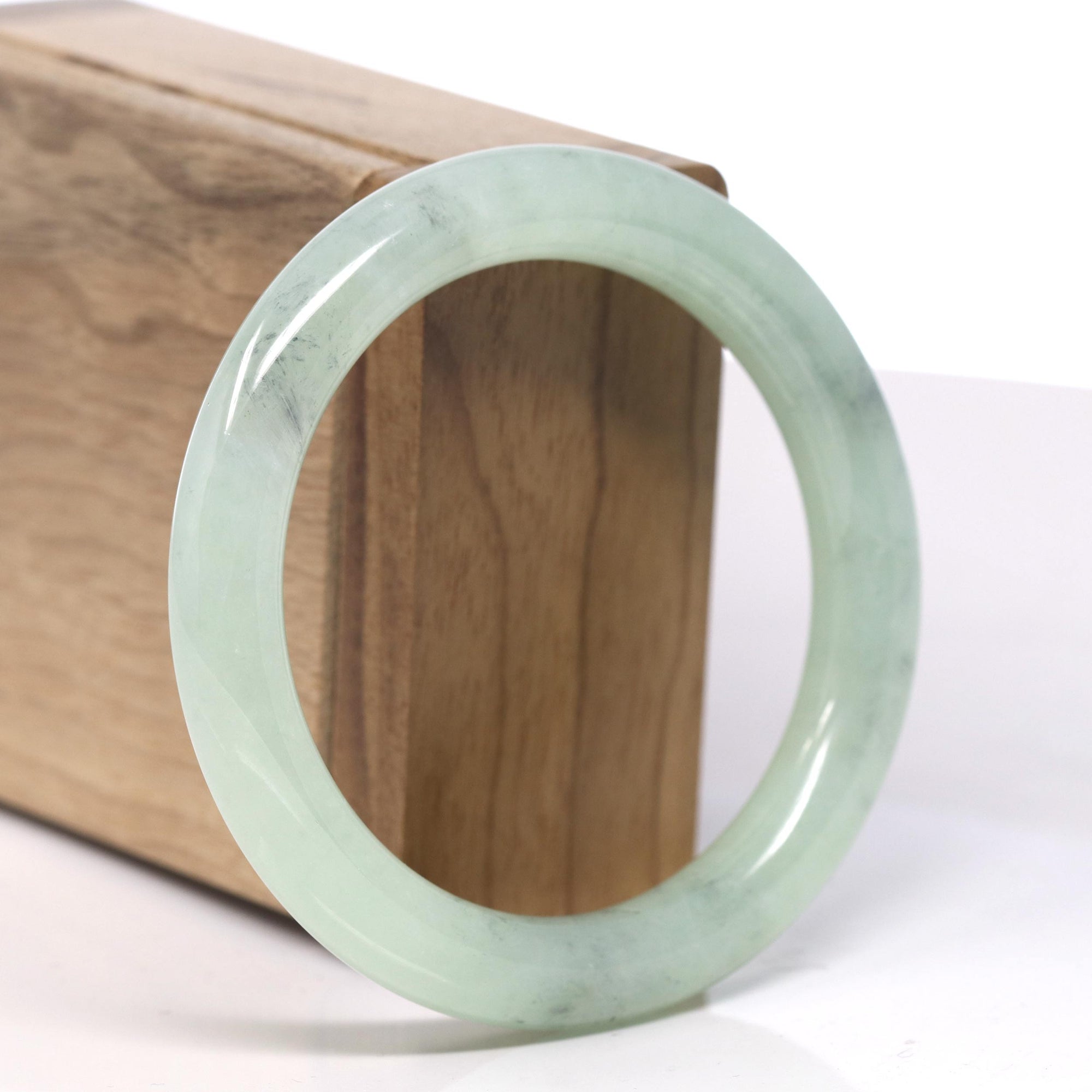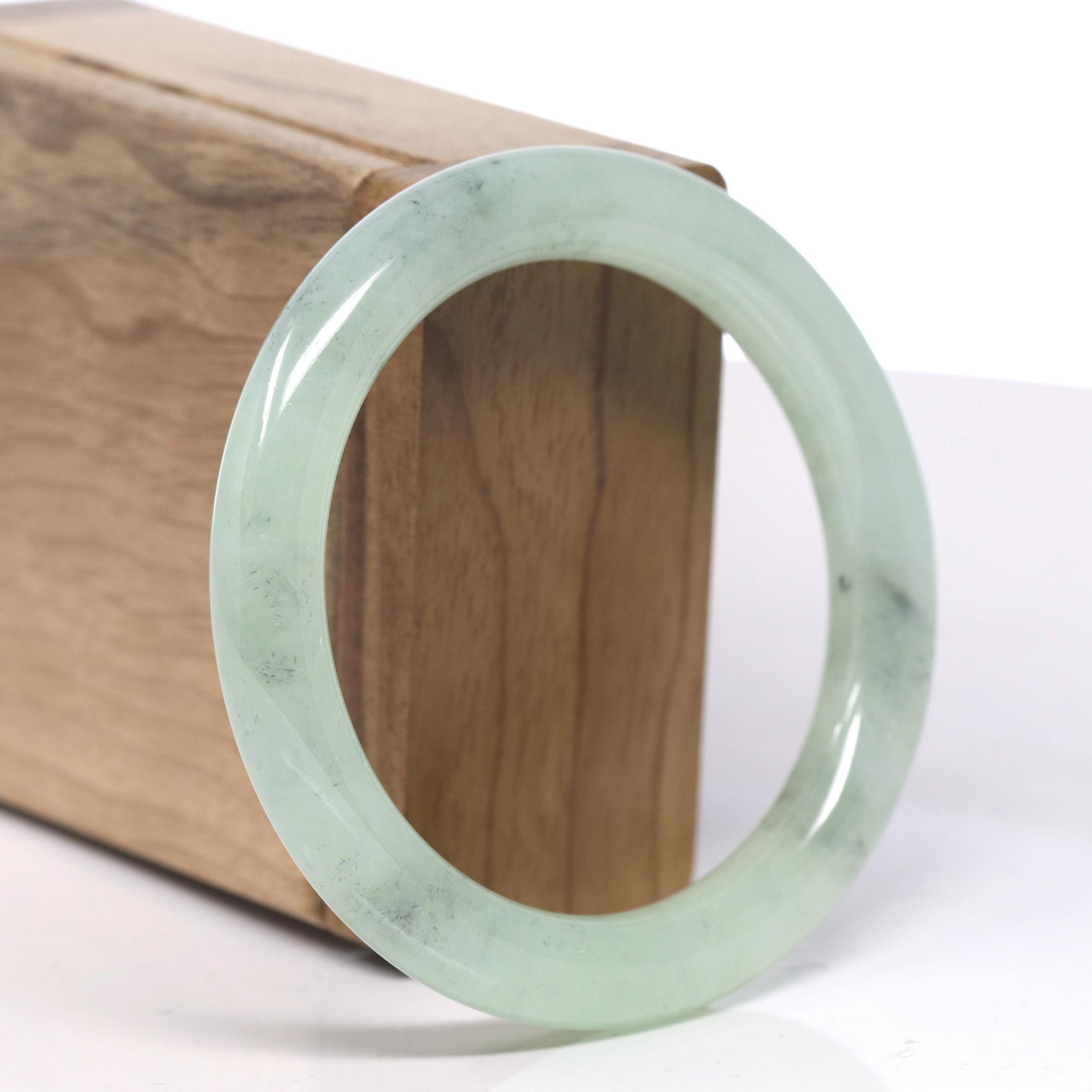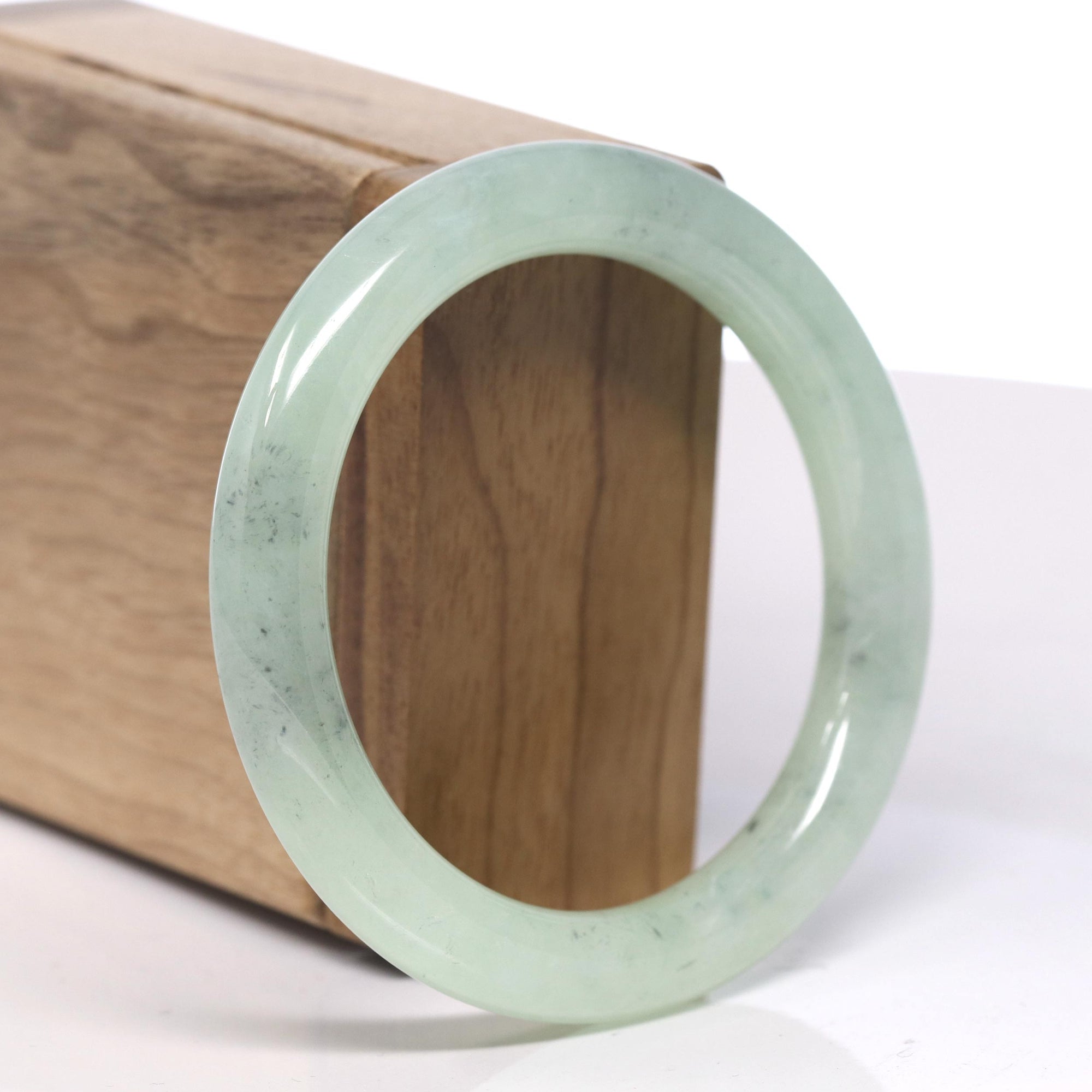 Baikalla Light Icy Green with Specks of WuJi (乌鸡) "black chicken" Jade Bangle Bracelet (55mm) #TT046