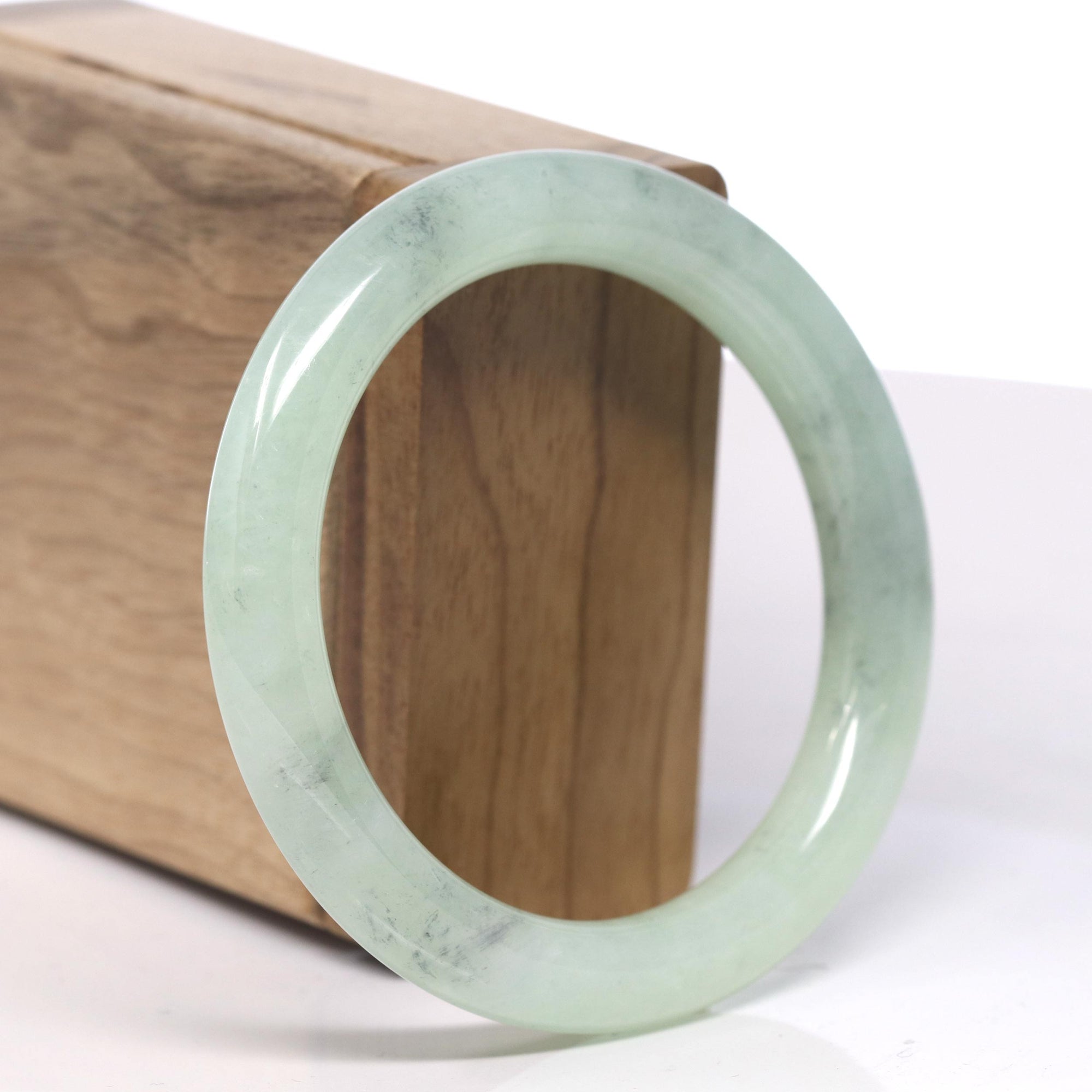 Baikalla Light Icy Green with Apple Green Patch Jade Bangle Bracelet (55mm) #TT047