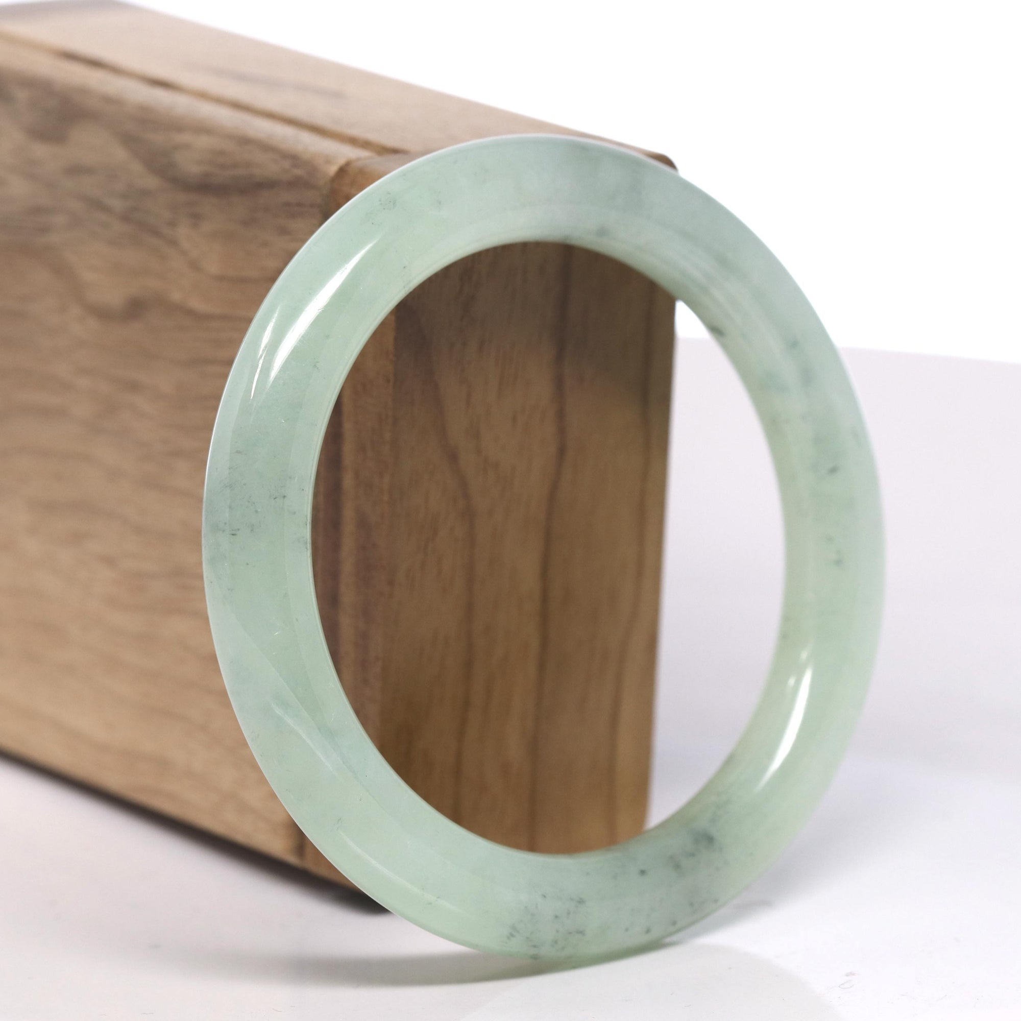 Baikalla Light Icy Green with WuJi Specks Jadeite Jade Bangle Bracelet (53.5mm) #TT020