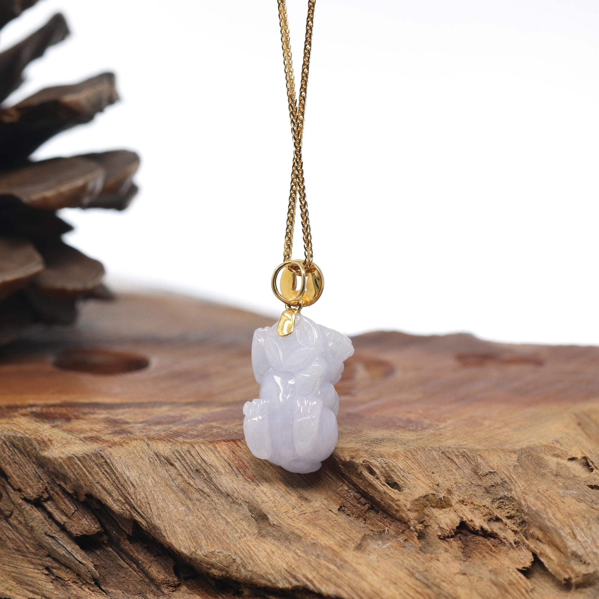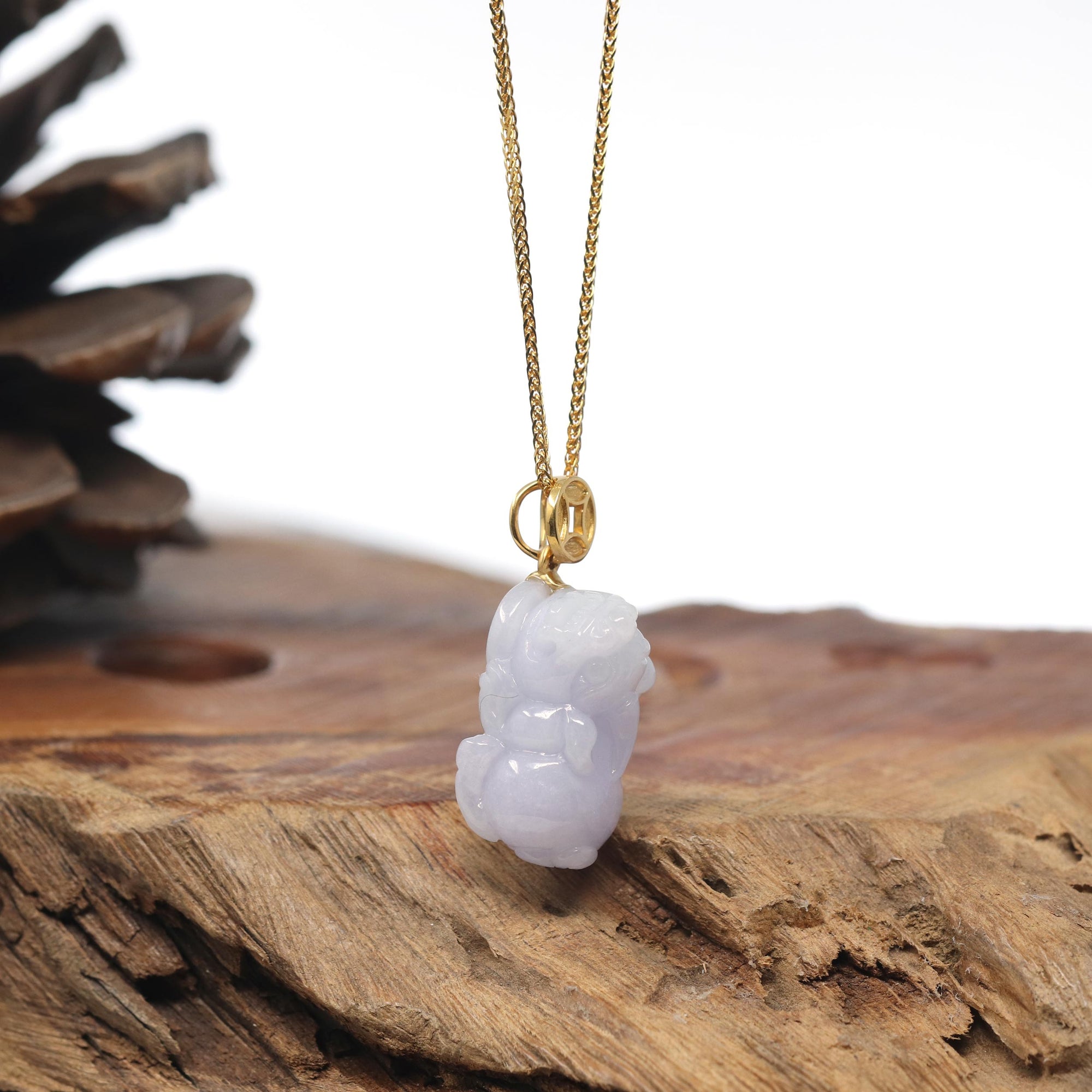 Genuine Burmese Lavender Jadeite Jade PiXiu Pendant With 18K Yellow Gold Bail