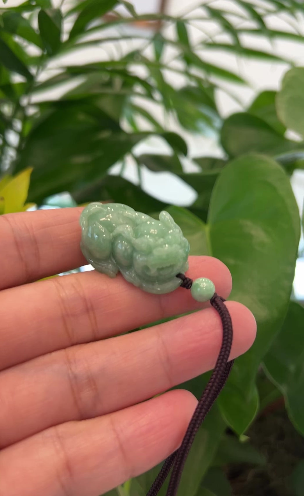 Baikalla™ Pi Xiu Genuine Burmese Apple Green Jadeite Jade PiXiu Pendant Necklace (FengShui Lucky)