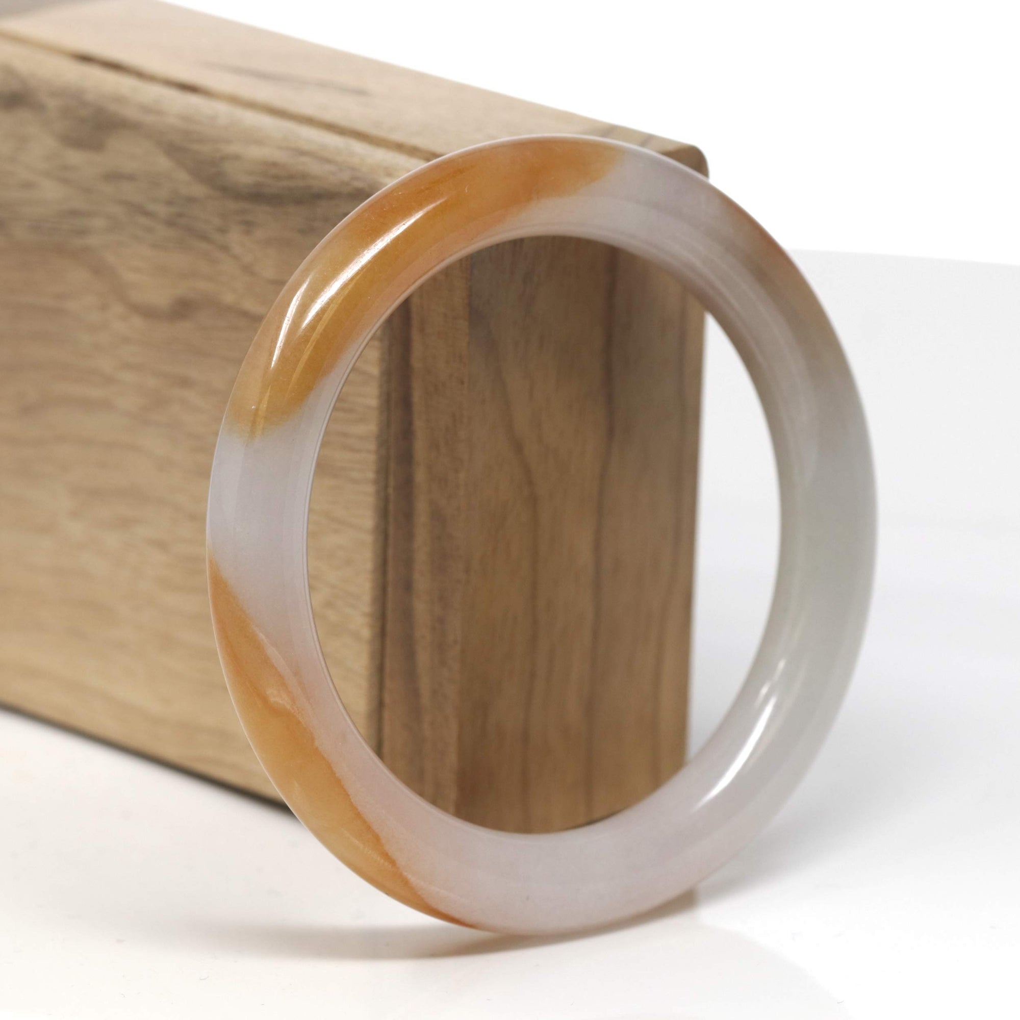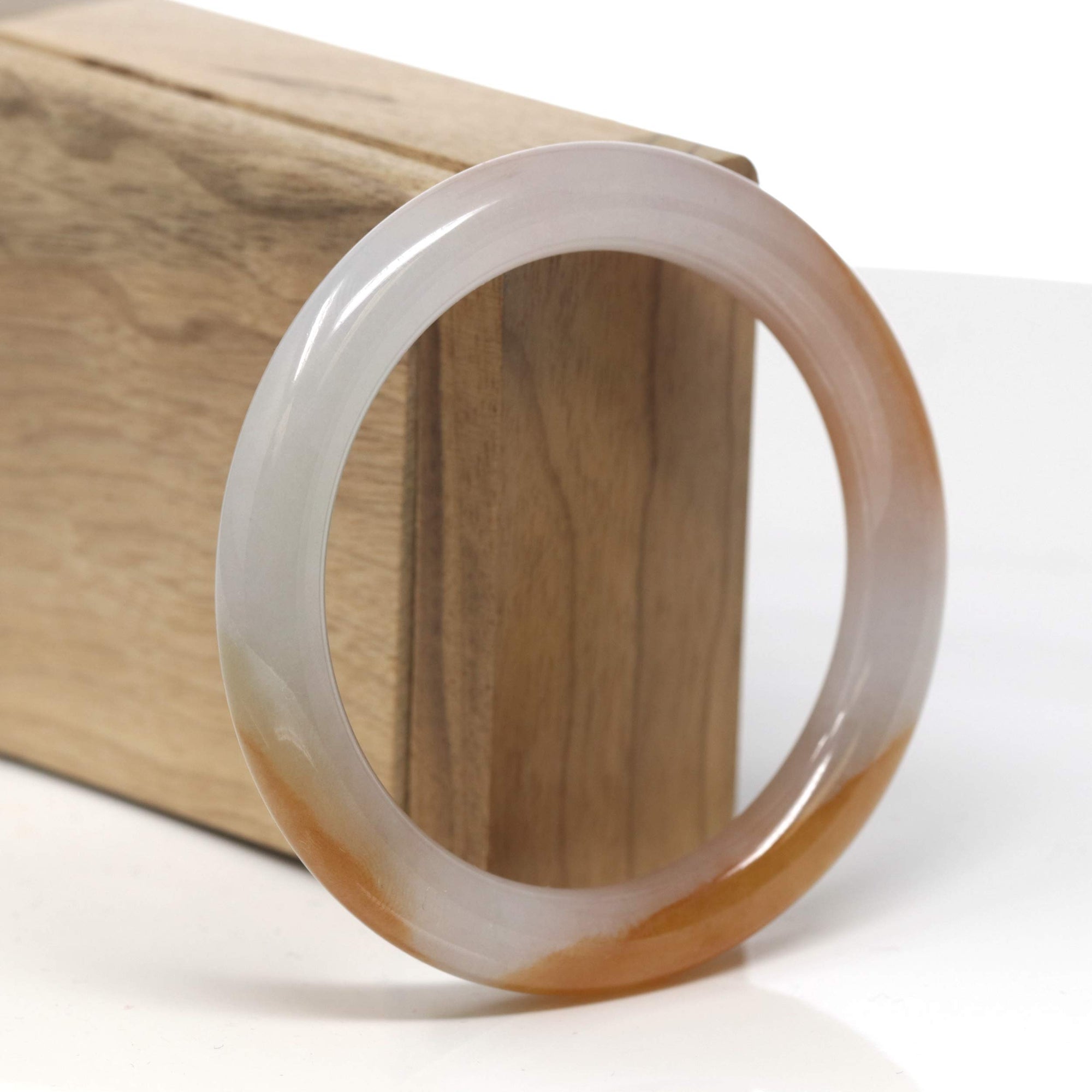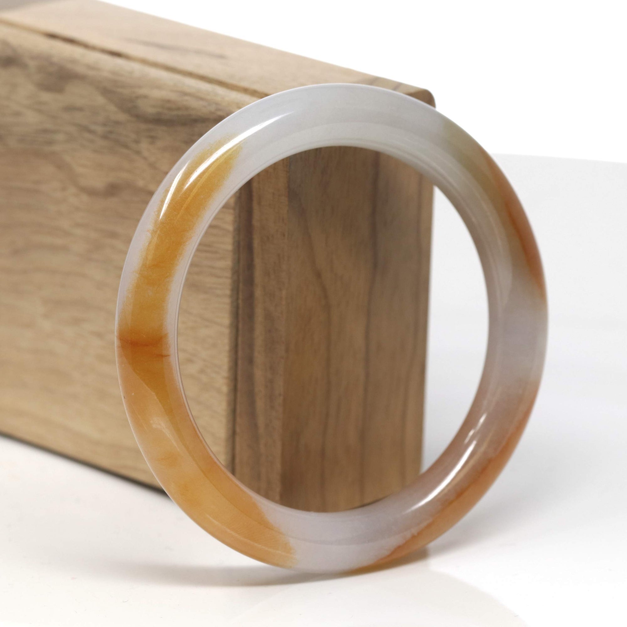 Baikalla Icy White & Deep Orange "Traditional Round" Jadeite Jade Bangle Bracelet (56.6mm) #TT335