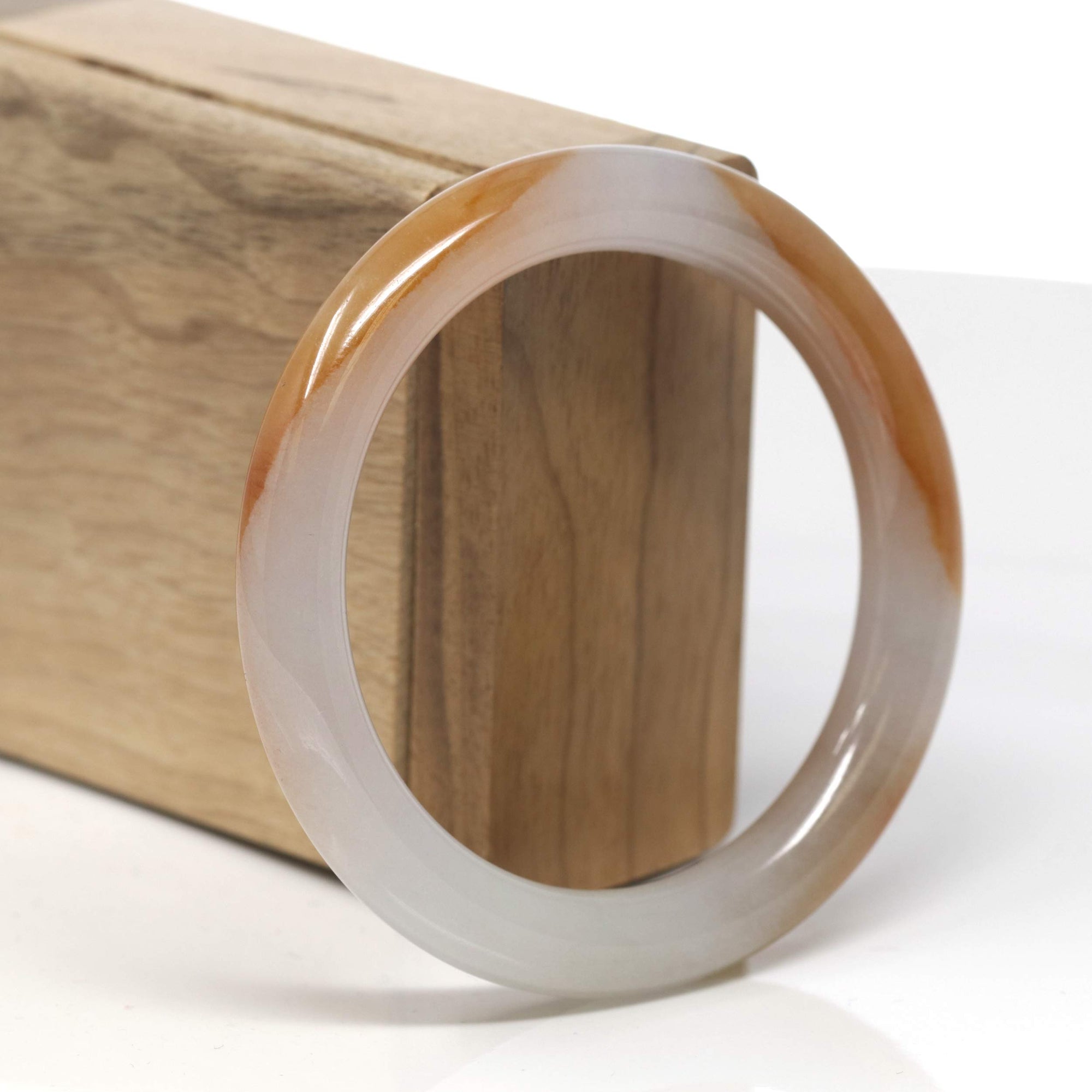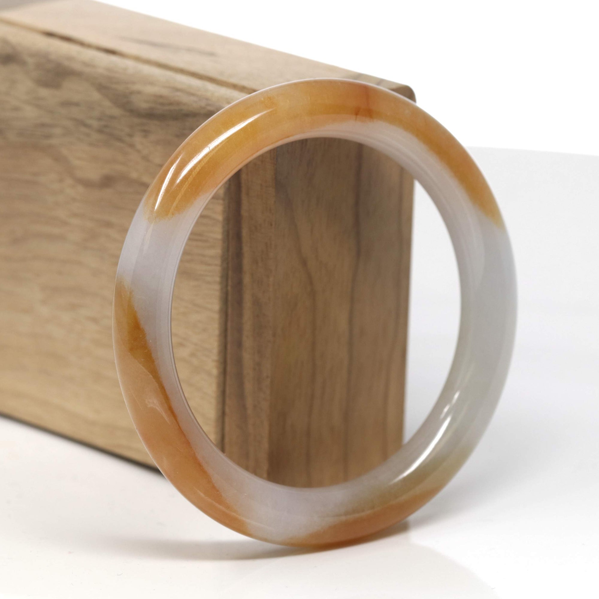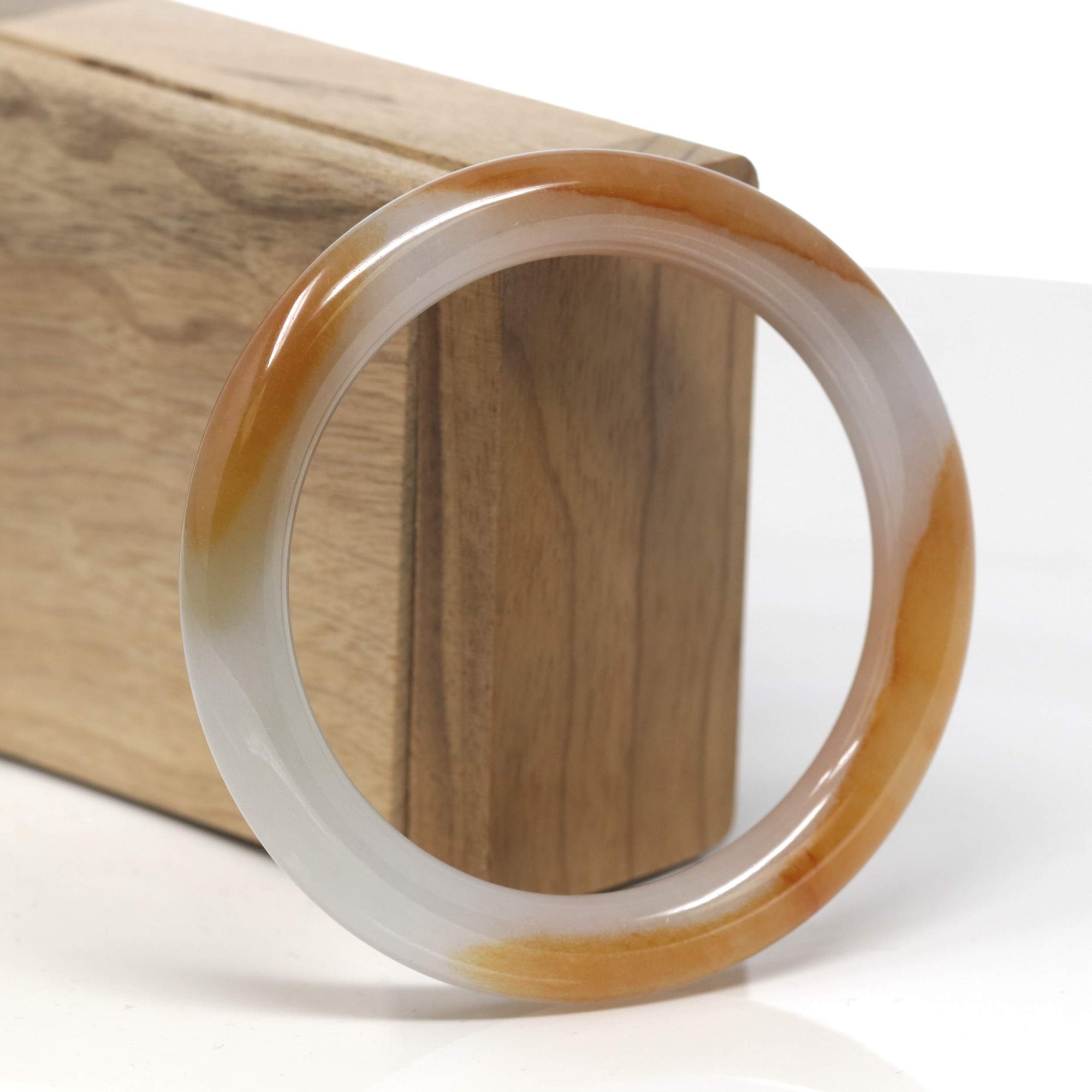 Baikalla Icy White & Deep Orange "Traditional Round" Jadeite Jade Bangle Bracelet (56.6mm) #TT335