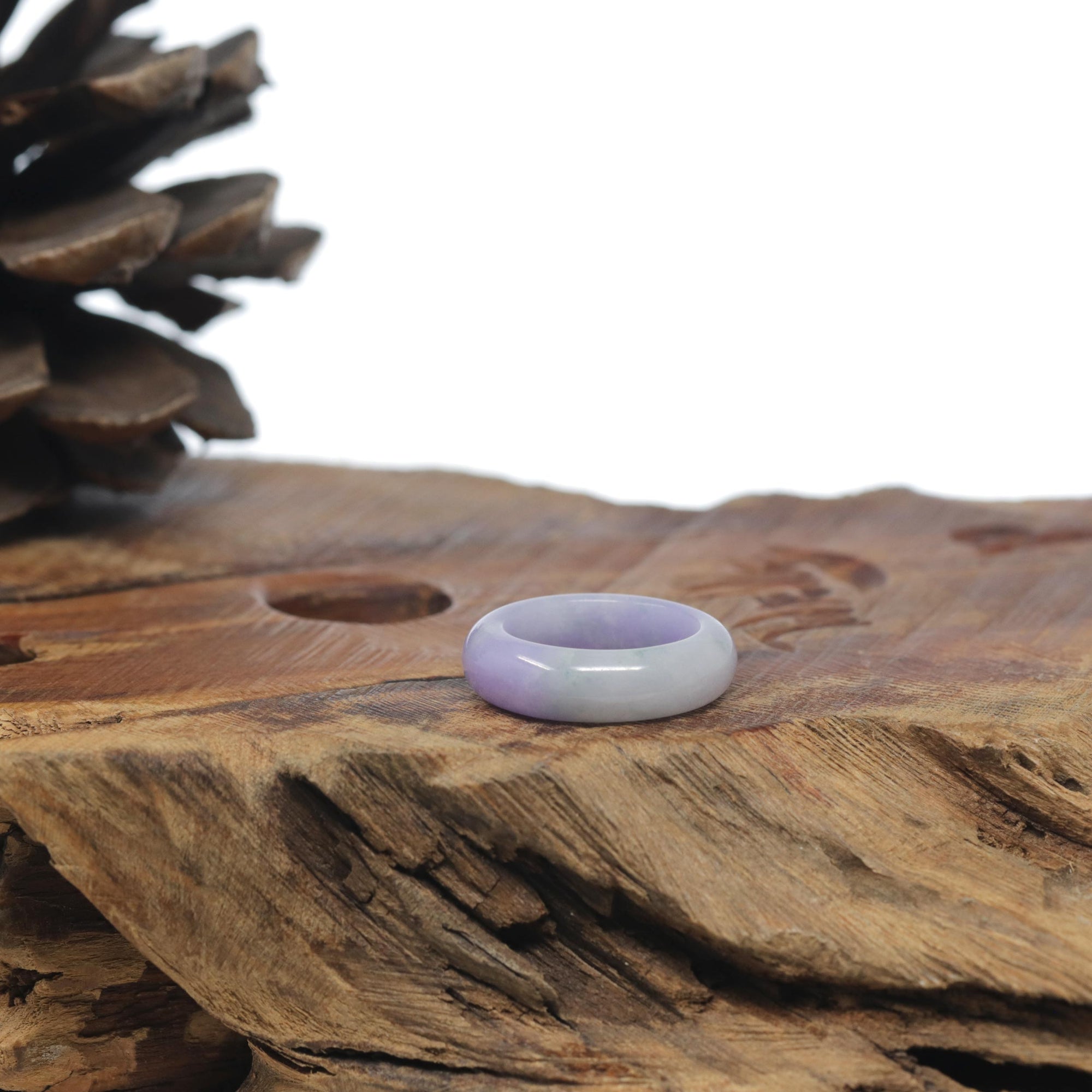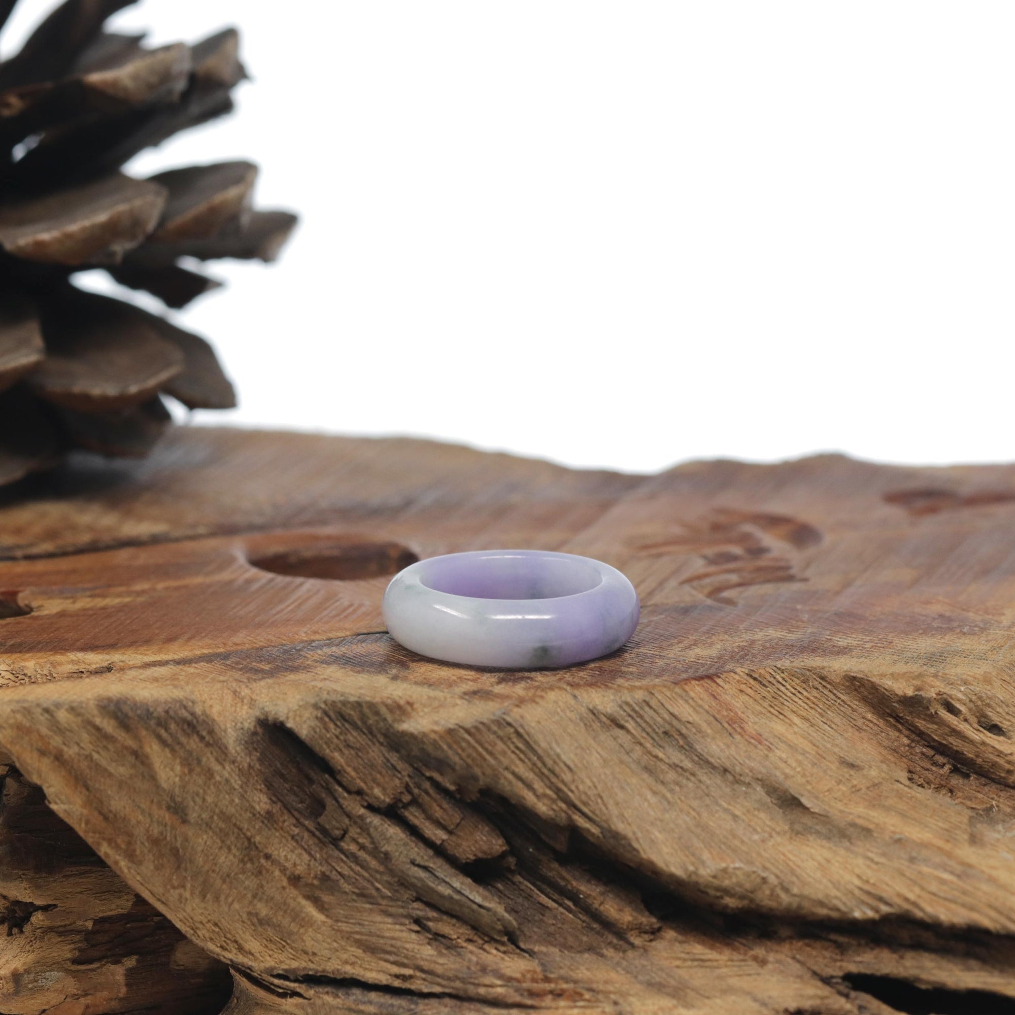 Baikalla Vixen Purple W/ Light Green Flowers Burmese Jadeite Jade Finger Bangle #4.5