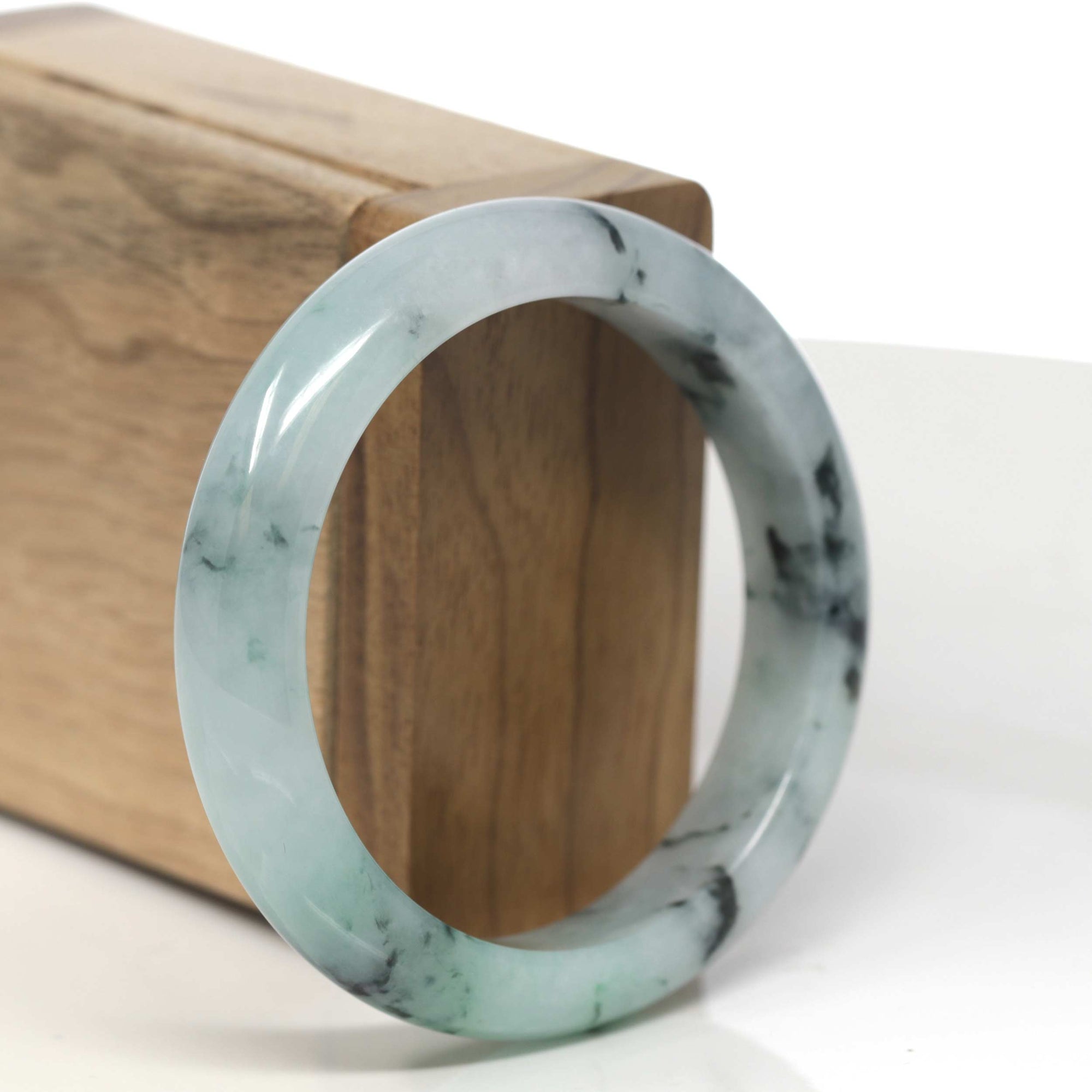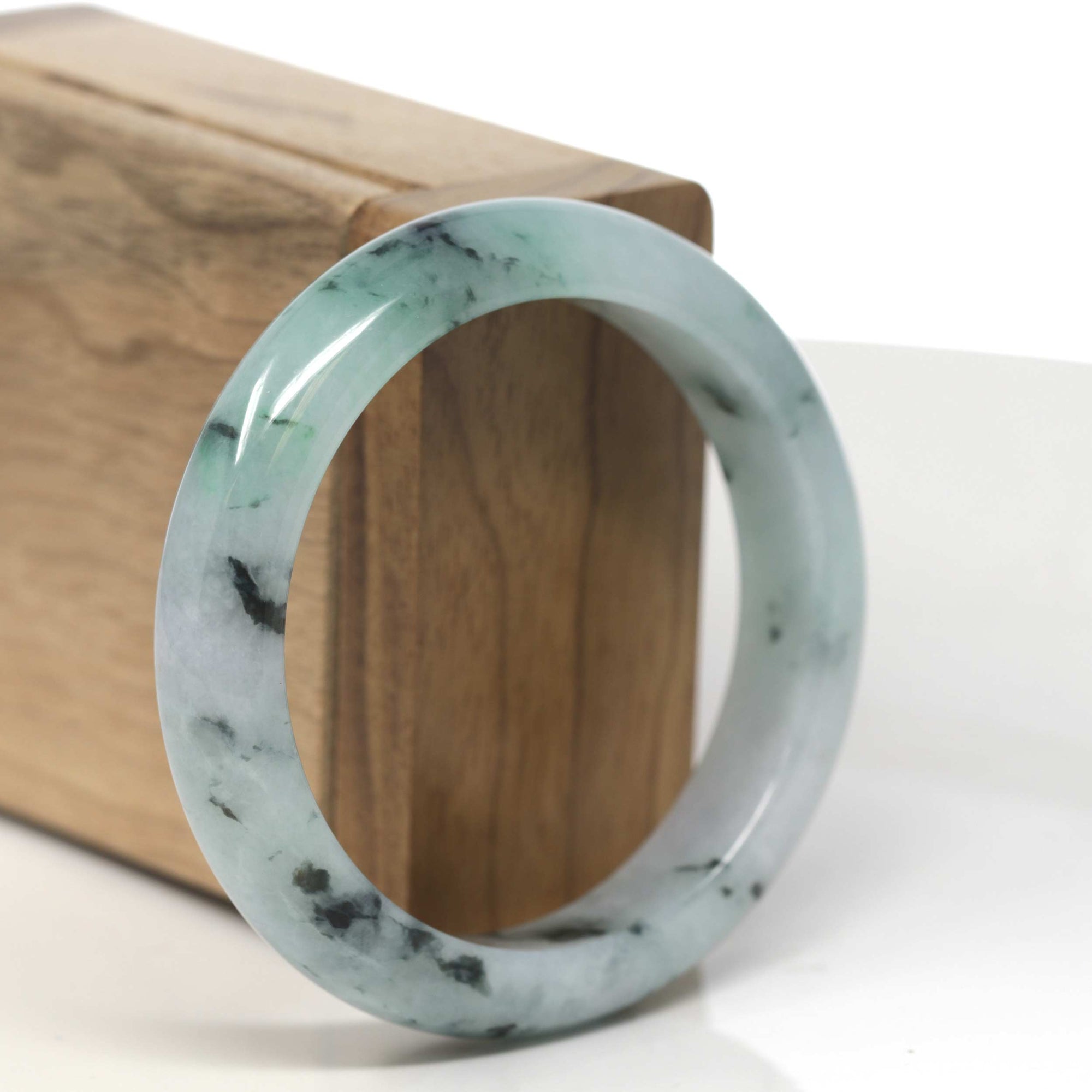 Baikalla Light Green W/ Blue-Green Flowers Jadeite Jade "Half Round" Bangle Bracelet (55.5mm) #TT177