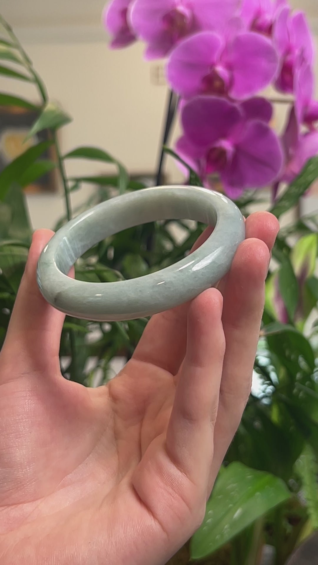 Baikalla Light Green Jadeite Jade "Traditional Full Round" Bangle Bracelet (53.5mm) #TT170