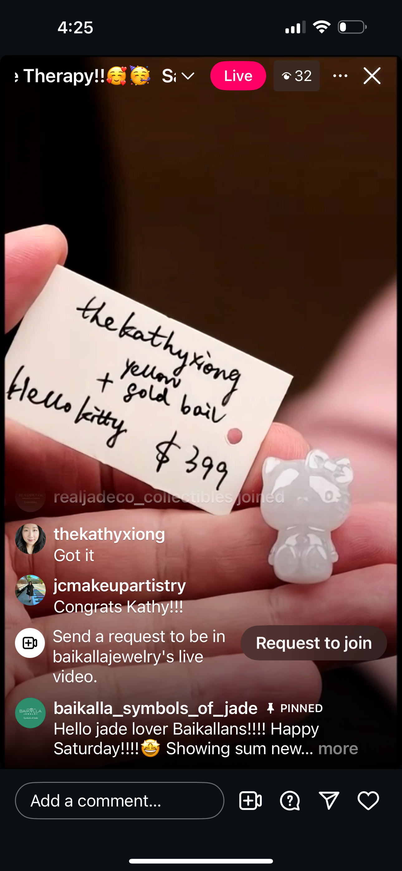 "Live" Gold Plated Sterling Silver Natural Green Jadeite Jade With CZ (10/25/25)