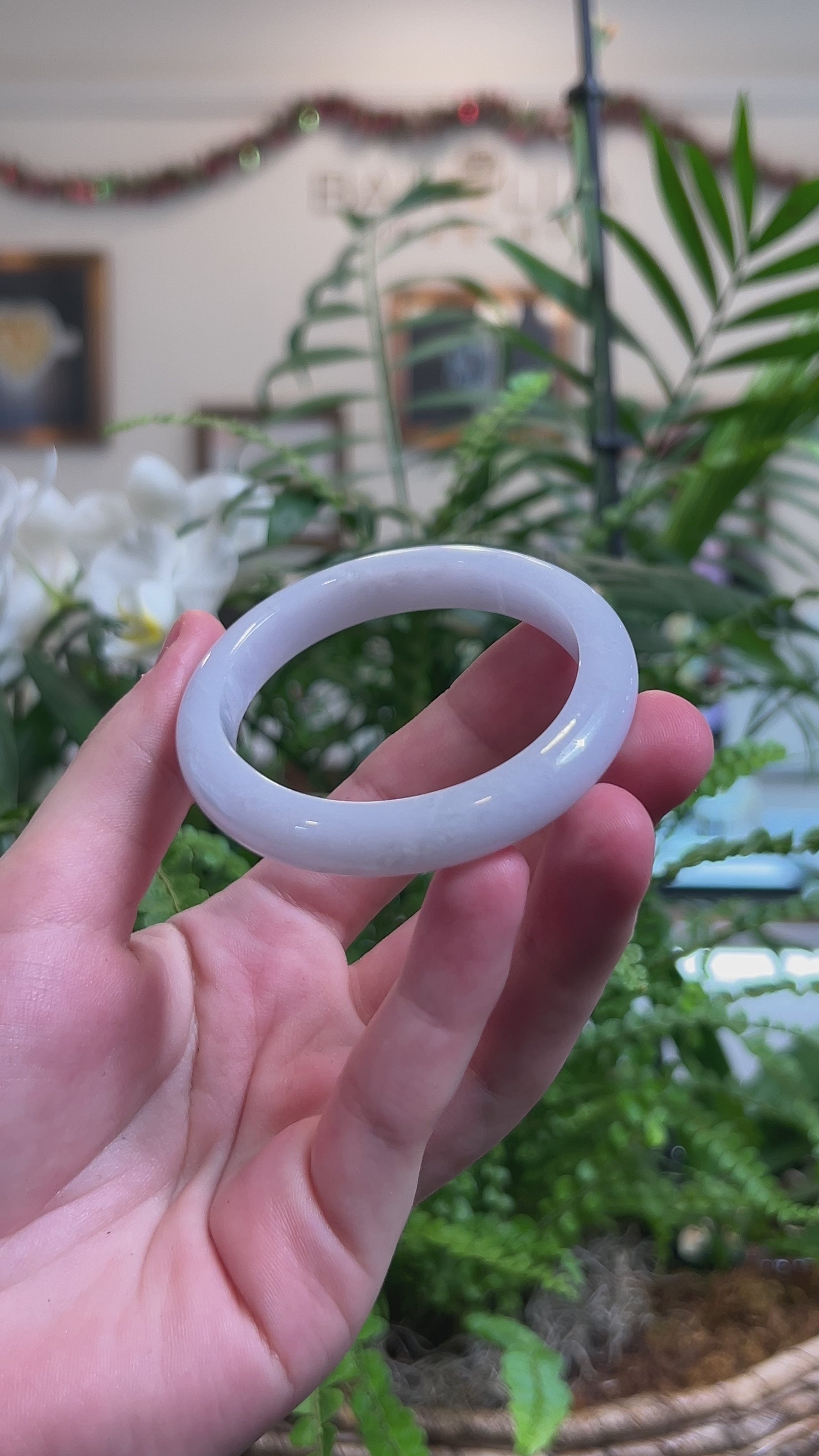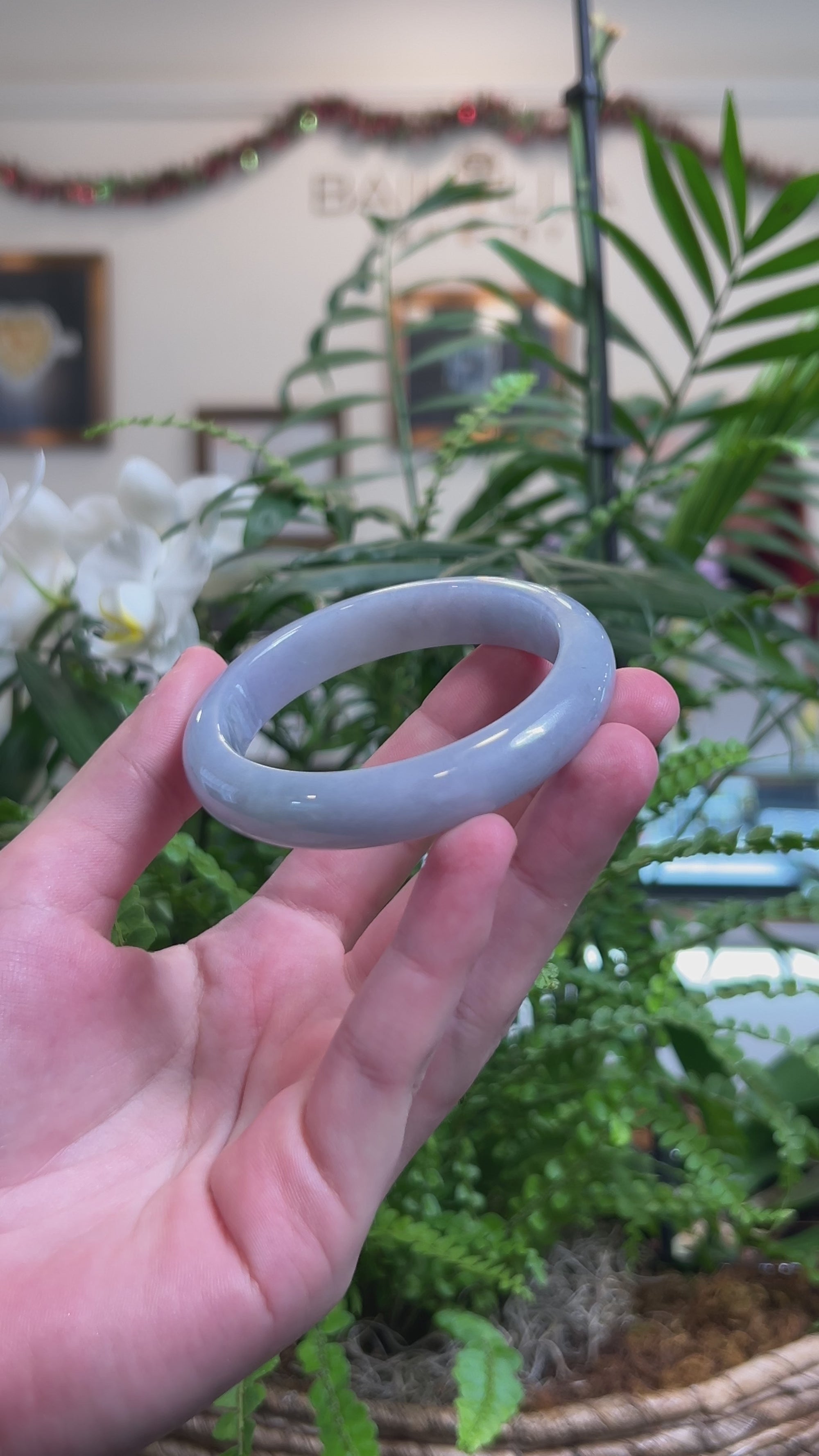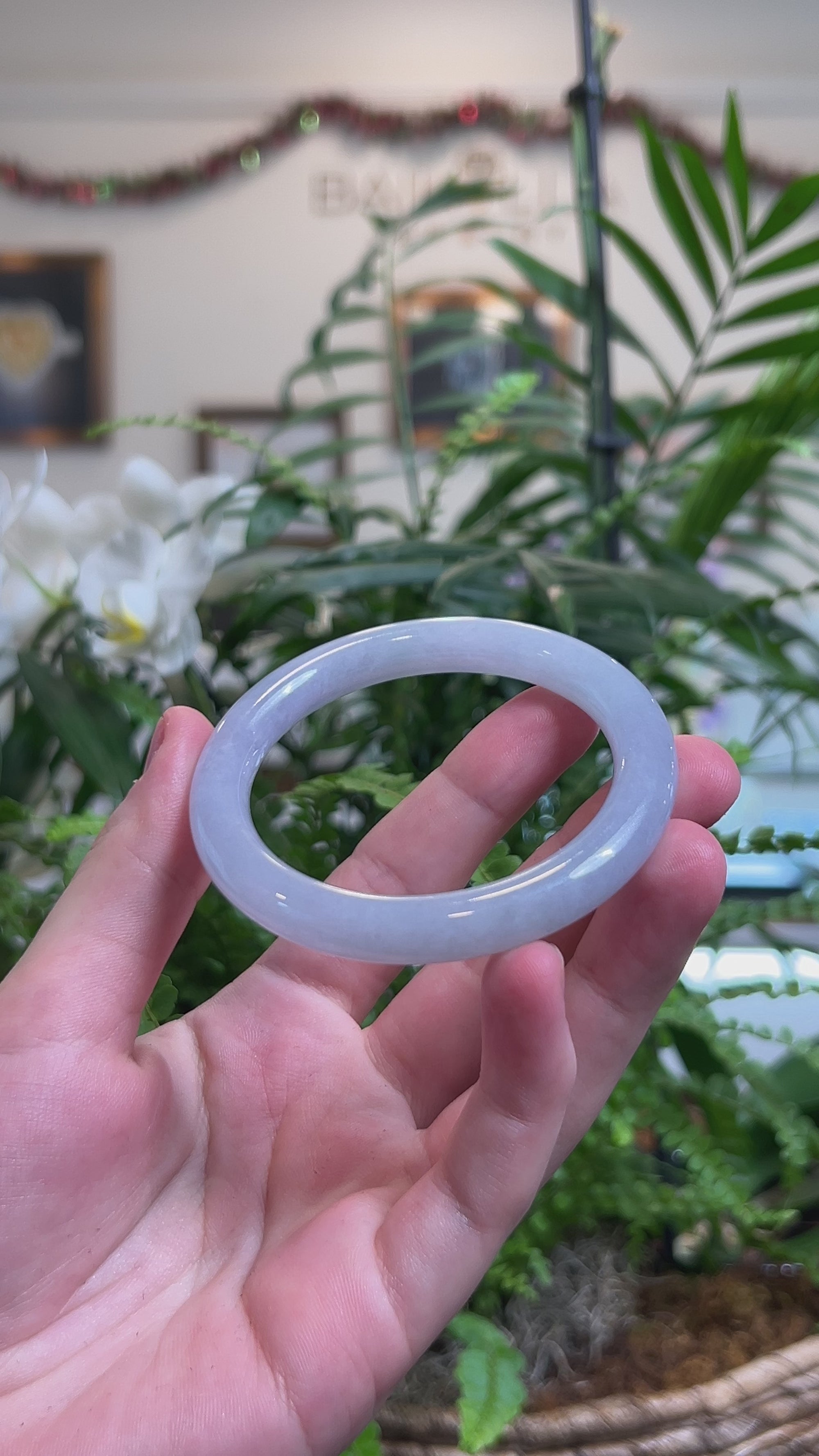 Baikalla Icy Light Lavender "Traditional Round" Jadeite Jade Bangle Bracelet (56.5mm) #TT334