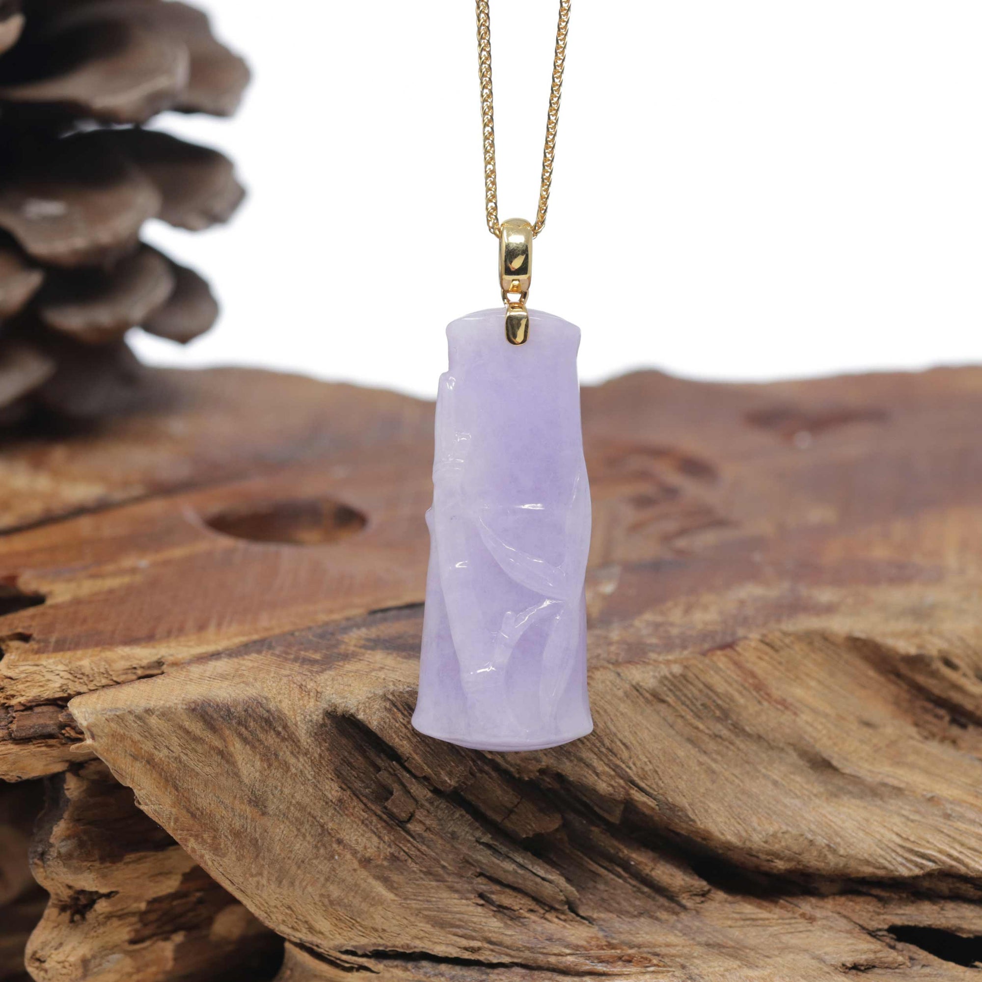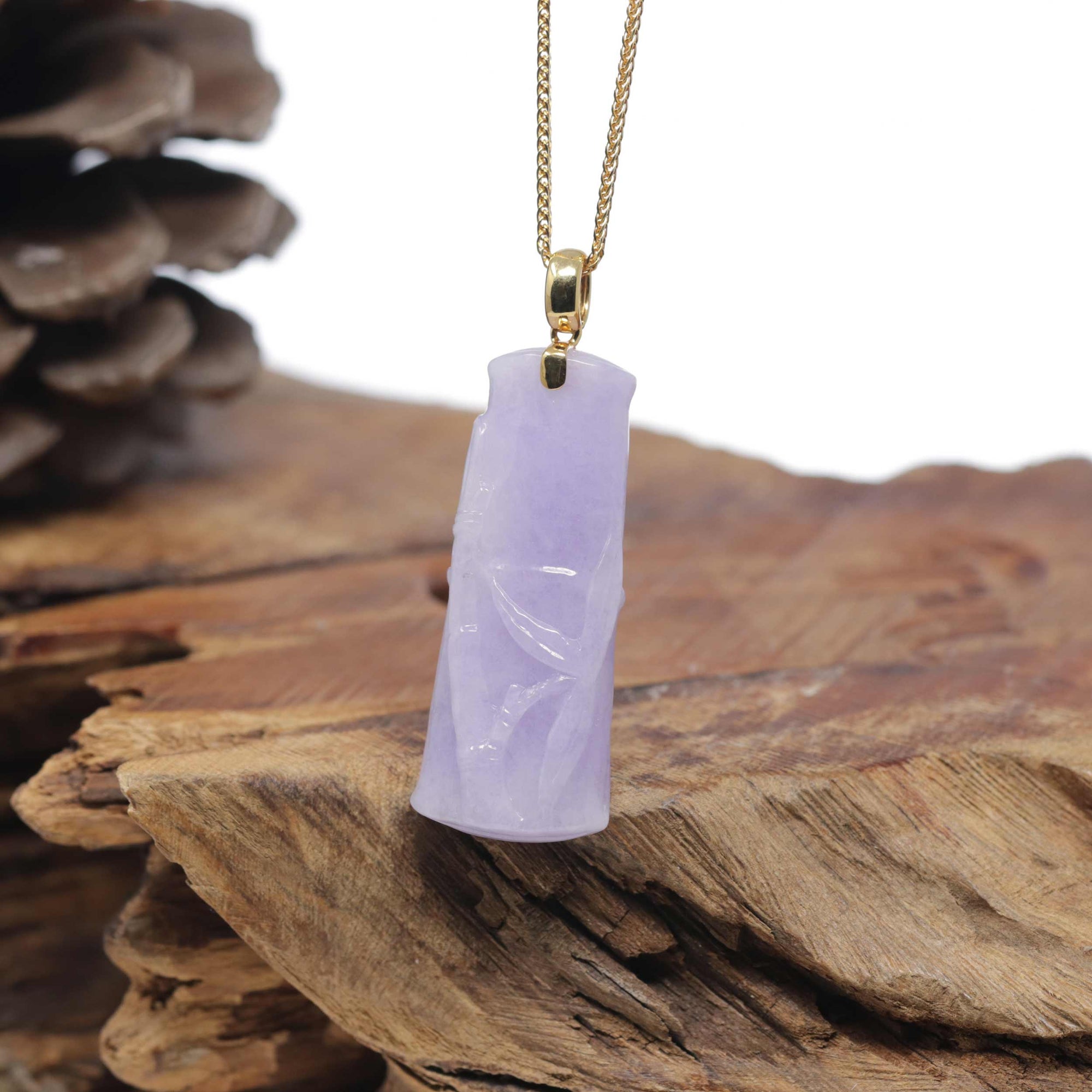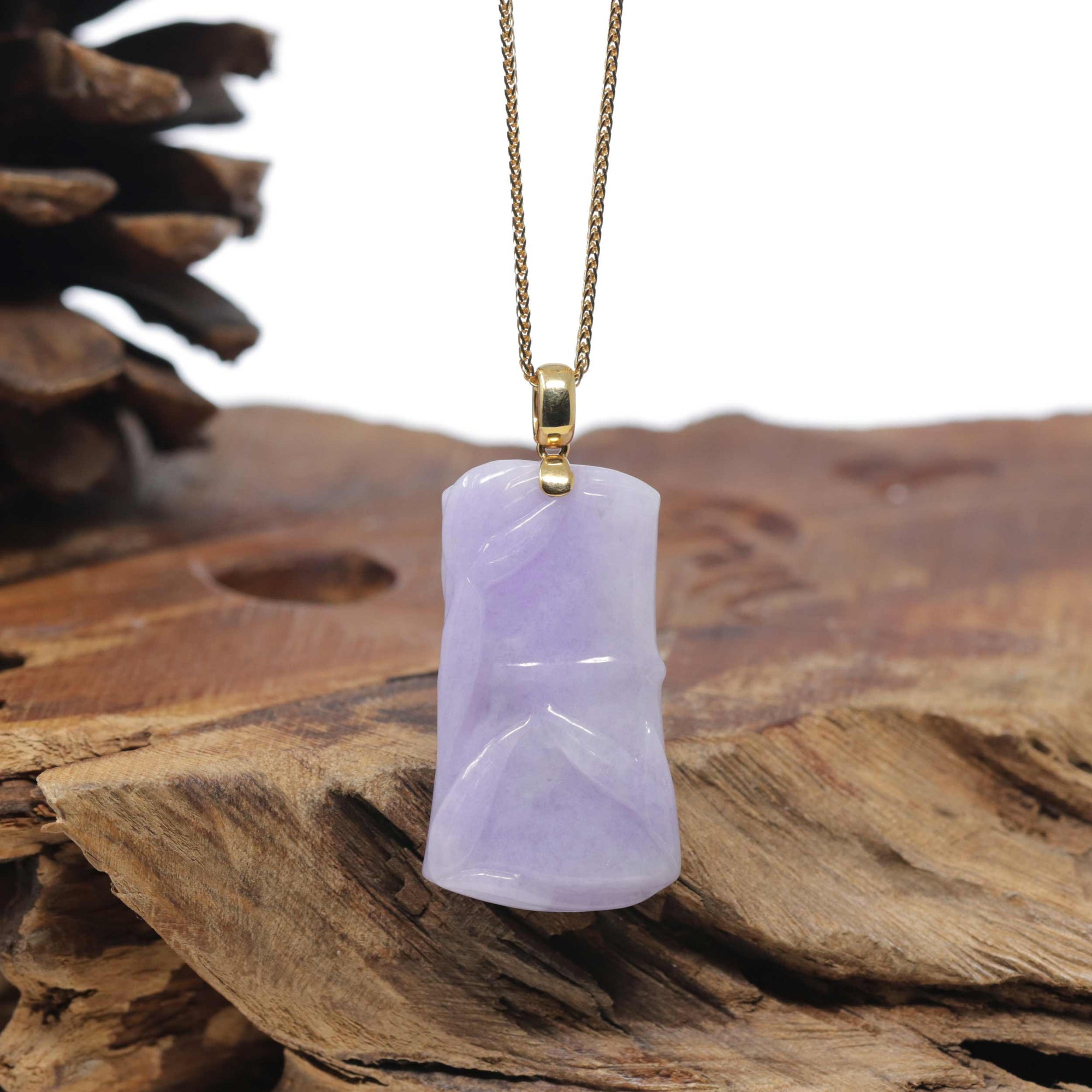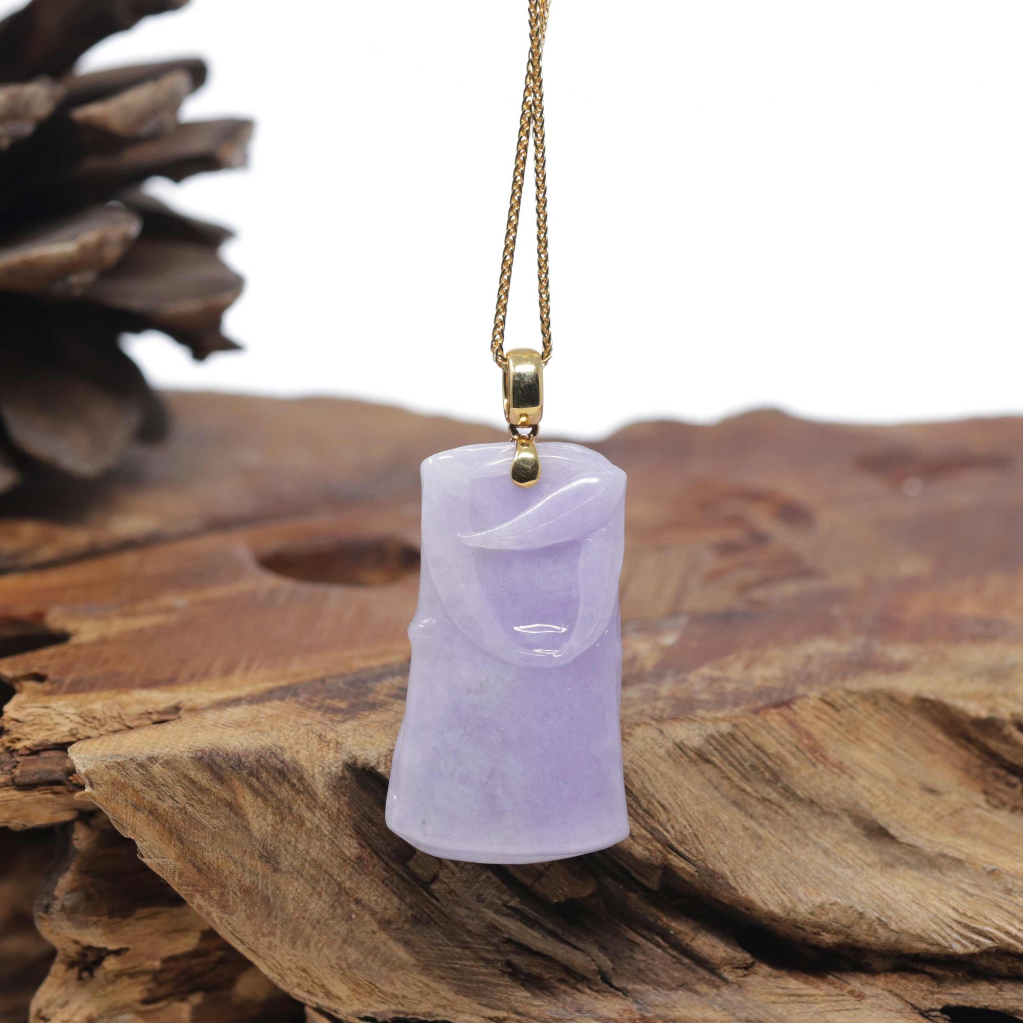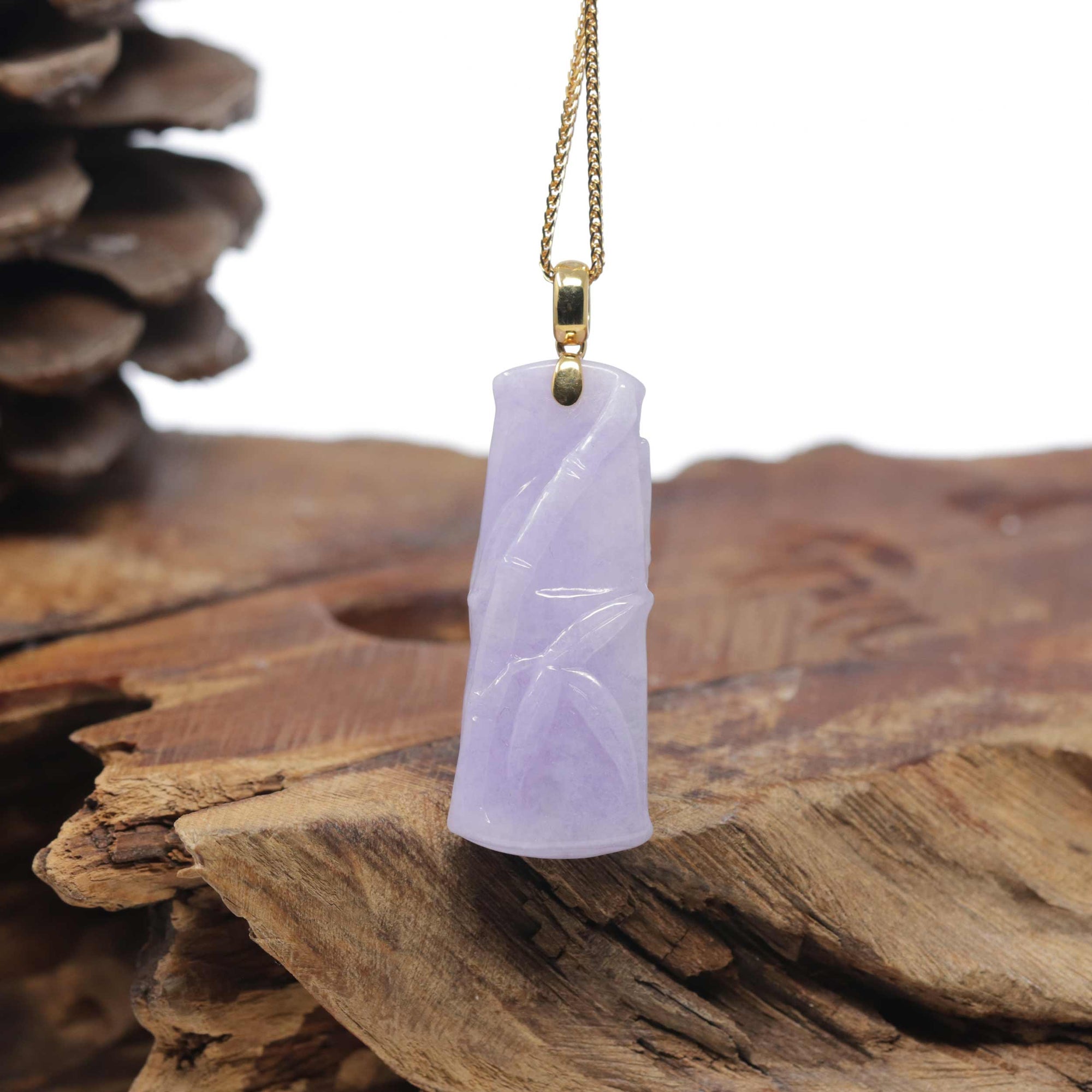 Baikalla "Bamboo" 18K Yellow Gold Natural Vixen Lavender Jadeite Jade Pendant