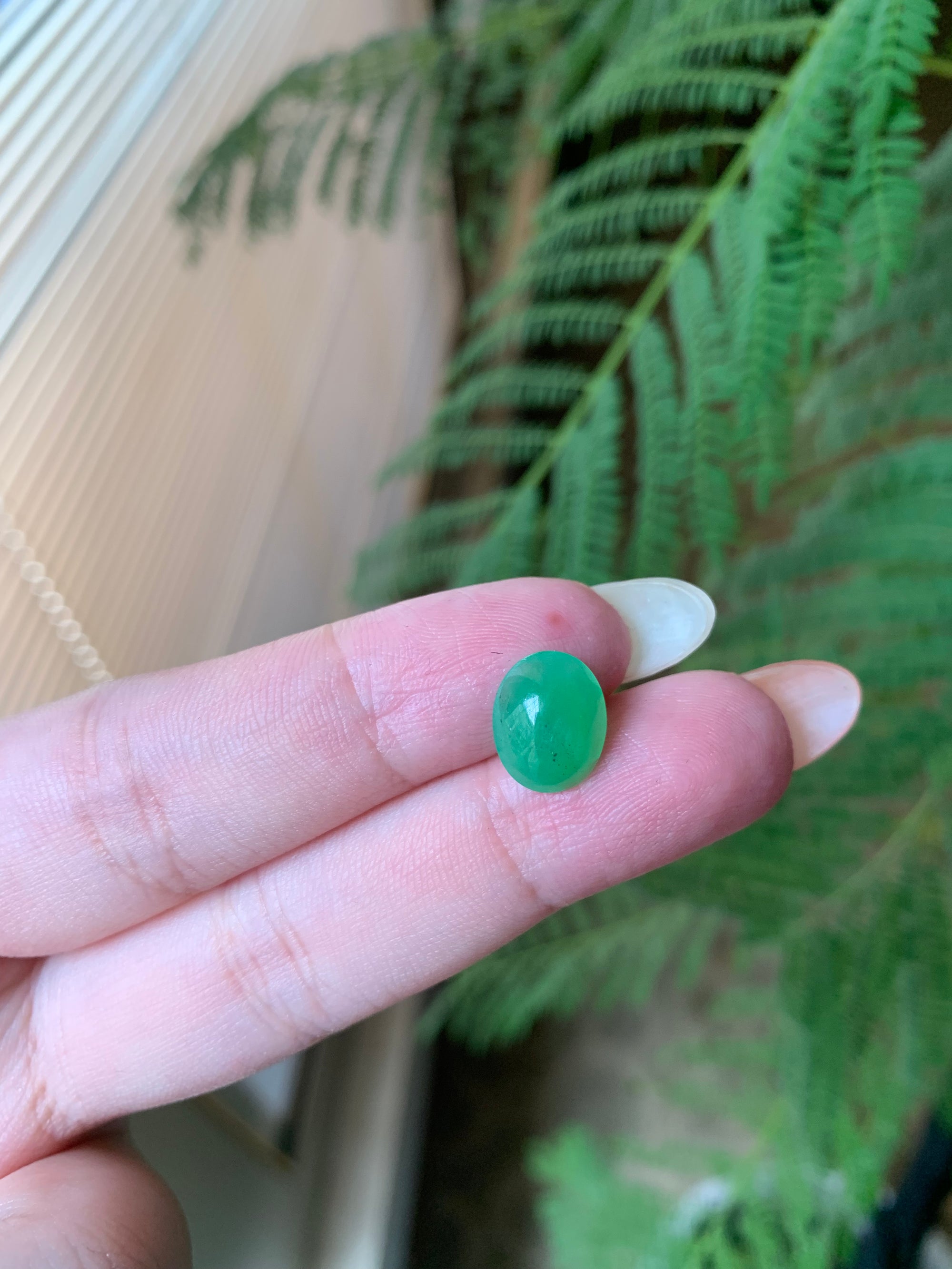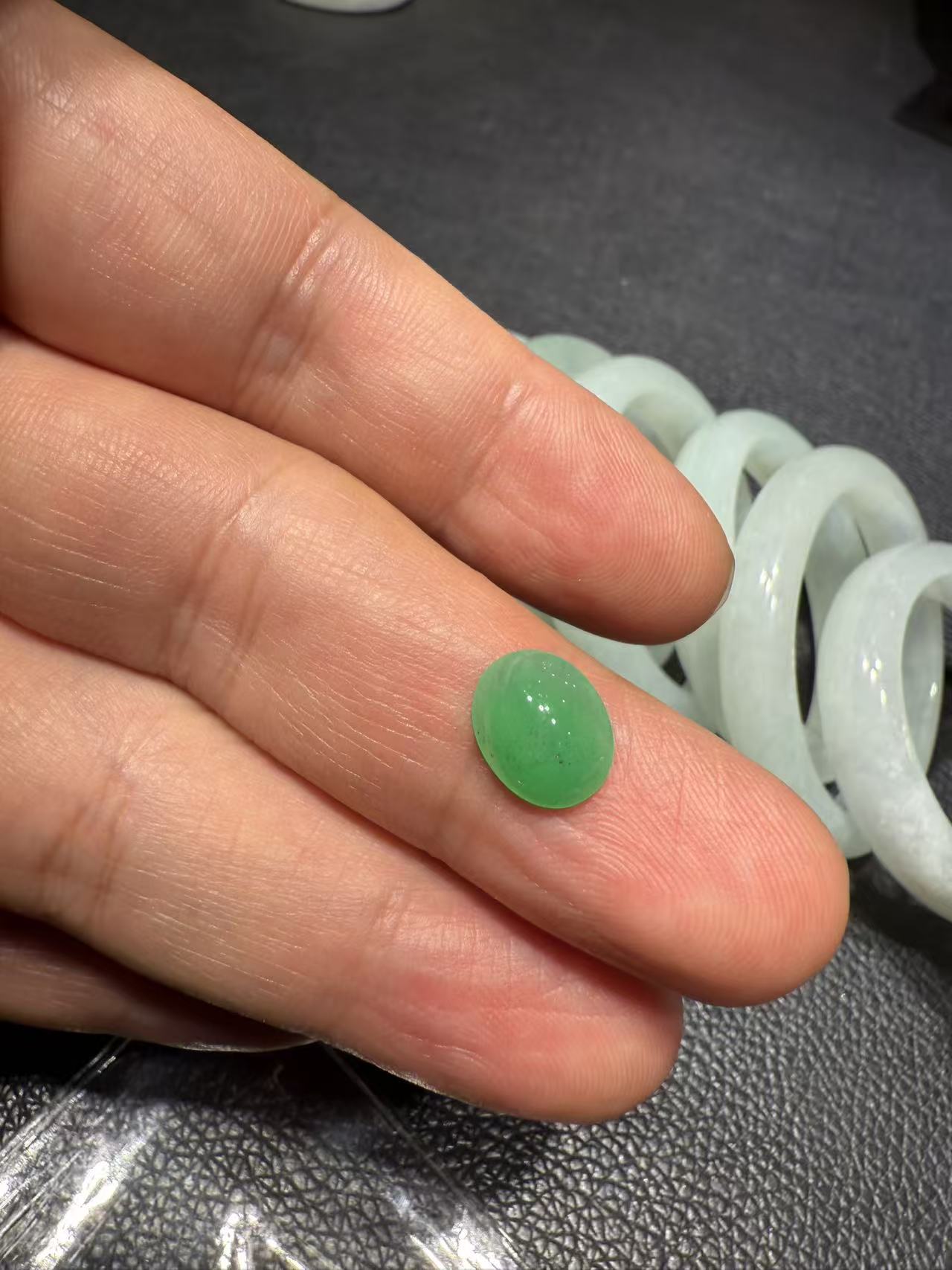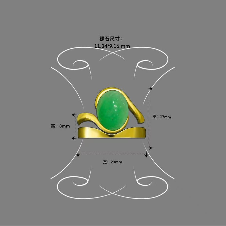 Custom 18ky Gold Natural Green Jadeite Jade Engagement Ring & Custom Fit Contour Band