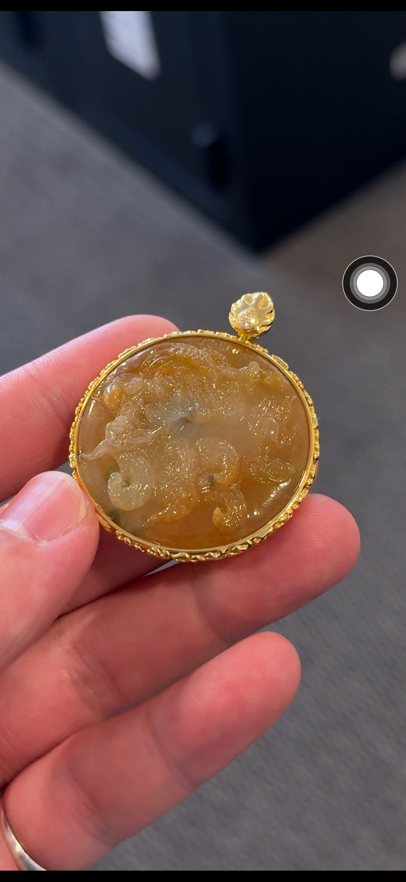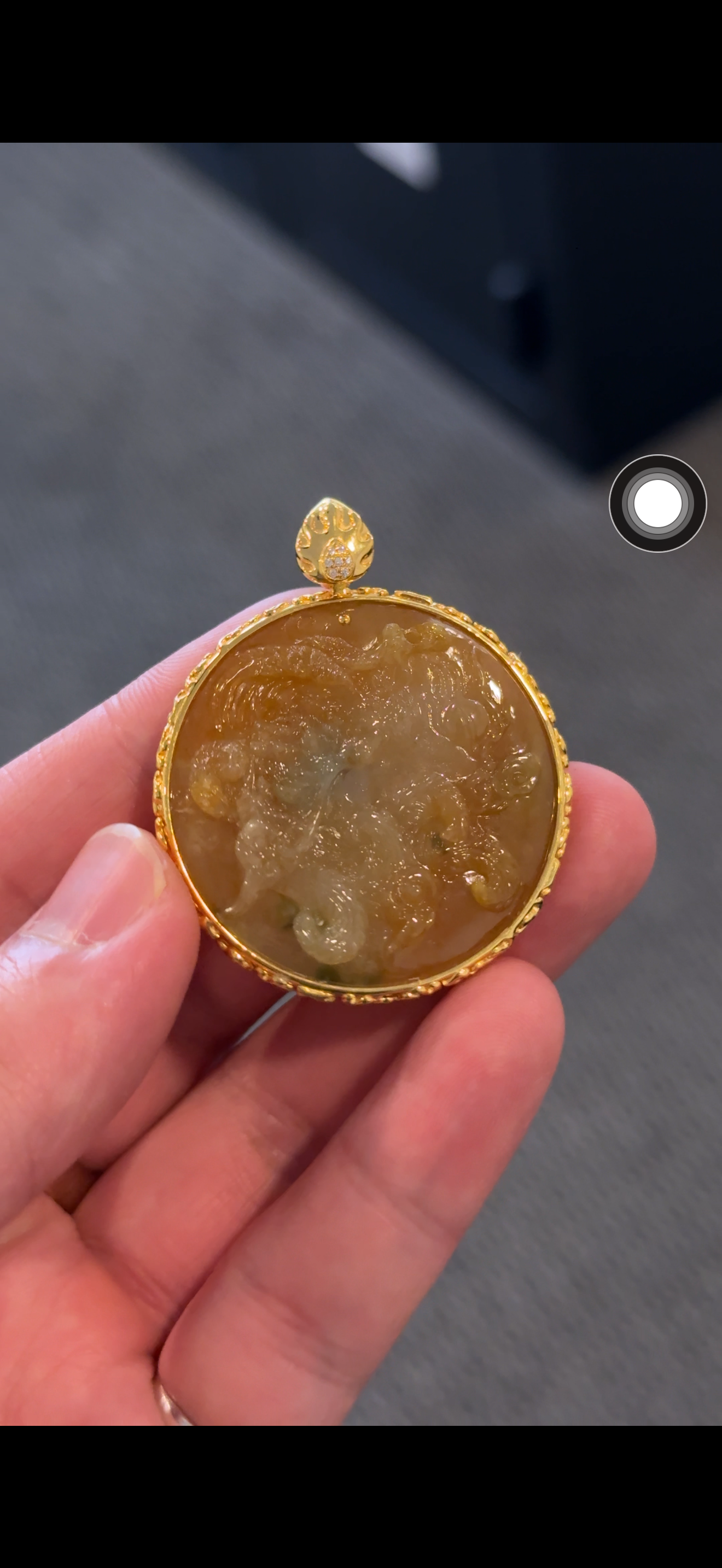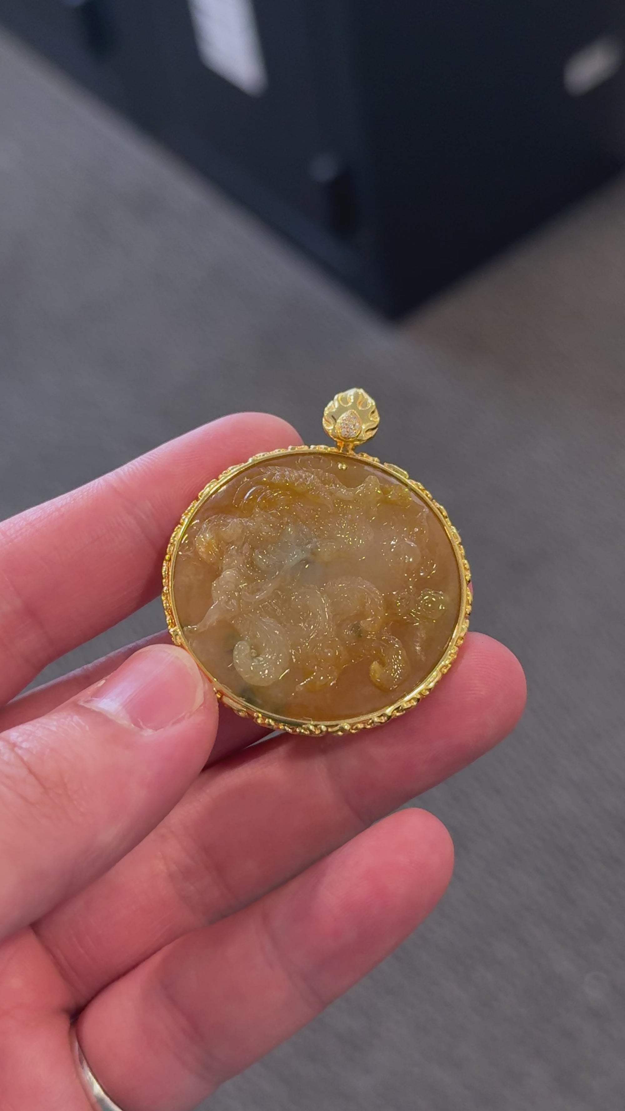 Custom 18ky Gold Setting Custom Red/Yellow Icy Jadeite Jade Phenix Carving Pendant W/ Diamonds