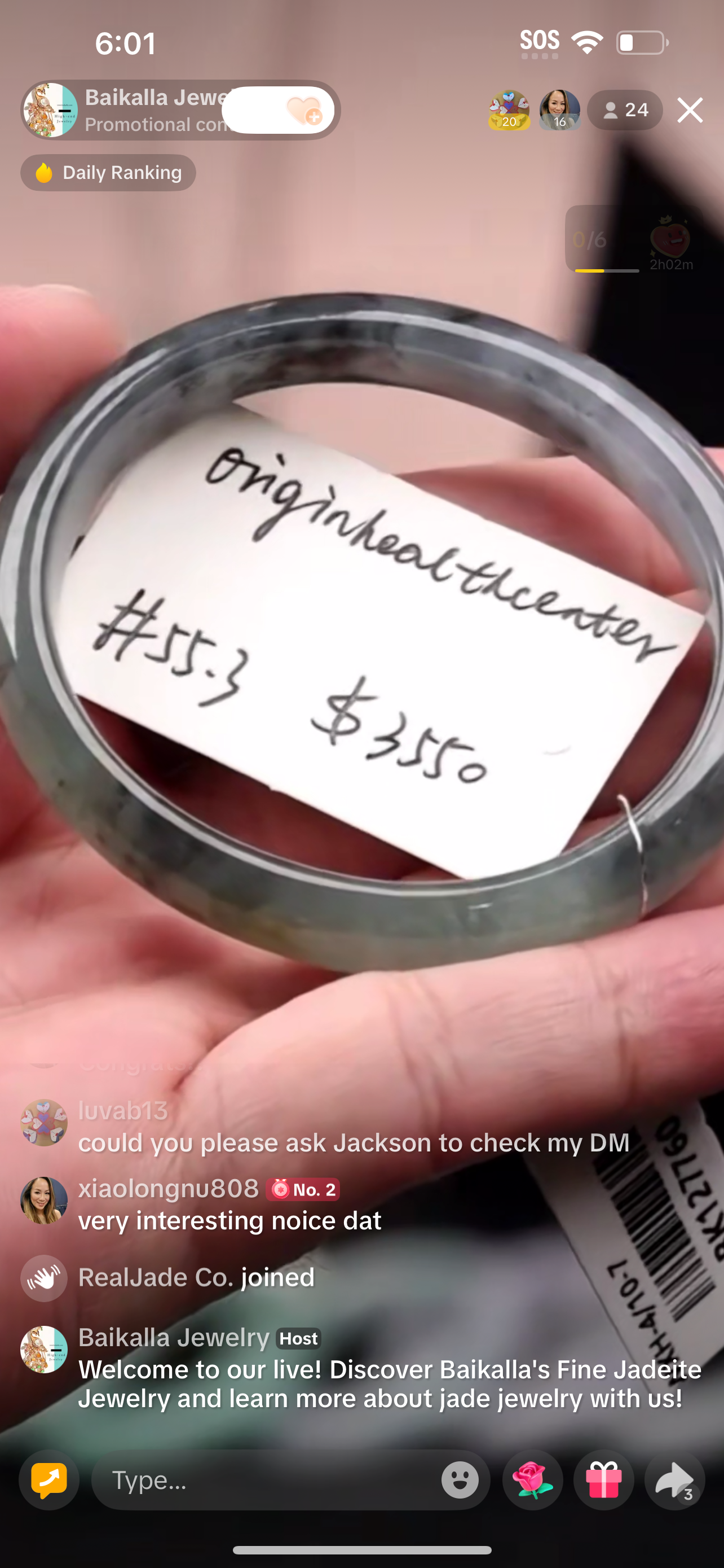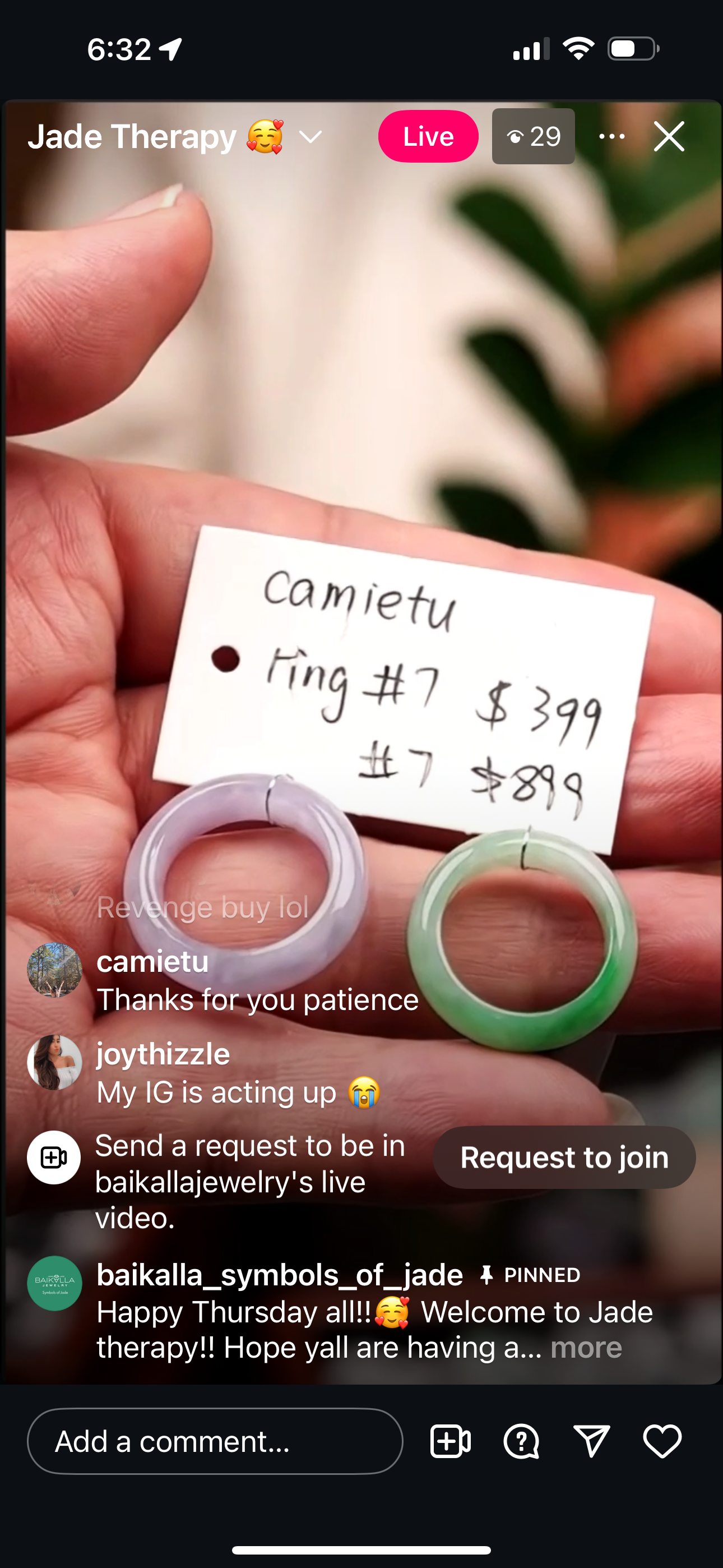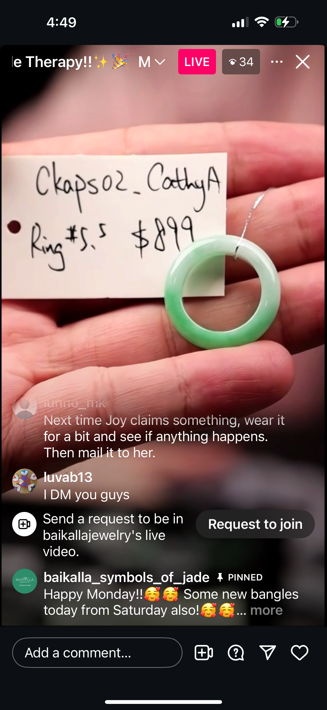 "Live" Natural Icy Wuji Jadeite Jade Ring (09/06/25)