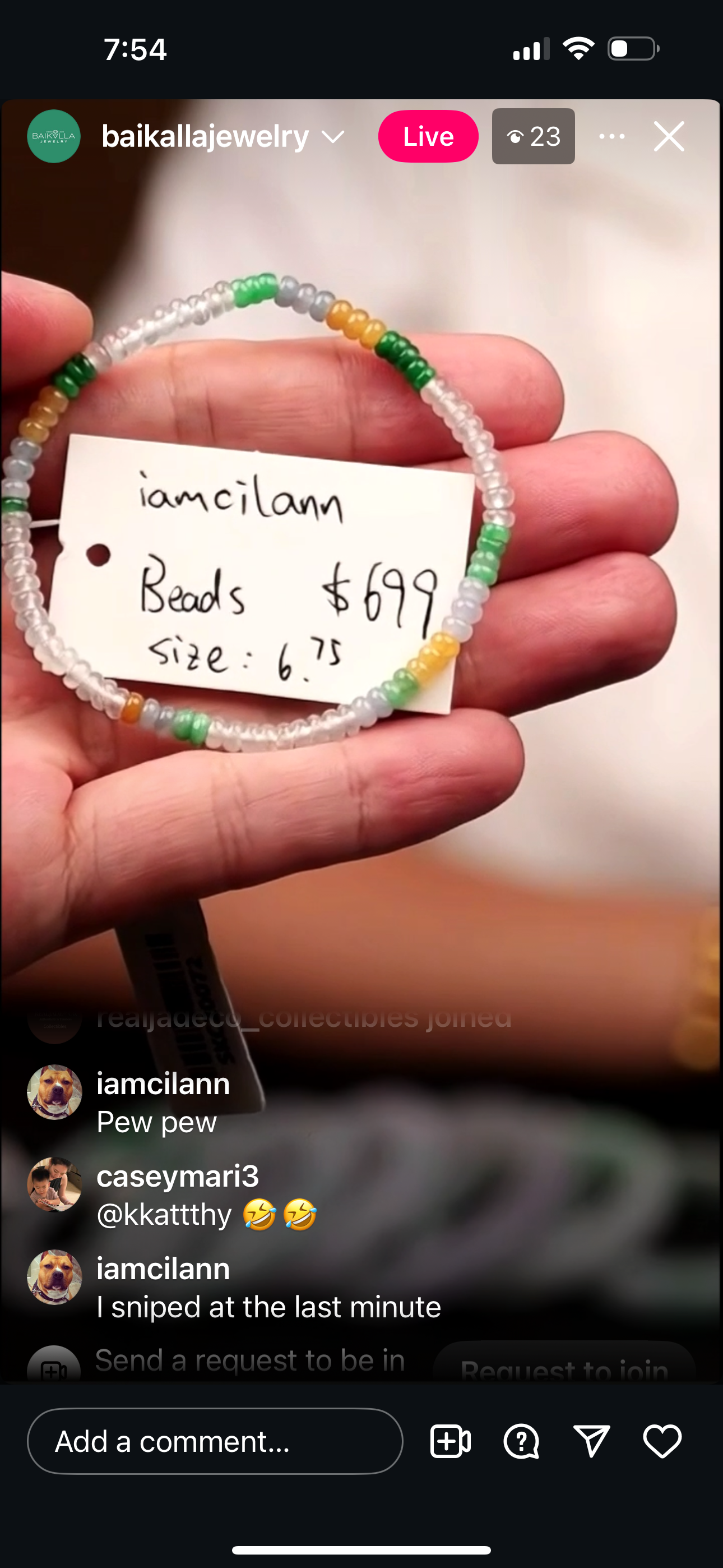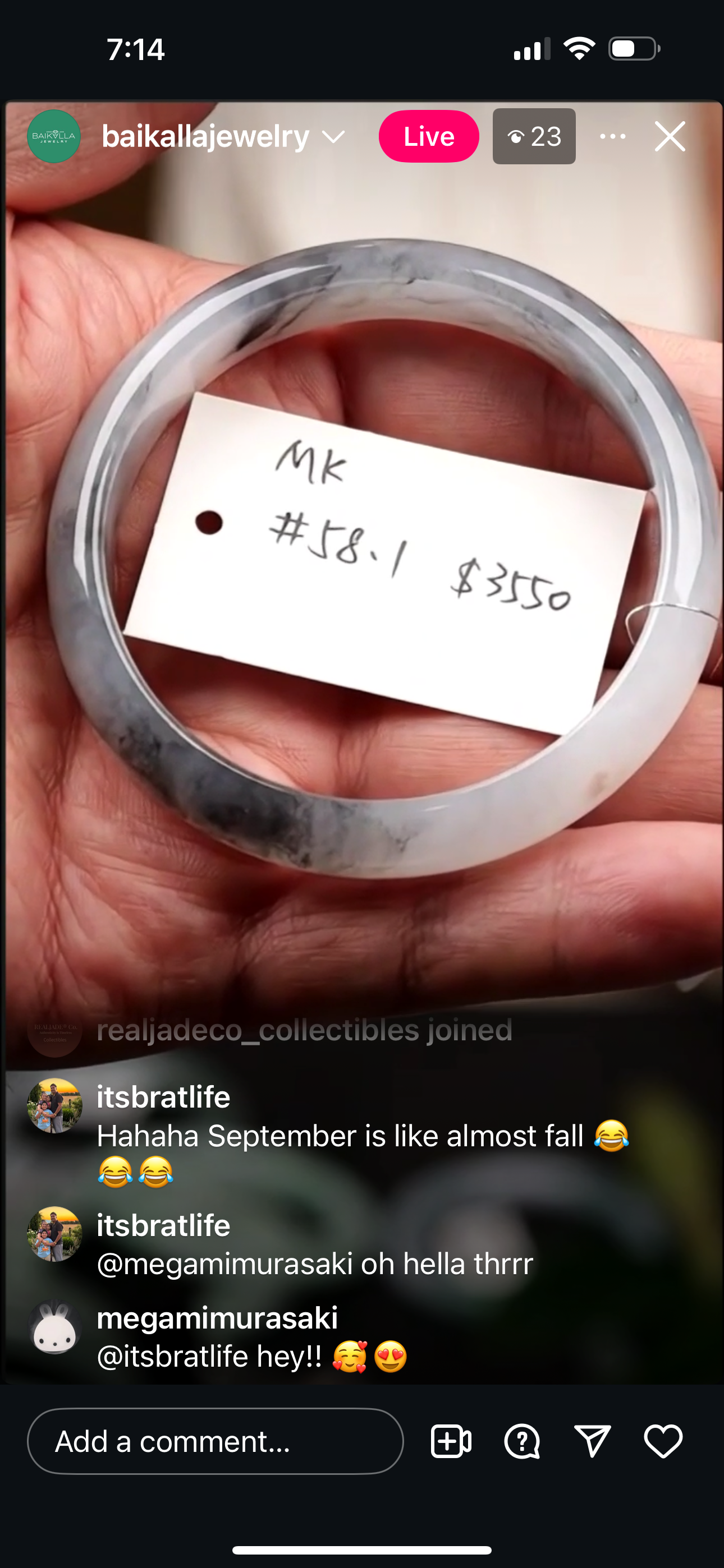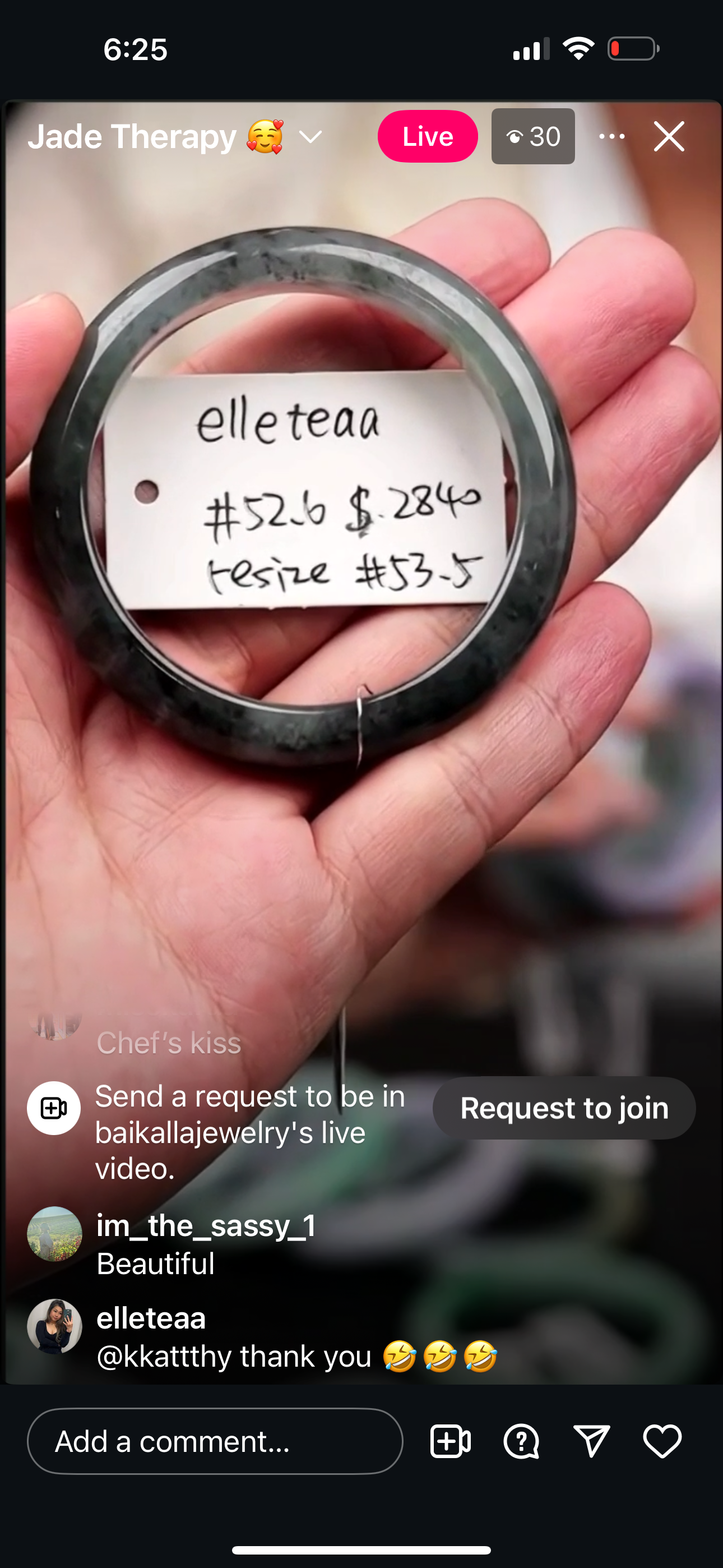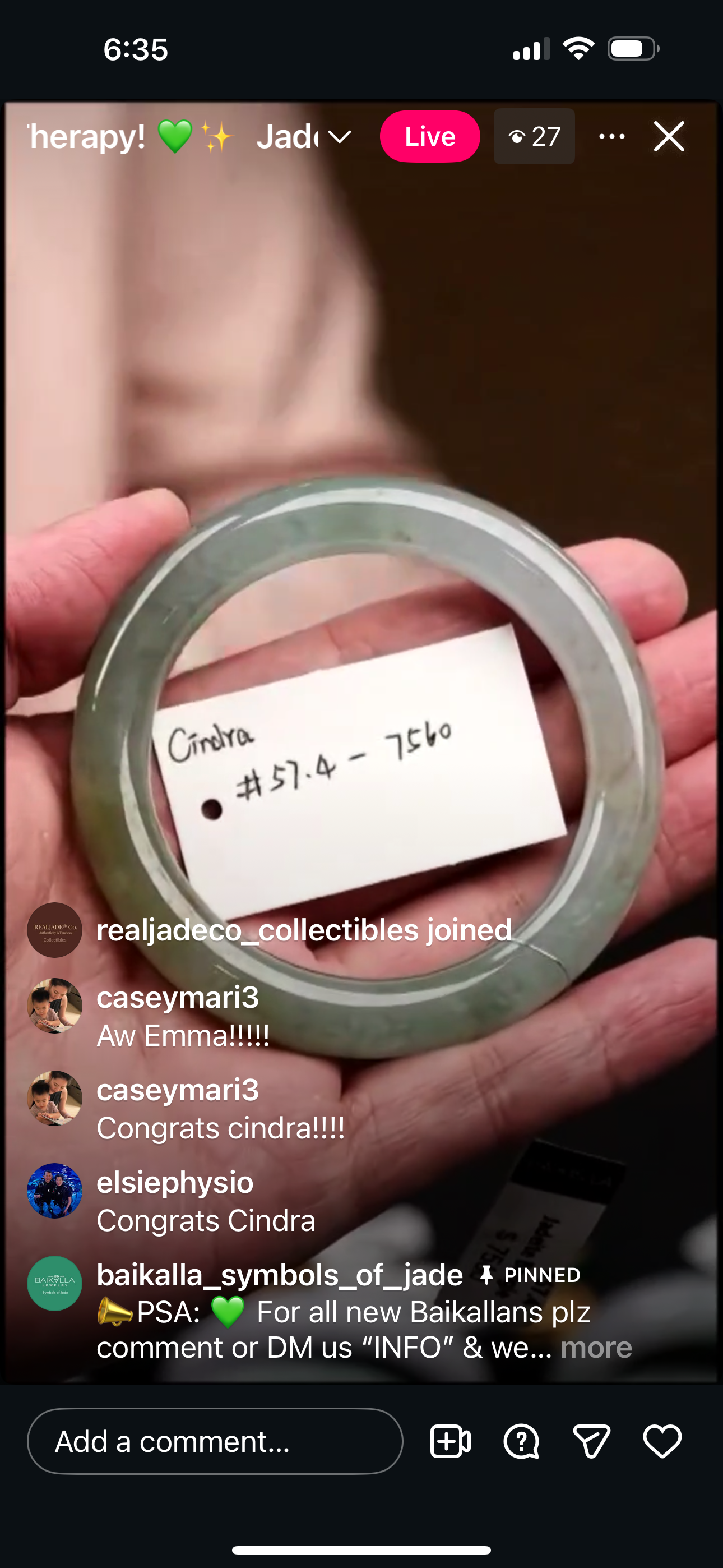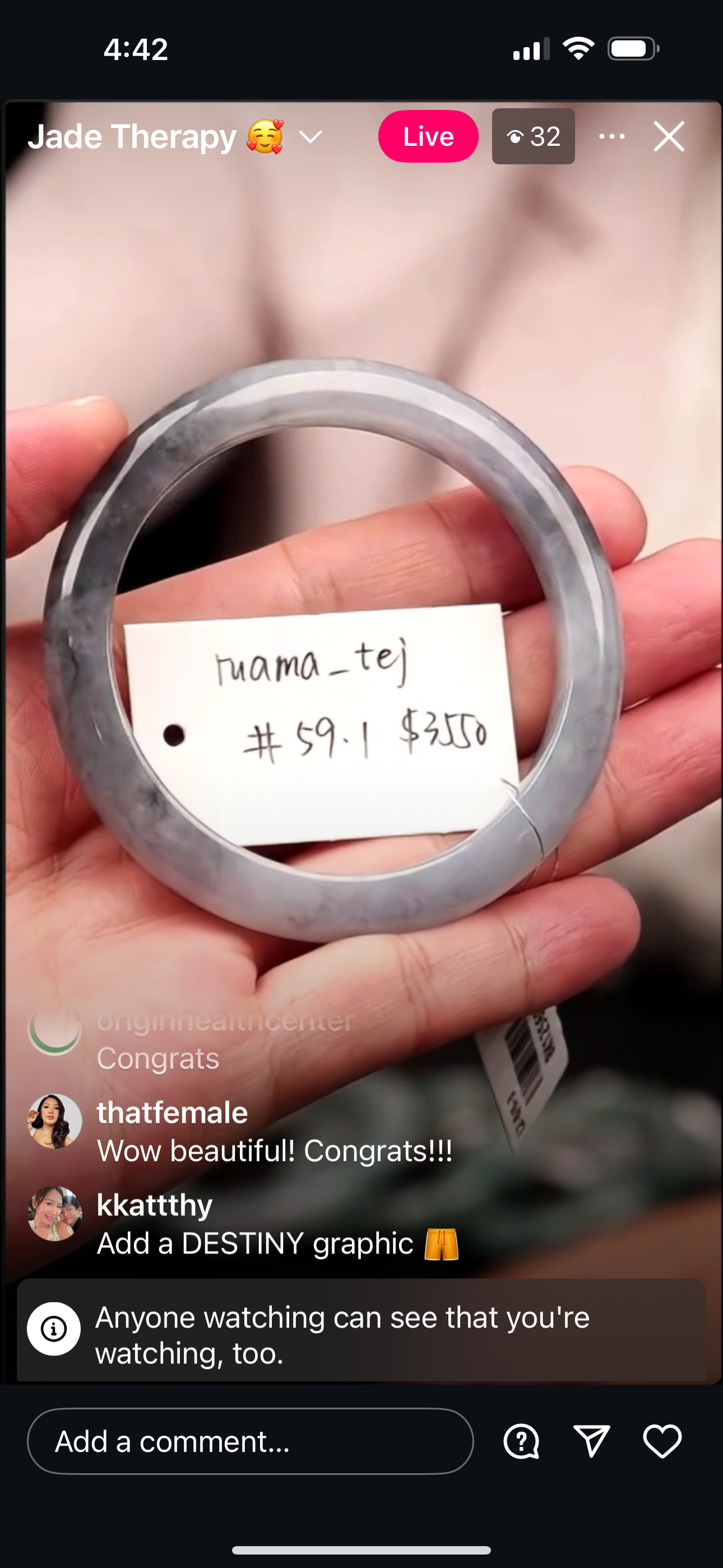 "Live" Natural Icy WuJi Jadeite Jade Finger Bangle (10/13/2025)