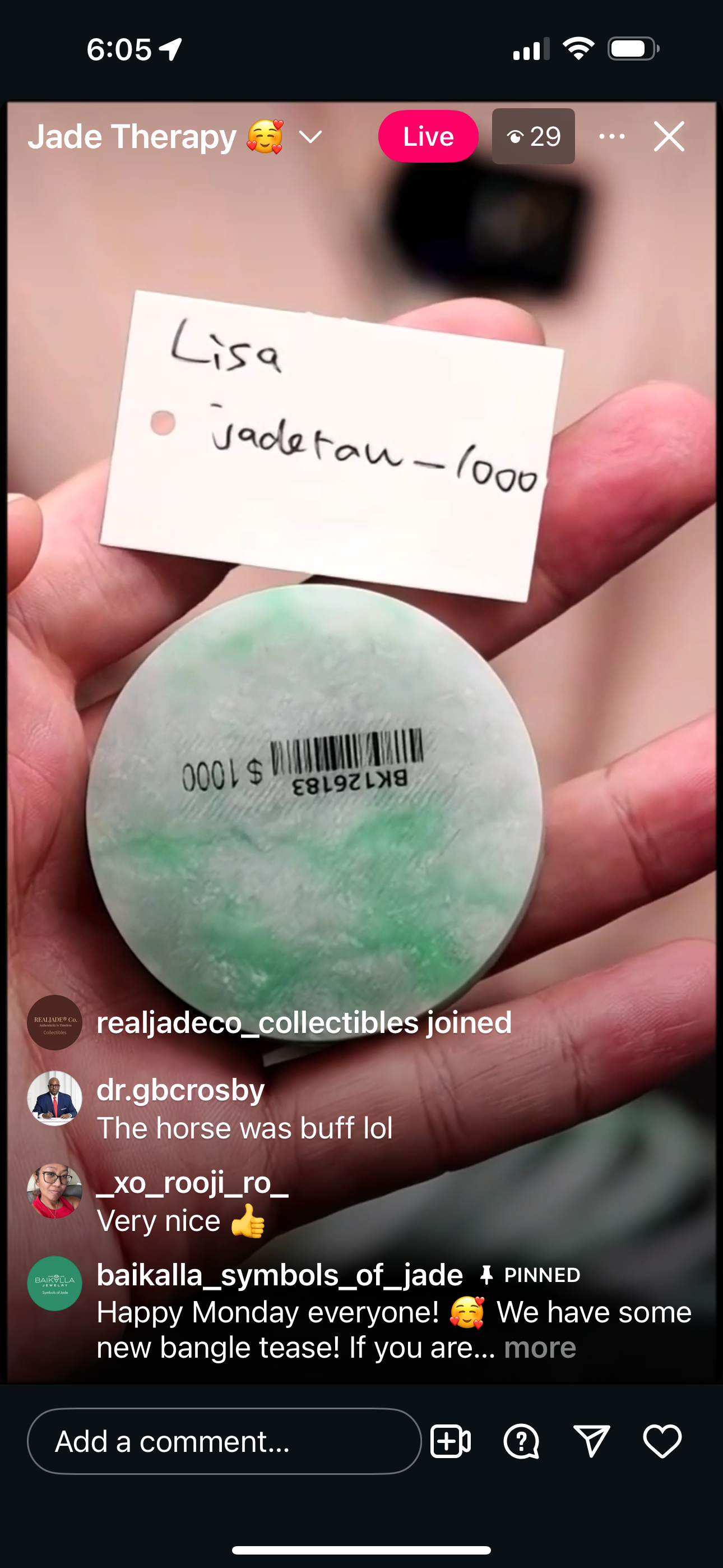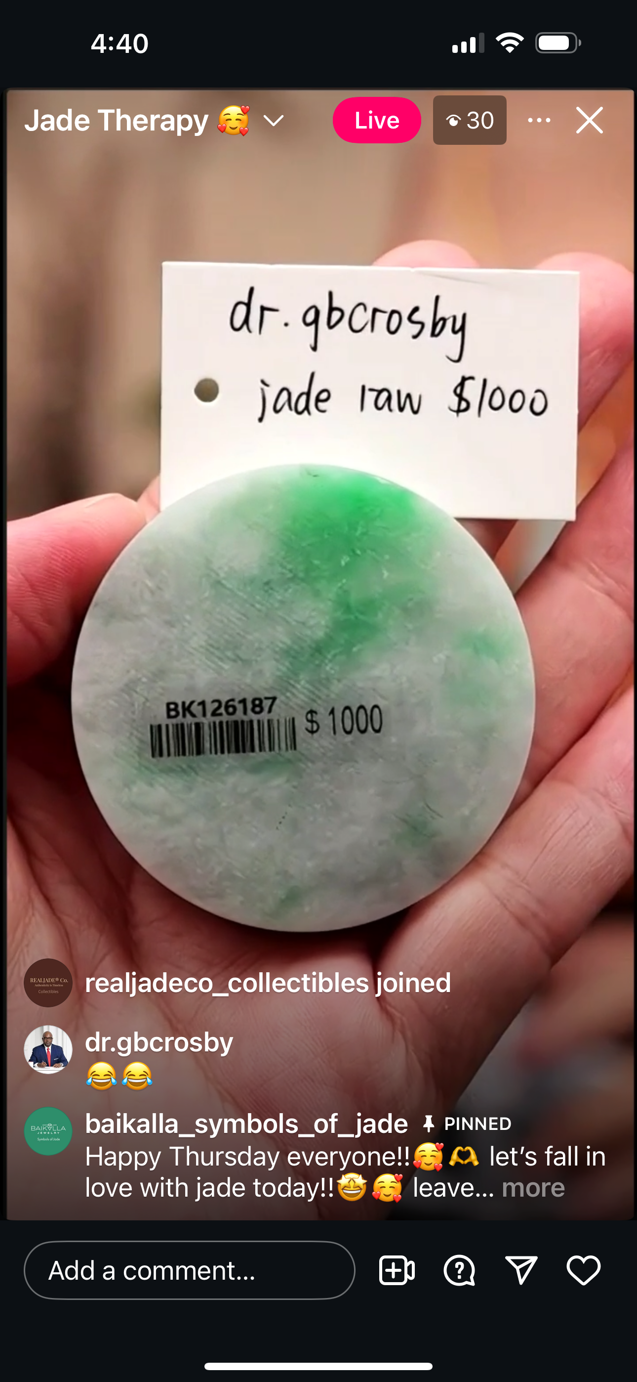 "Live" Natural Icy WuJi Larger Jadeite Jade Bracelet " (08/14/25)