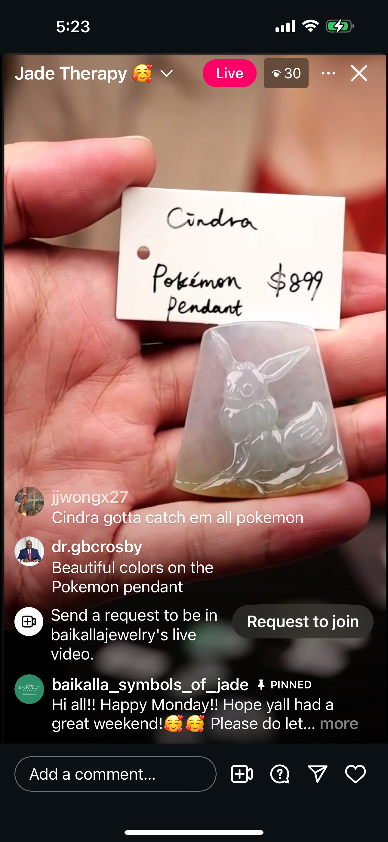"Live" Natural Icy WuJi Jadeite Jade Kou Kou Pendant (09/08/25)