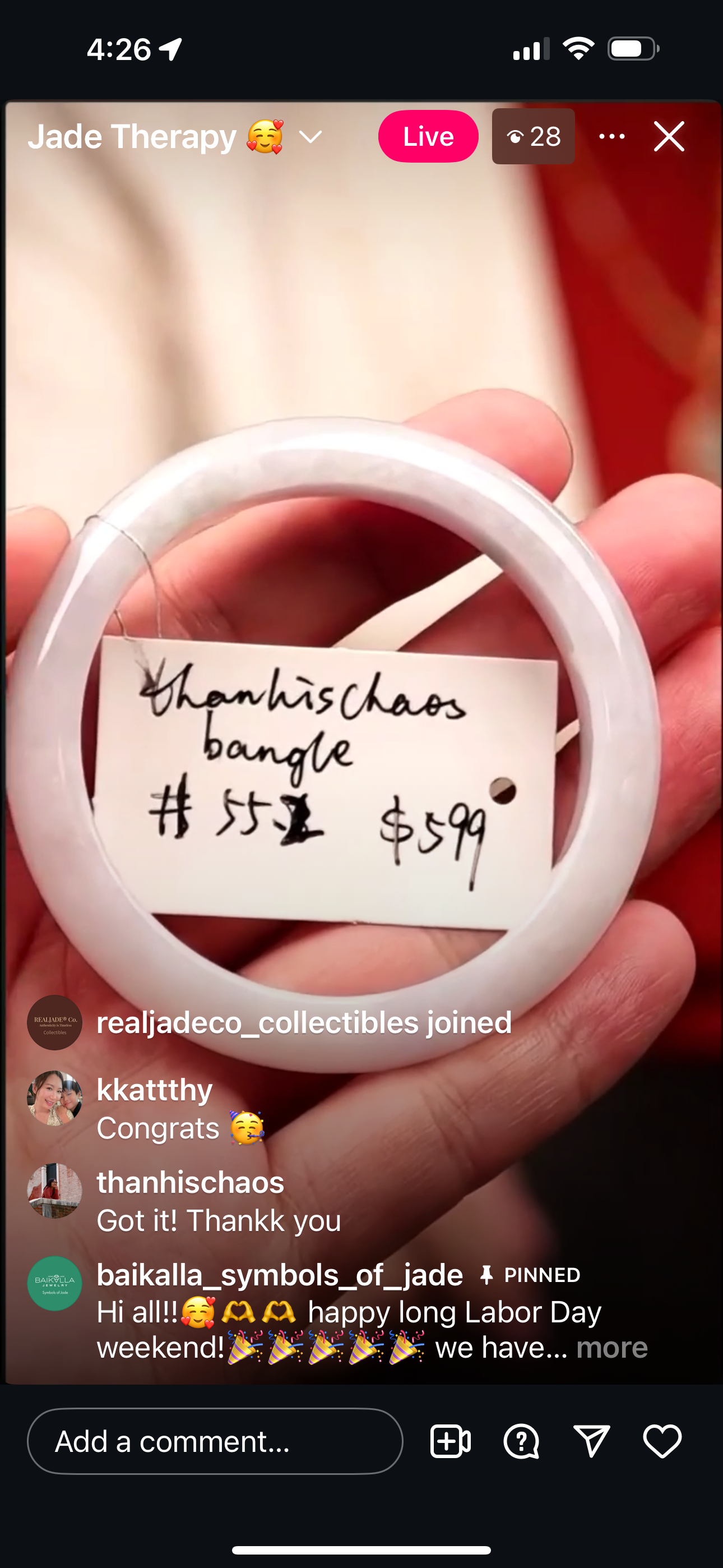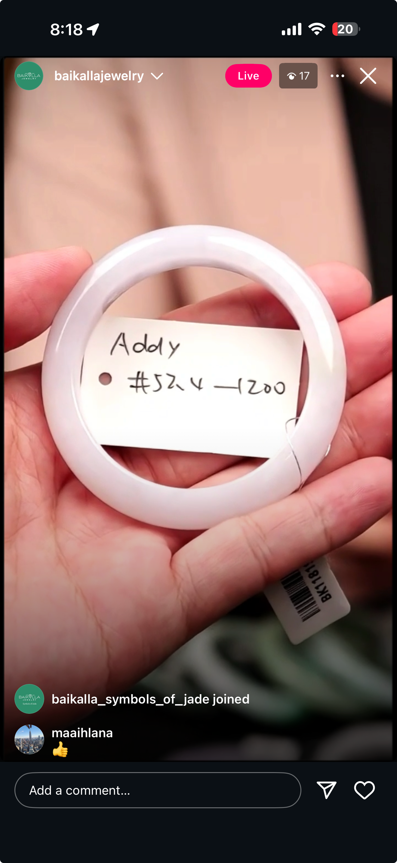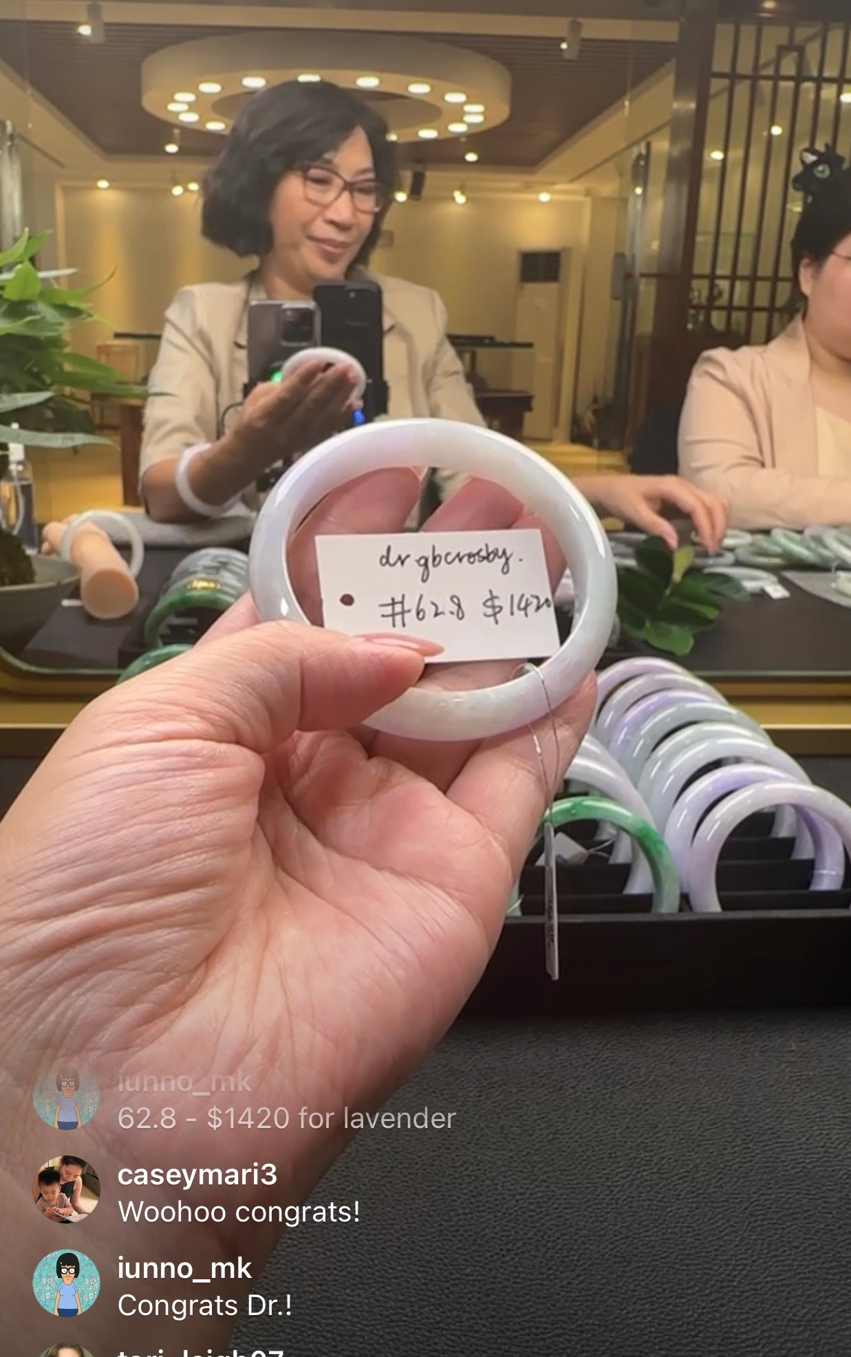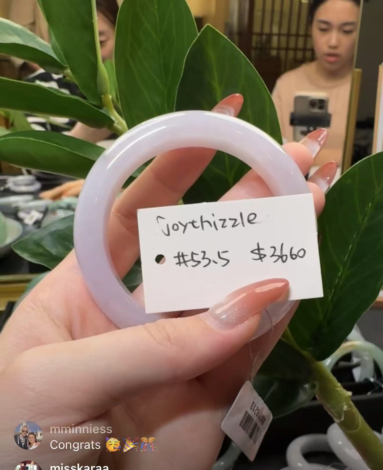 "Live" Natural Light Lavender Jadeite Jade Bangle" (08/19/25)