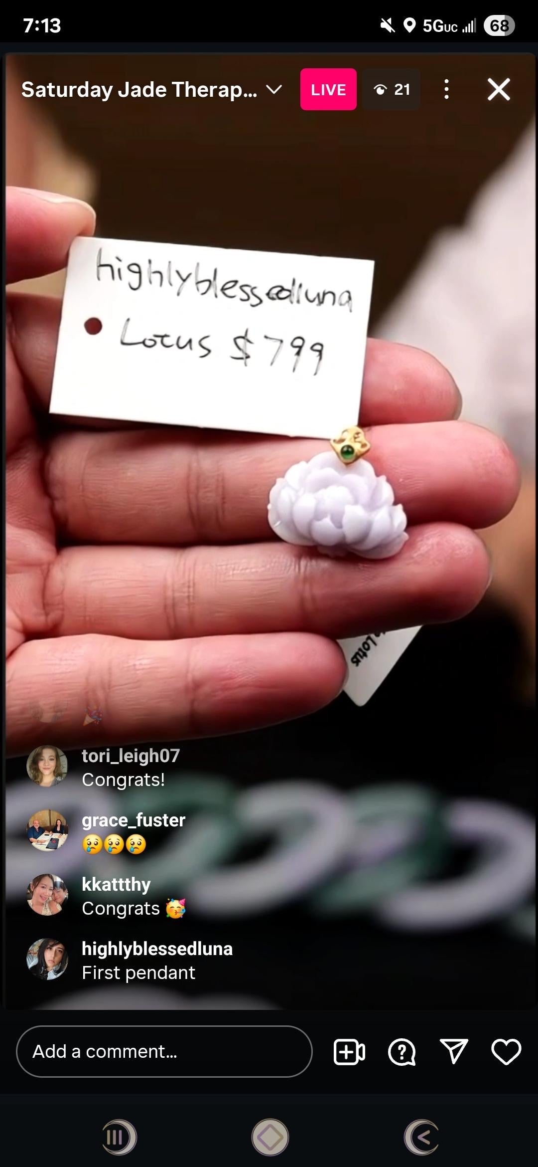 "Live" Natural Light Lavender Jadeite Jade Lotus Pendant" (08/09/25)