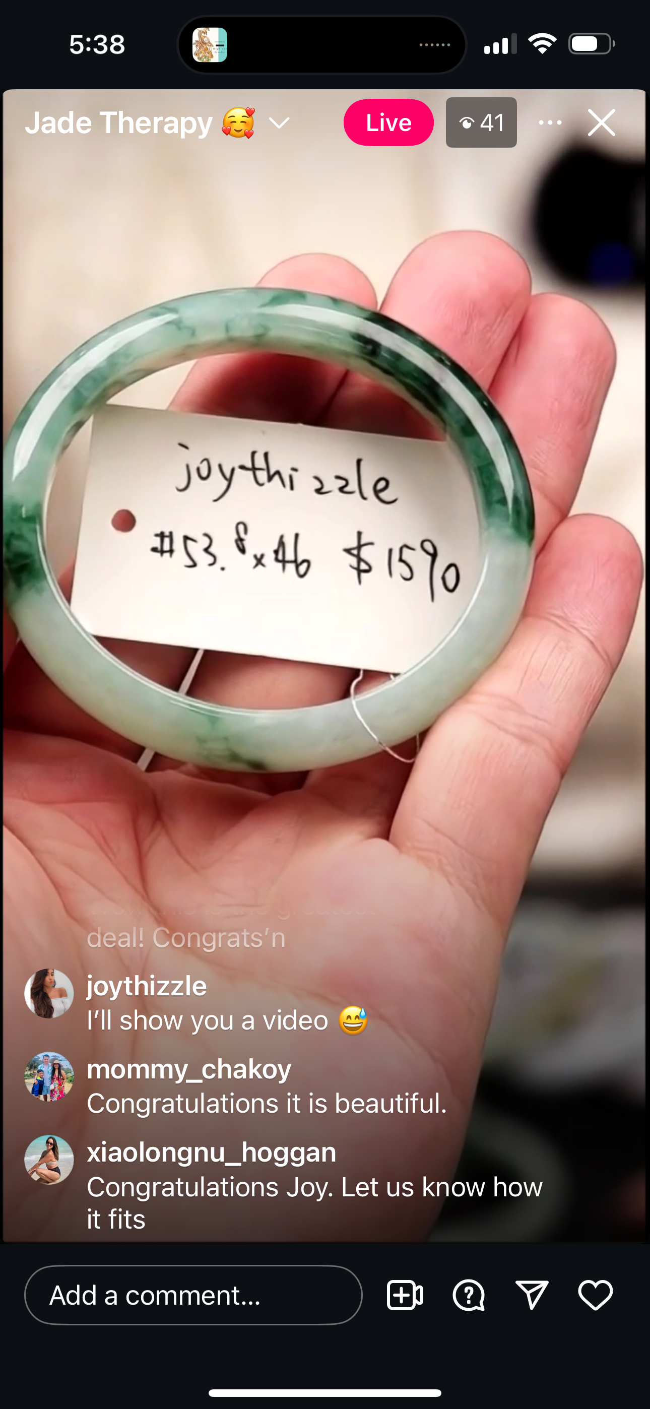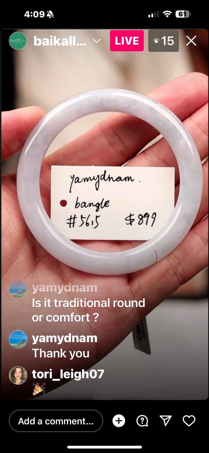 "Live" Natural Light Icy Oil Green Jadeite Jade Comfort Fit Bangle" (07/24/25)