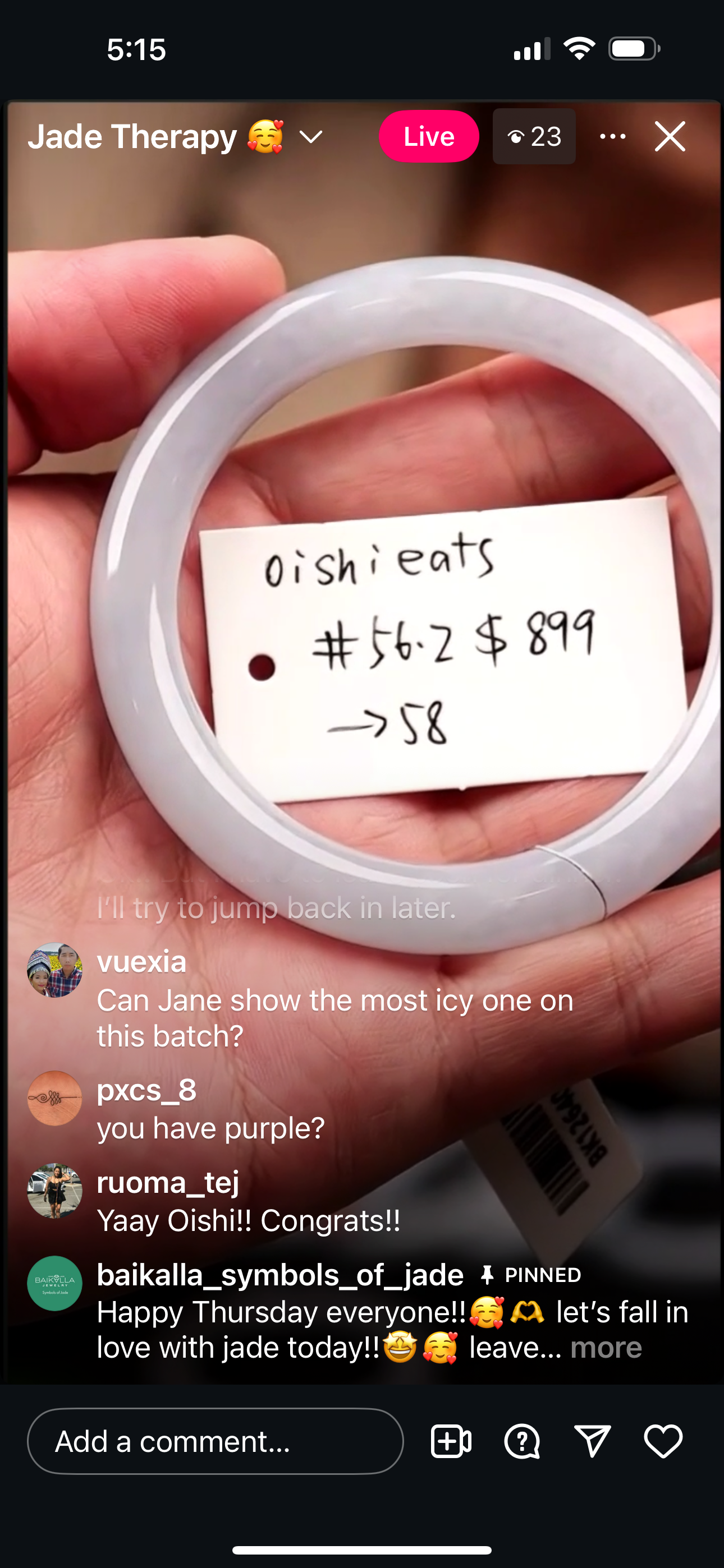 "Live" Natural Light Lavender Jadeite Jade Matching Double Kou Kou" (07/28/25)