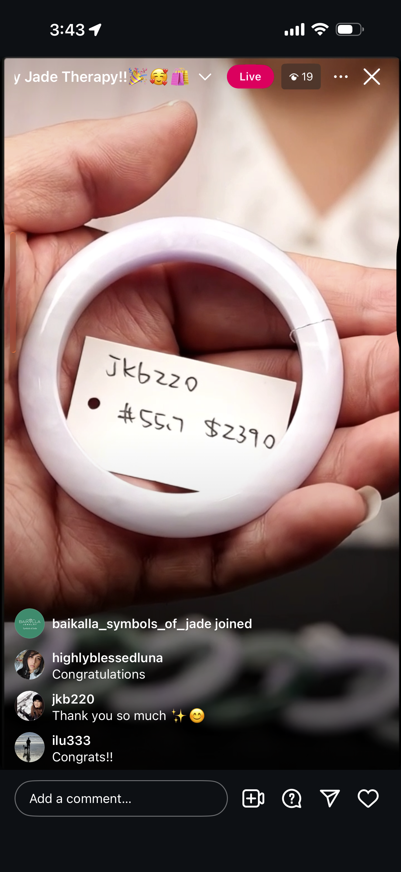 "Live" Natural Light Lavender Jadeite Jade Matching Double Kou Kous" (07/28/25)
