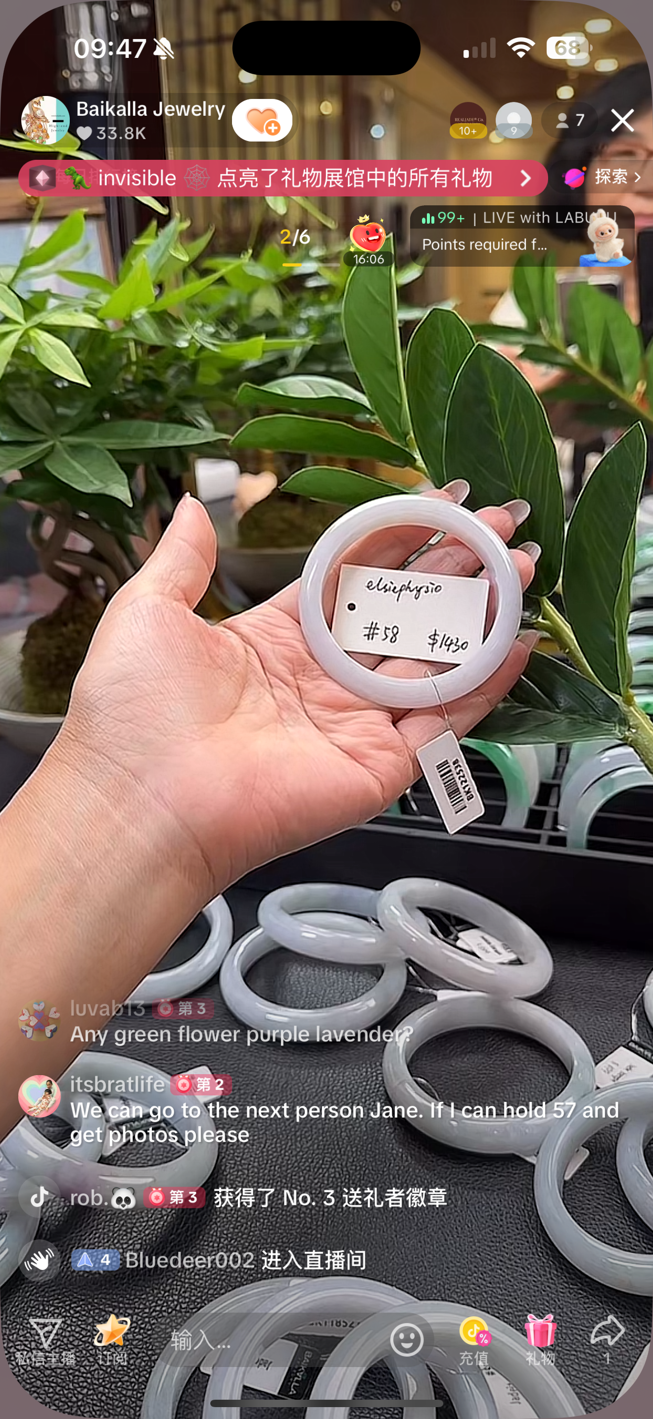 "Live" Natural Light Lavender SaJin Flower Jadeite Jade Bangle" (06/23/25)
