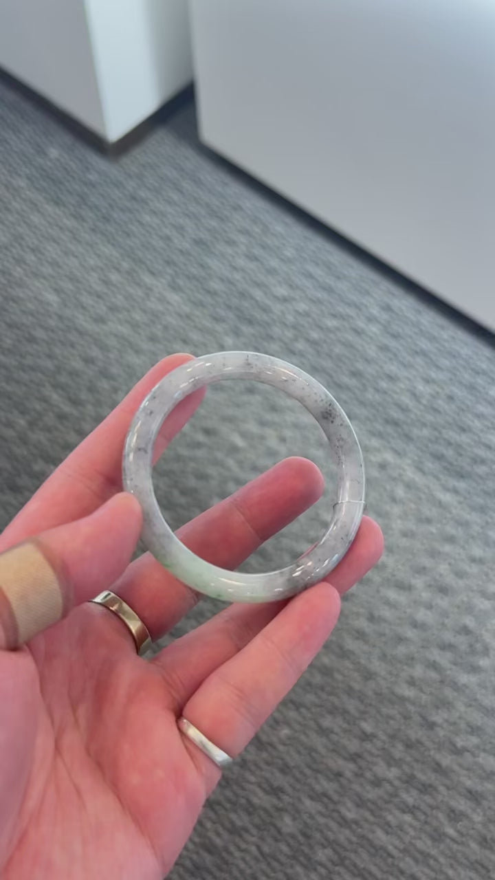 "Live" Natural Light Icy Light Blueish Green Jadeite Jade Bangle (09/18/25)