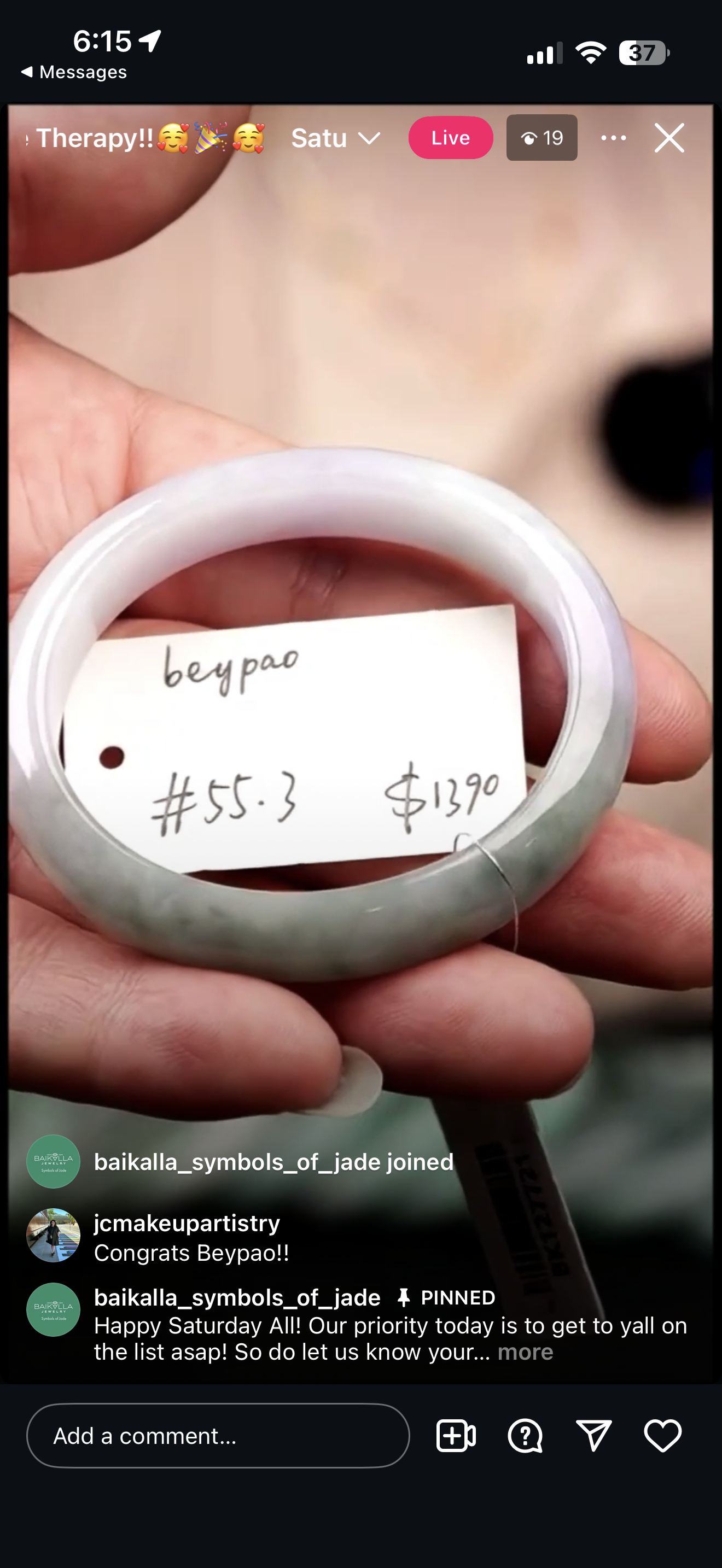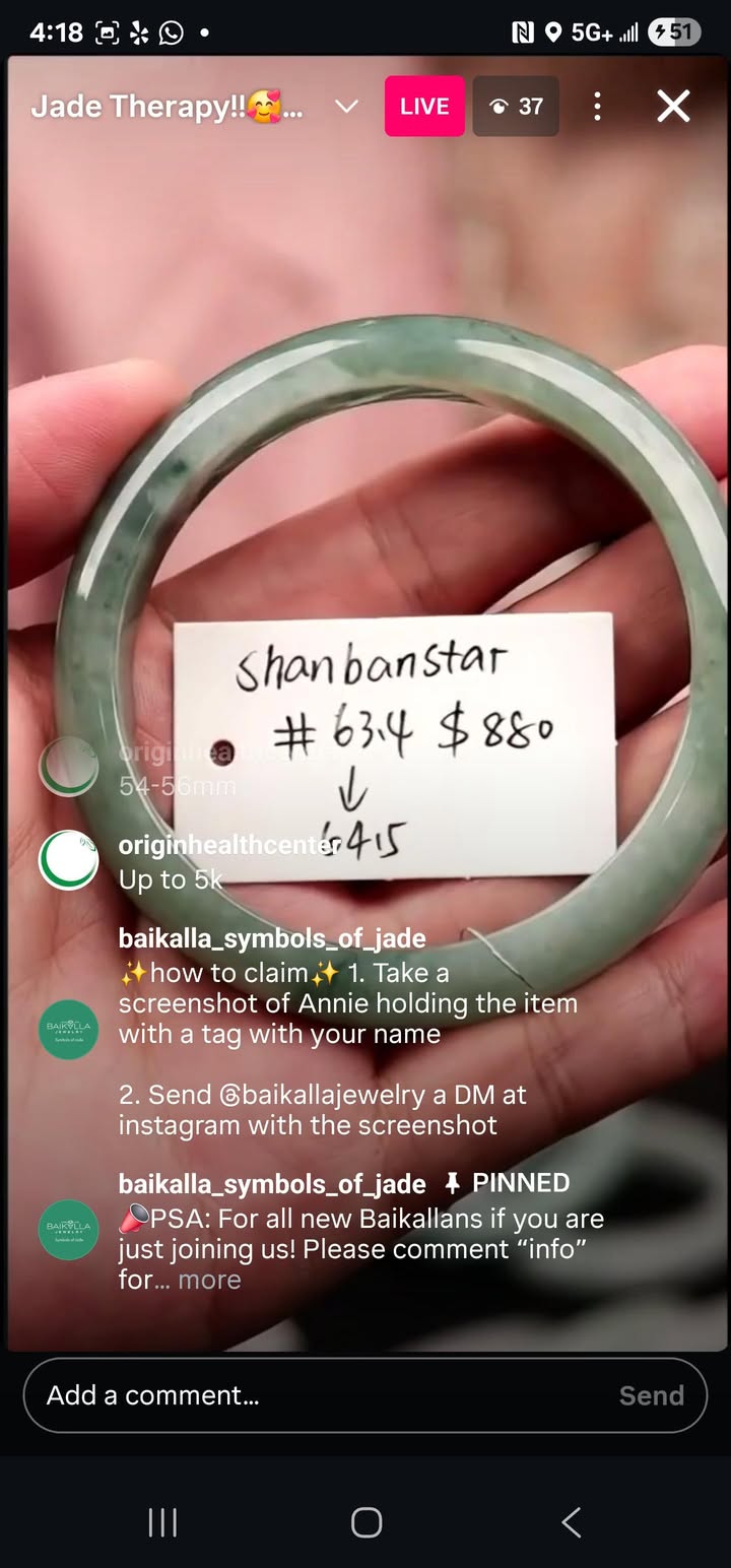 "Live" Natural SaJin Flower Jadeite Jade Bangle" (06/26/25)