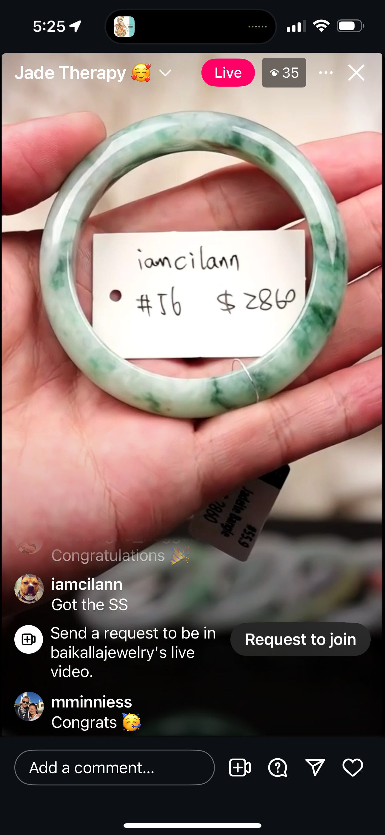 "Live" Natural Purple Jadeite Jade Finger Bangle #5.5" (07/01/25)