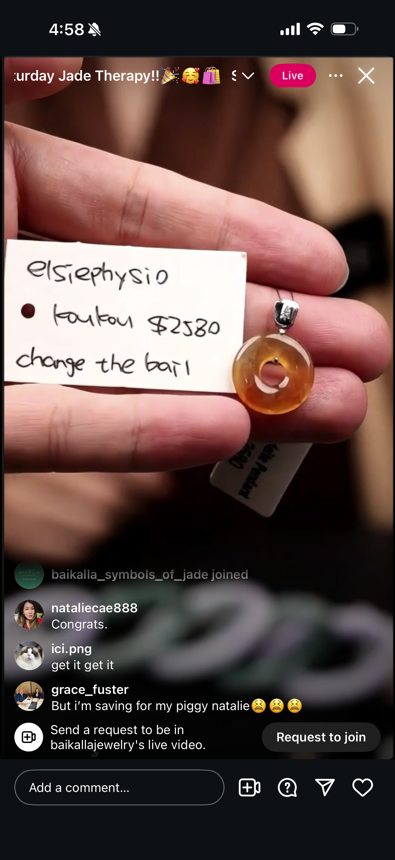 "Live" Natural Red Jadeite Jade Kou Kou Pendant" (08/09/25) (Change Bail)