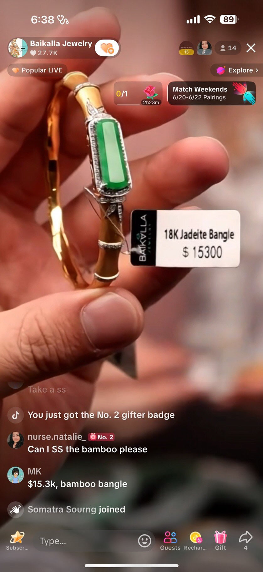 18k Gold Bamboo Bracelet with Imperial Jadeite Jade Stone and Diamond Accents