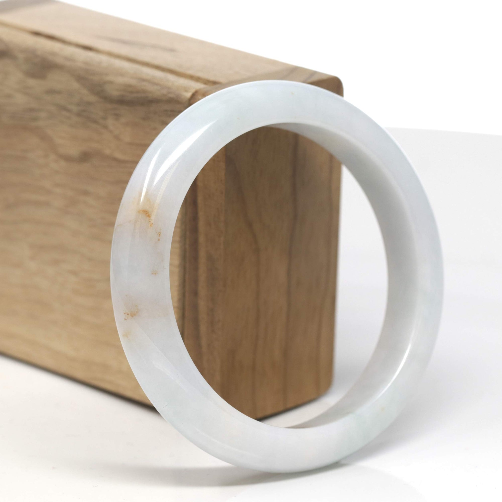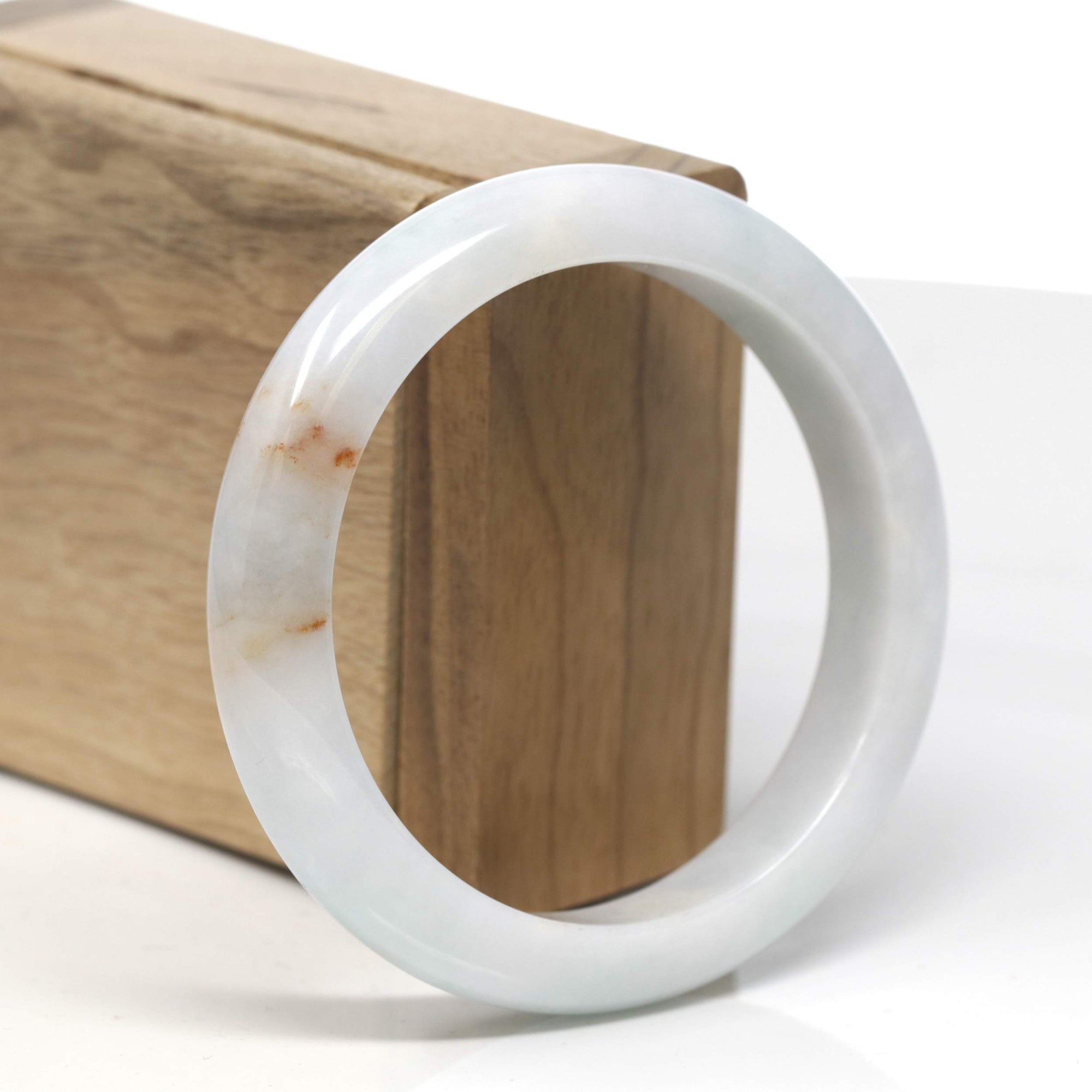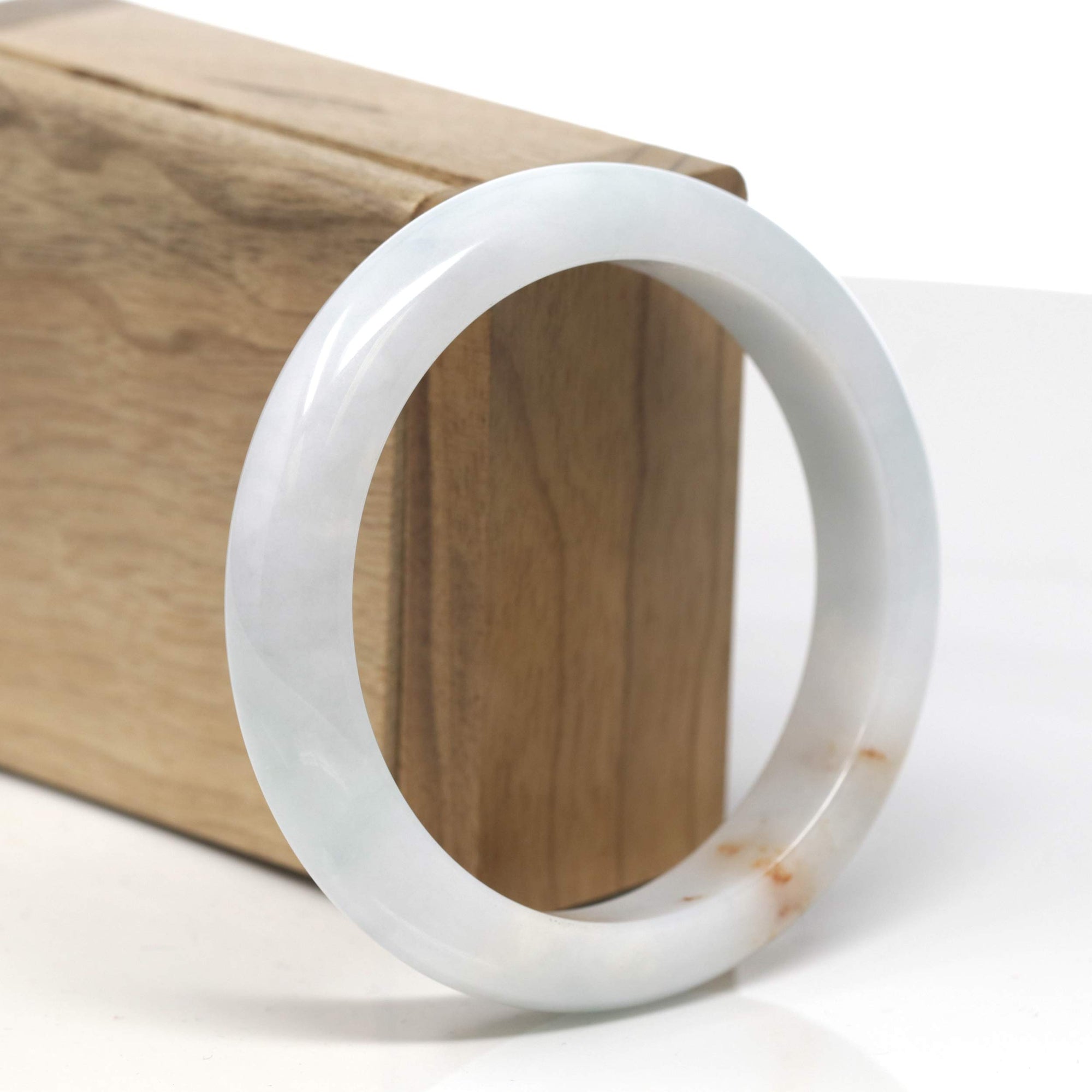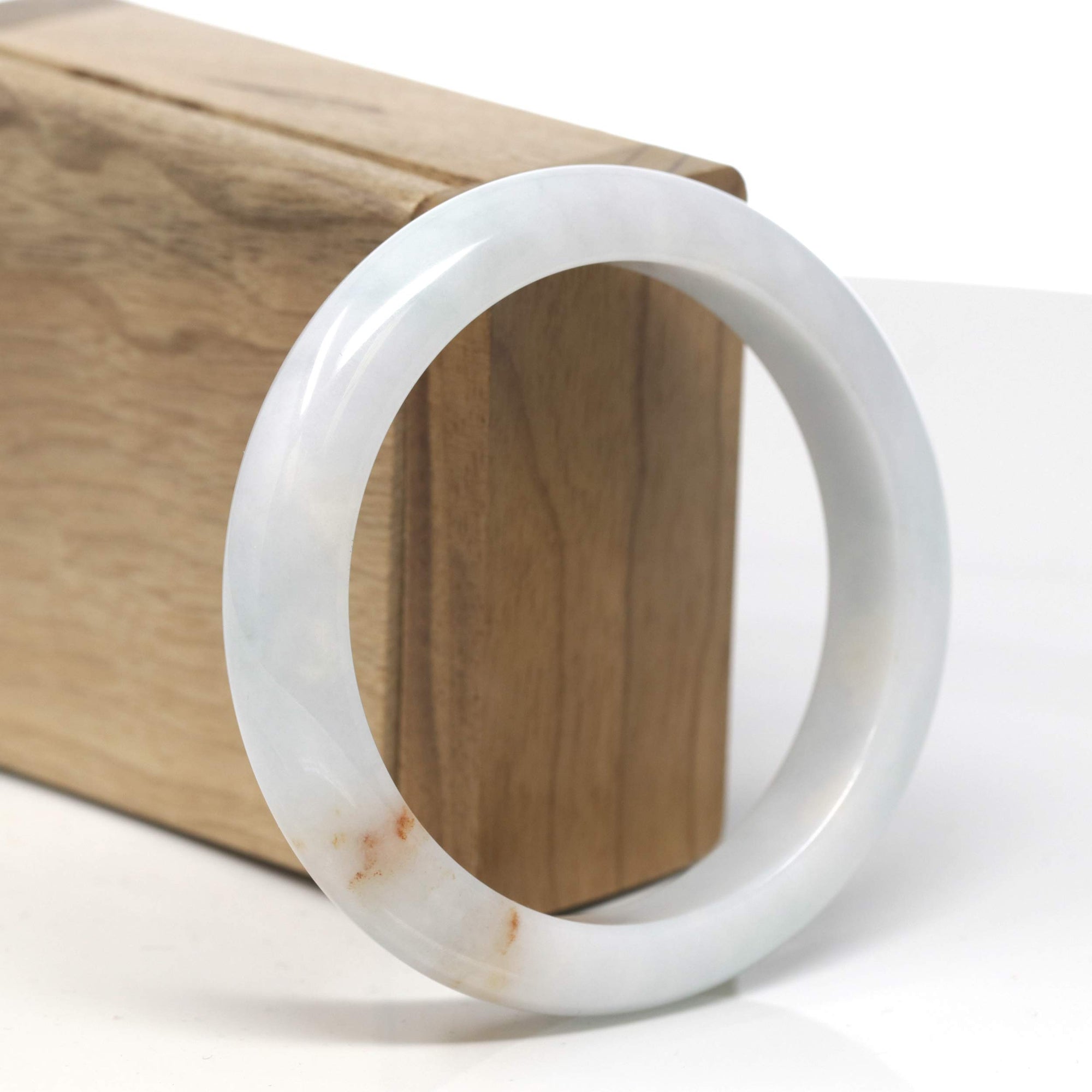 Baikalla White W/ Light Green Patch "Traditional Round" Jadeite Jade Bangle Bracelet (51.5mm) #TT333