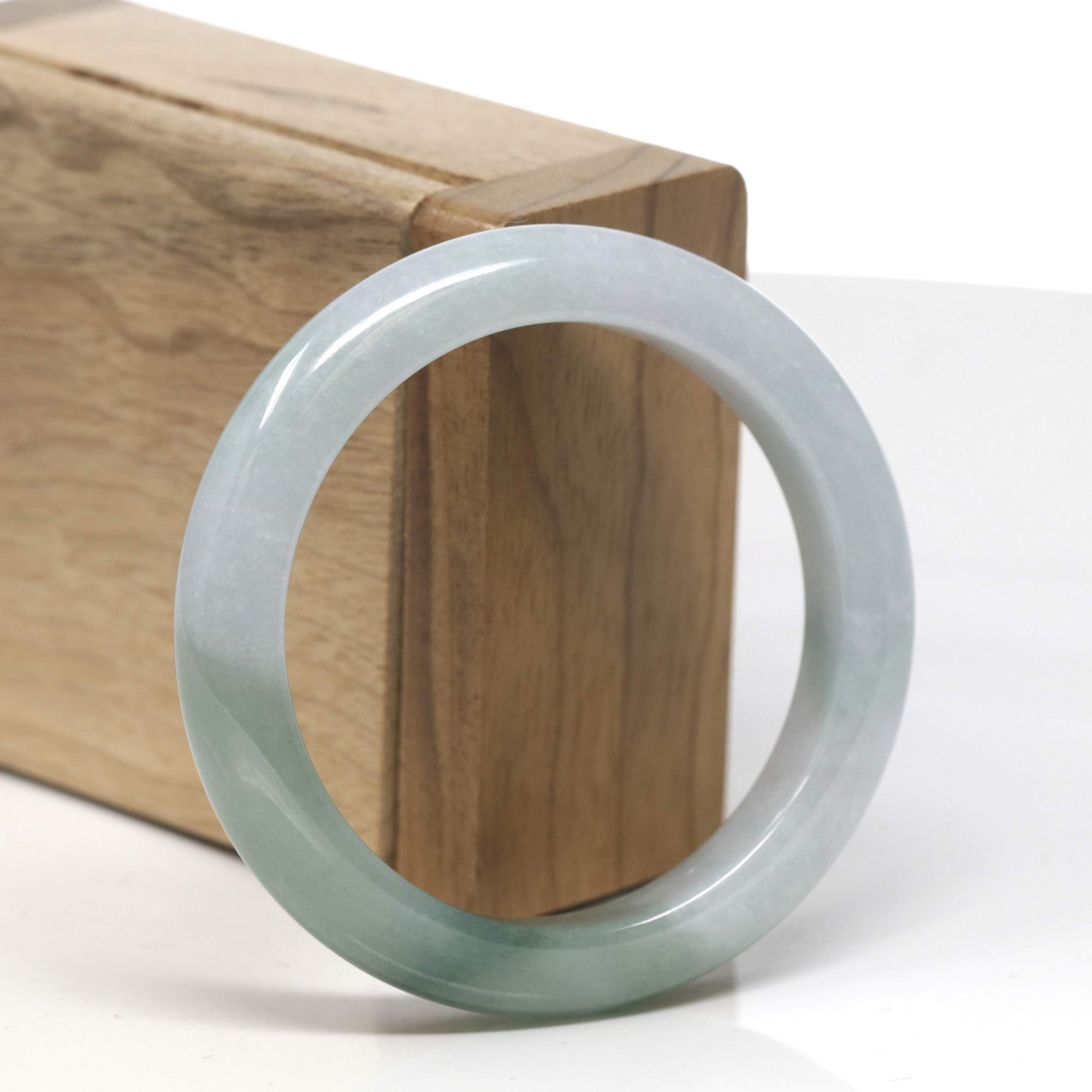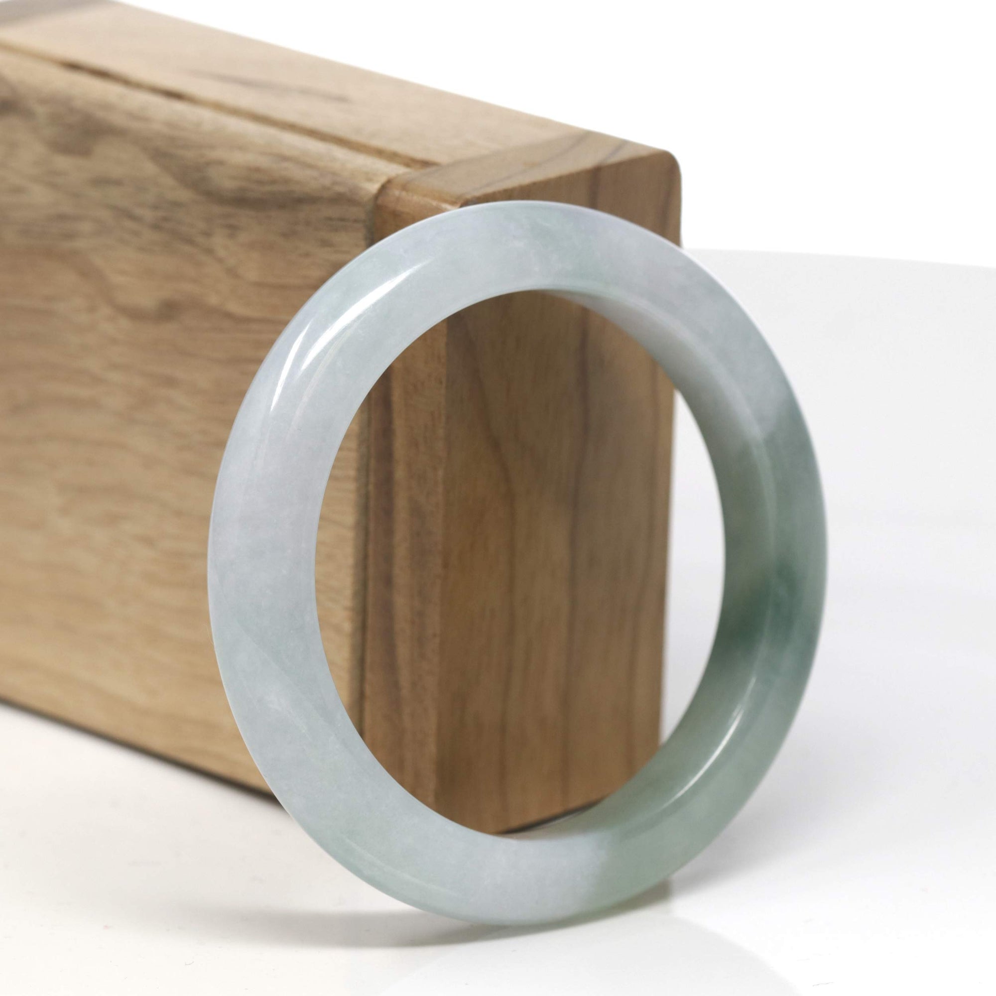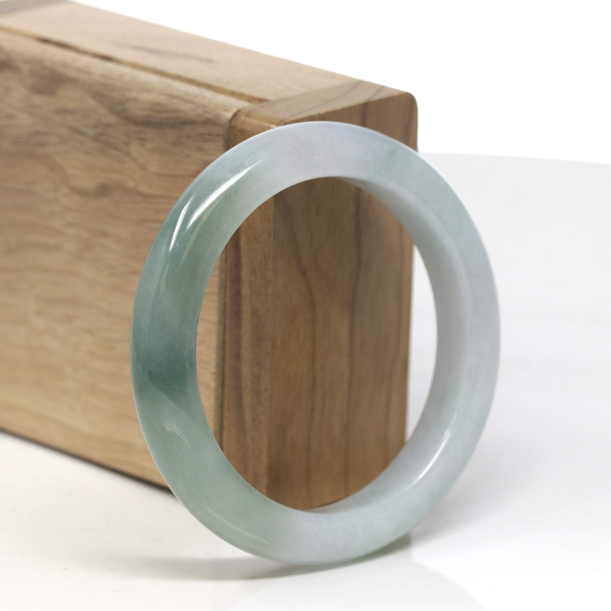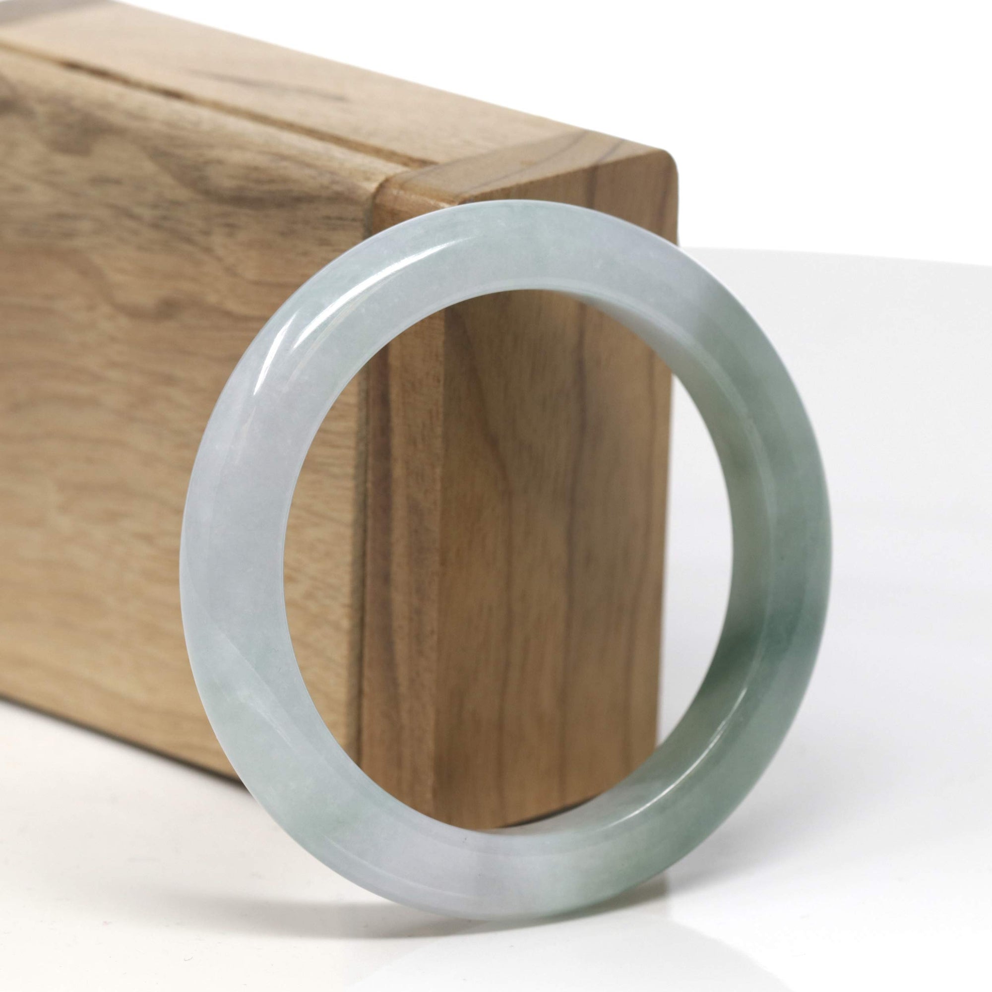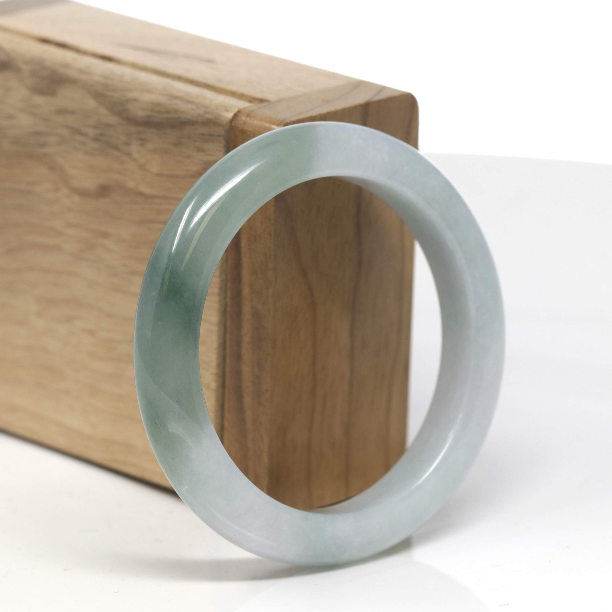 Baikalla White & Green Jadeite Jade "Traditional Full Round" Bangle Bracelet (55mm) #TT168