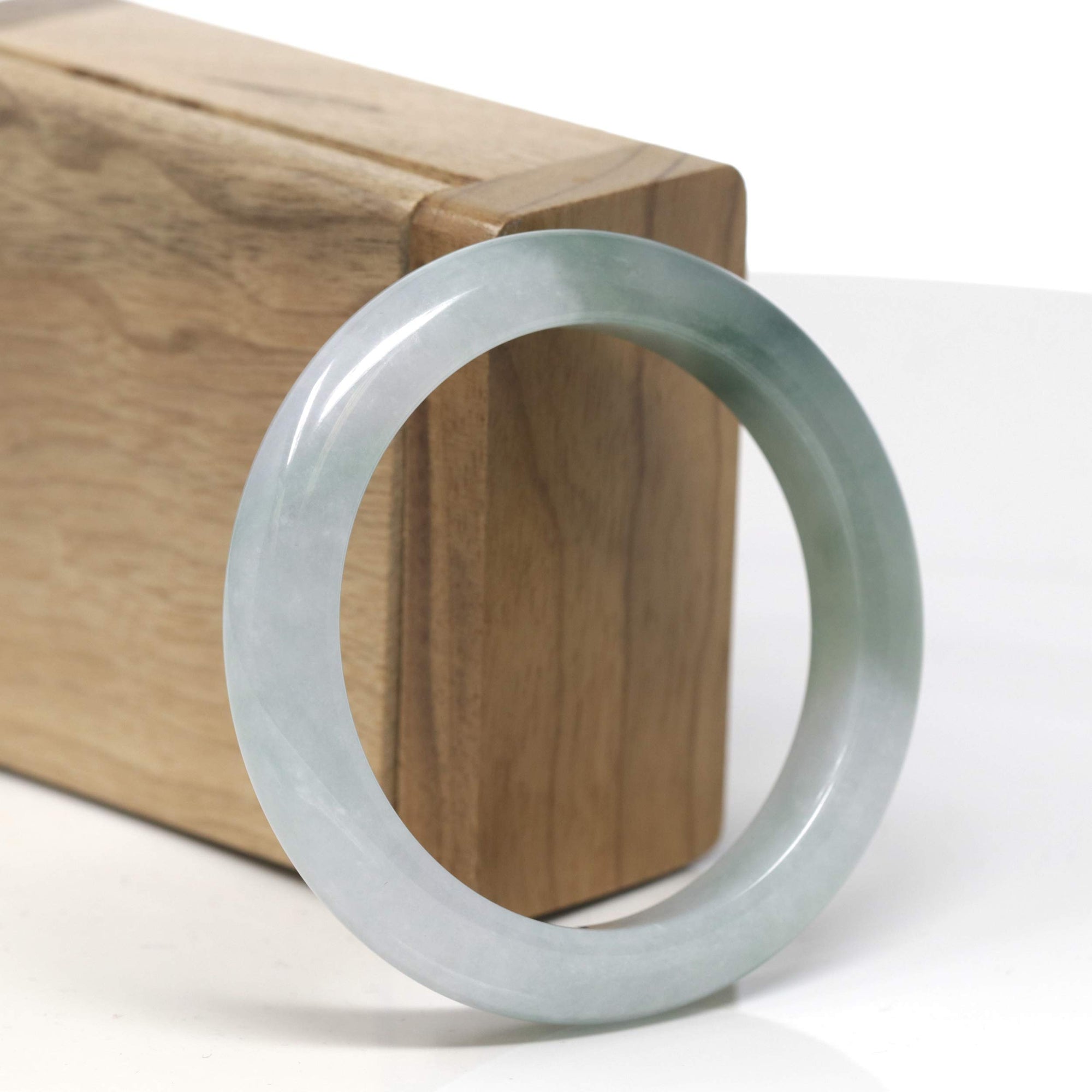 Baikalla White-Lavender W/ Blue-Green Flower Jadeite Jade "Traditional Full Round" Bangle Bracelet (59.2mm) #TT159