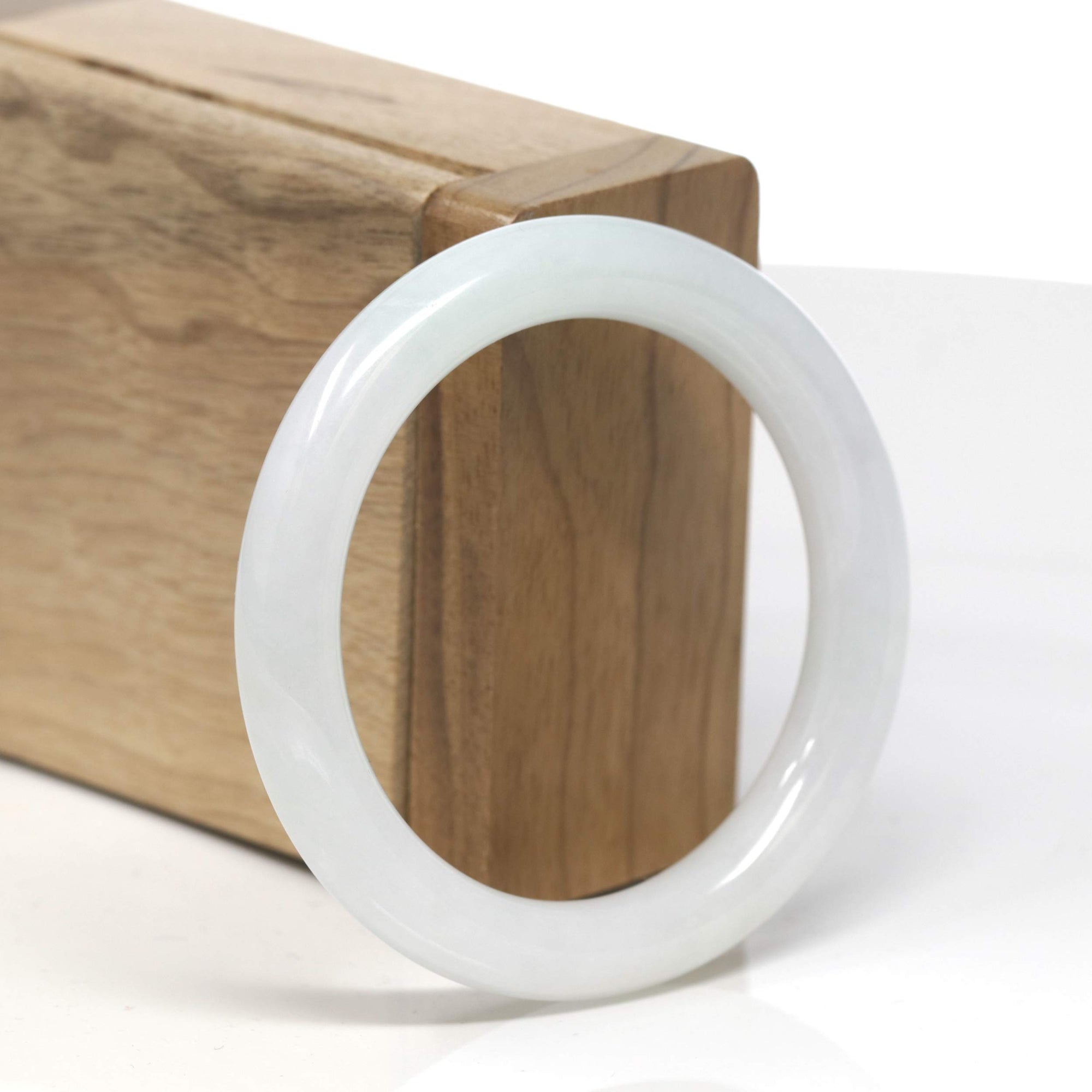 Baikalla White Jadeite Jade "Traditional Full Round" Bangle Bracelet (56mm) #TT119