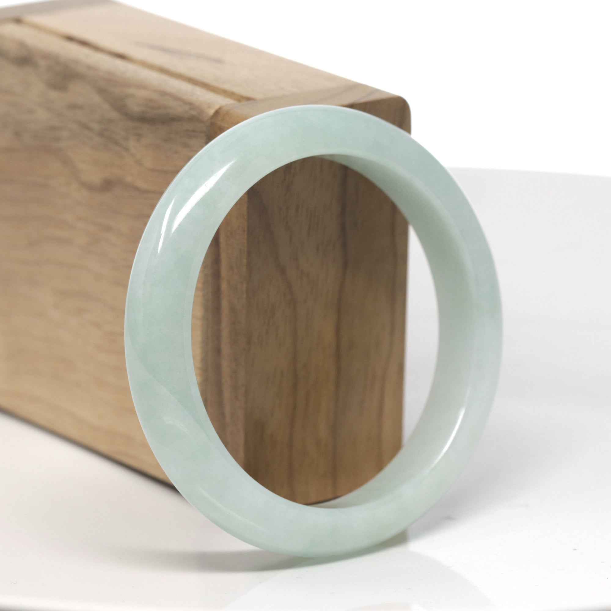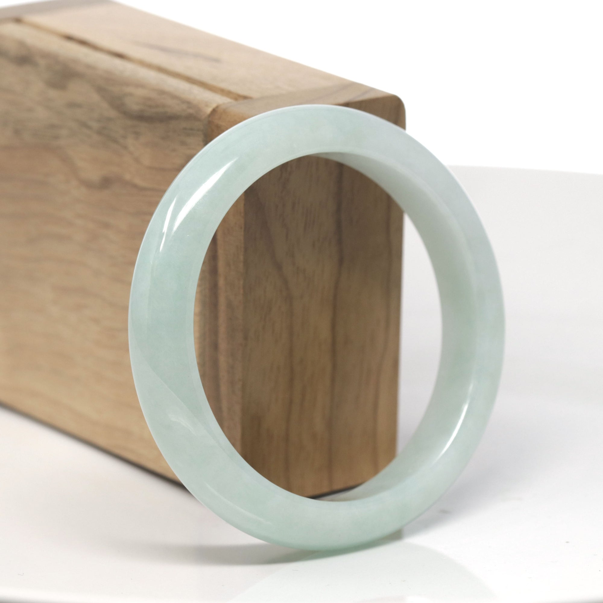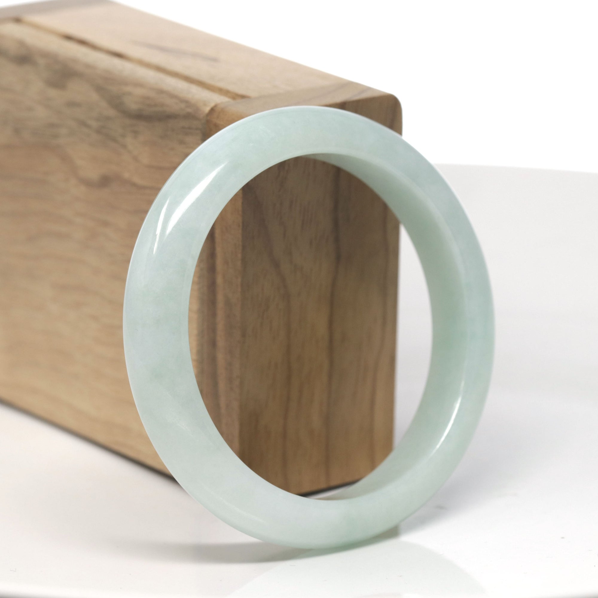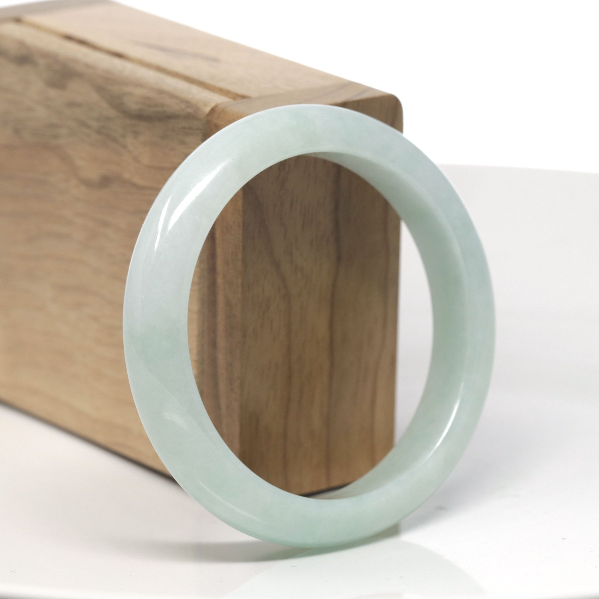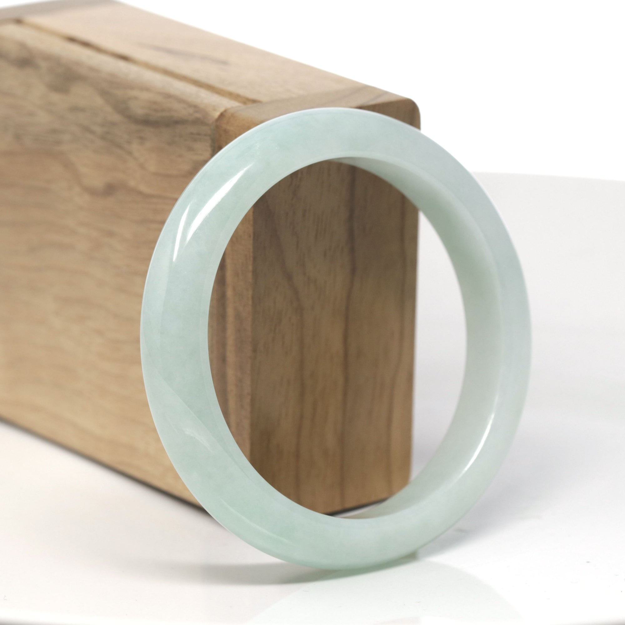 Baikalla White & Light Green Jadeite Jade "Traditional Full Round" Bangle Bracelet (51.5mm) #TT104