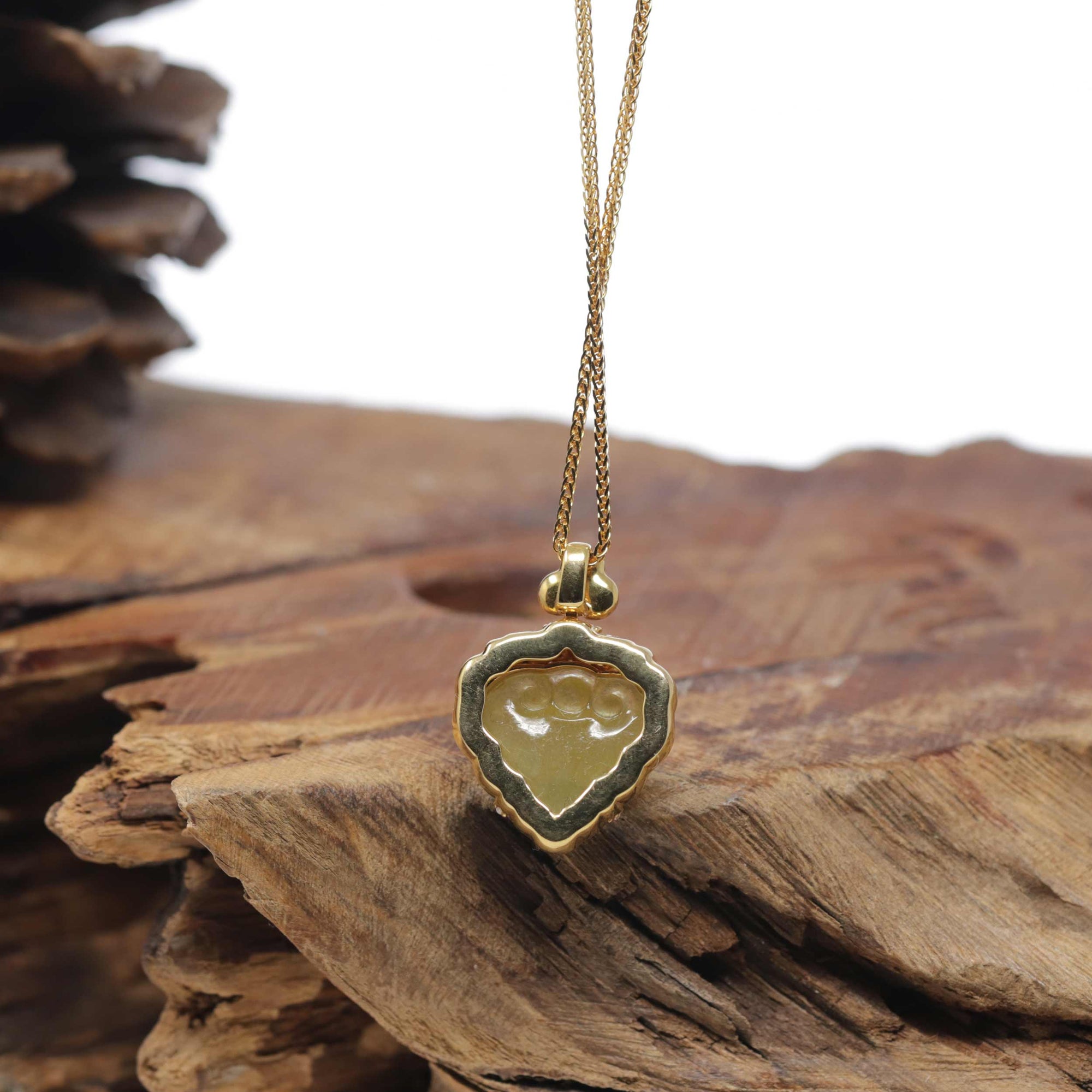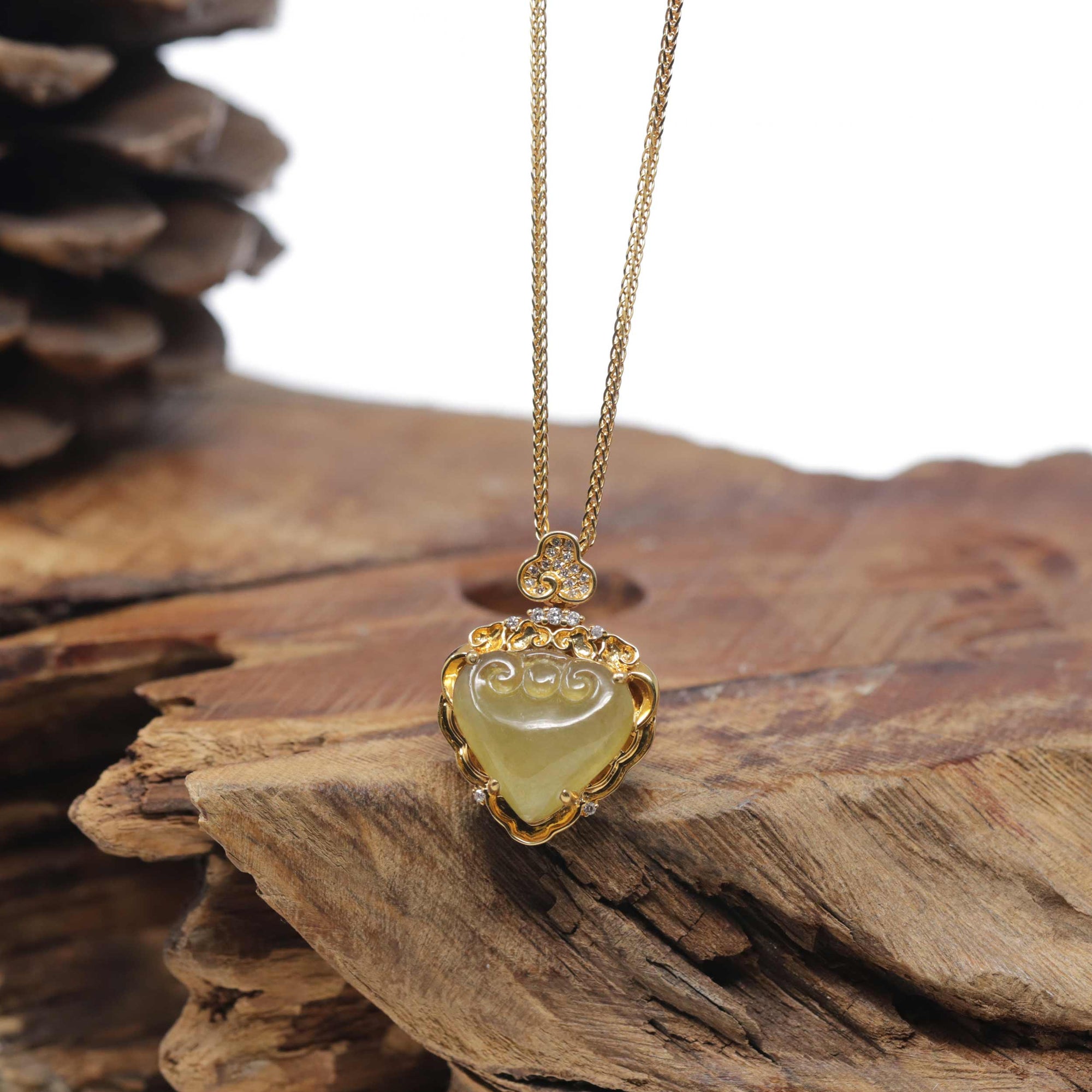 Baikalla 18K Yellow Gold Natural Icy Yellow-Green "Ruyi Heart" Jadeite Jade Pendant W/ Natural Diamonds