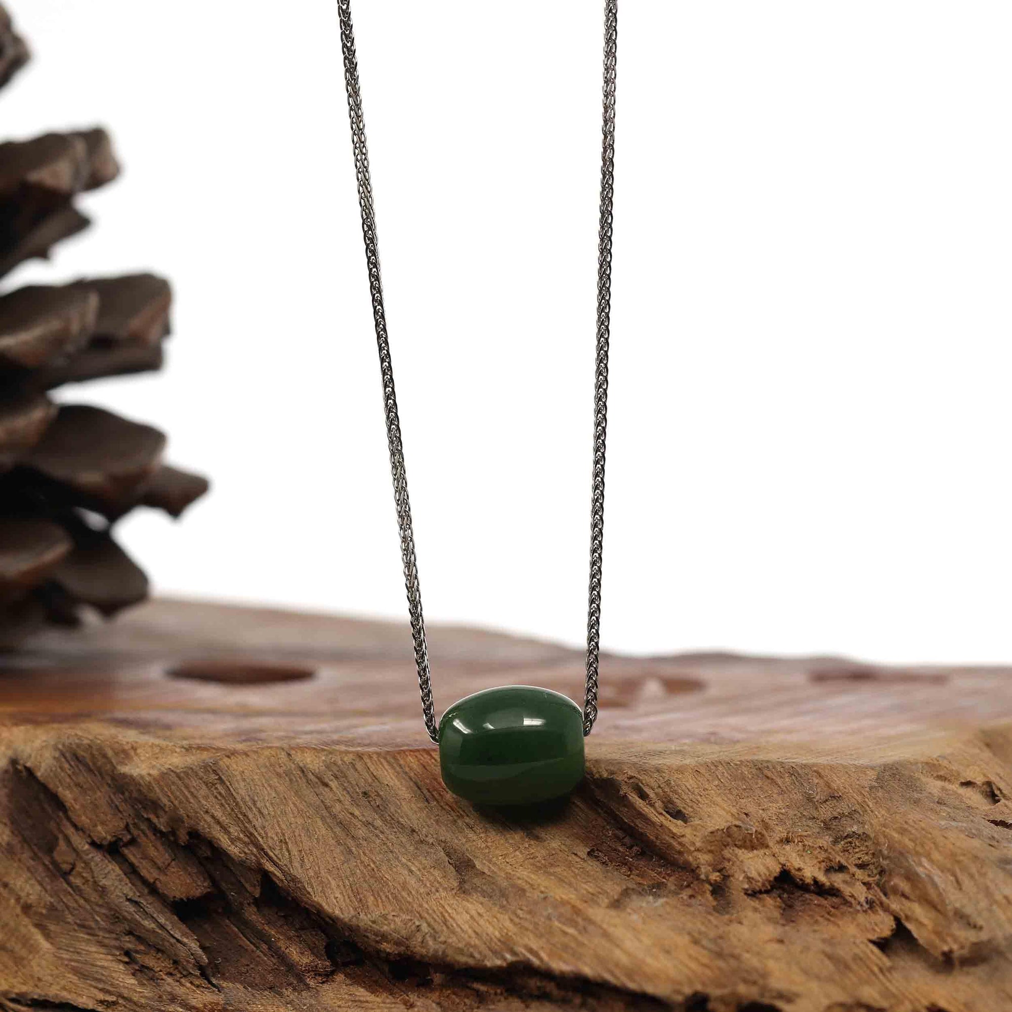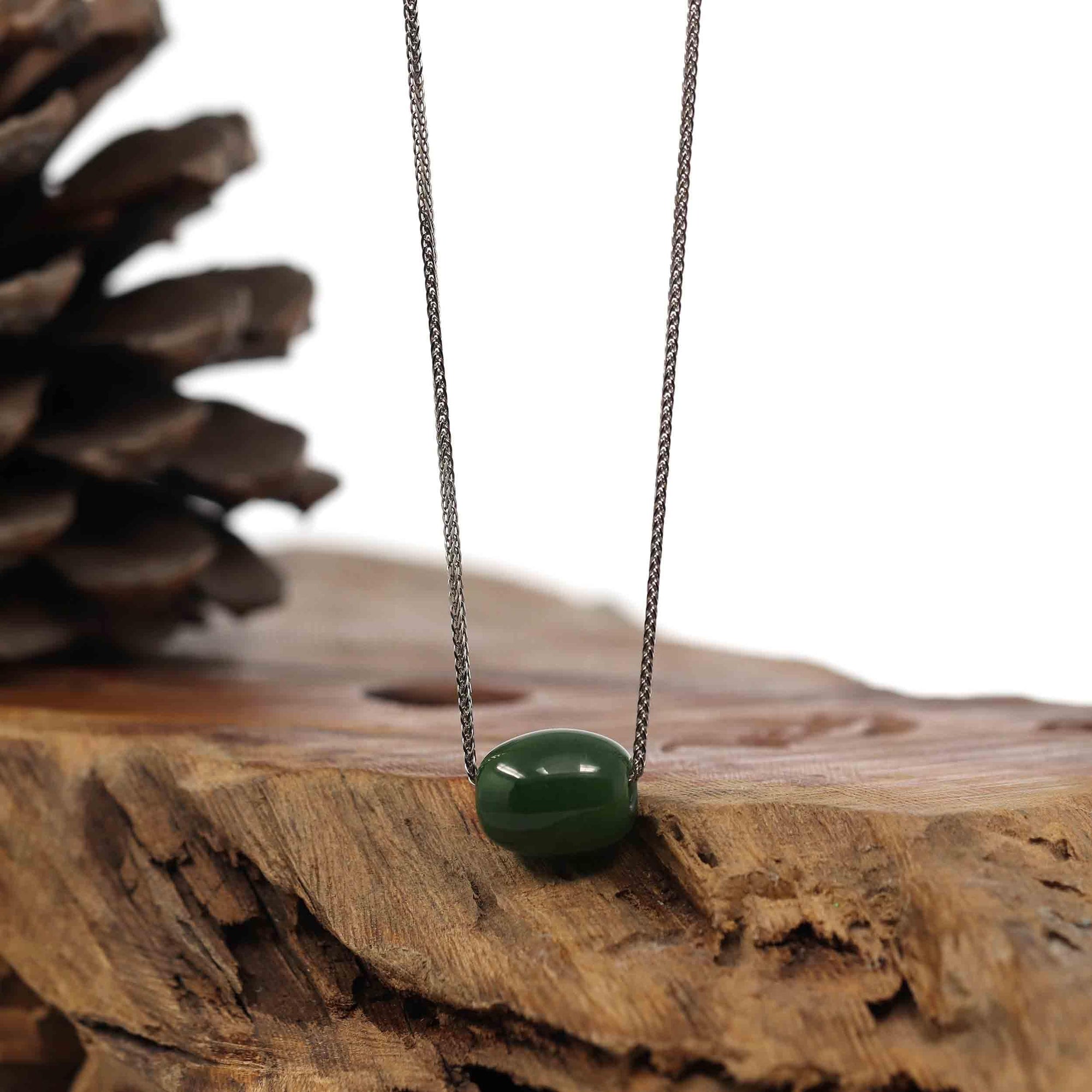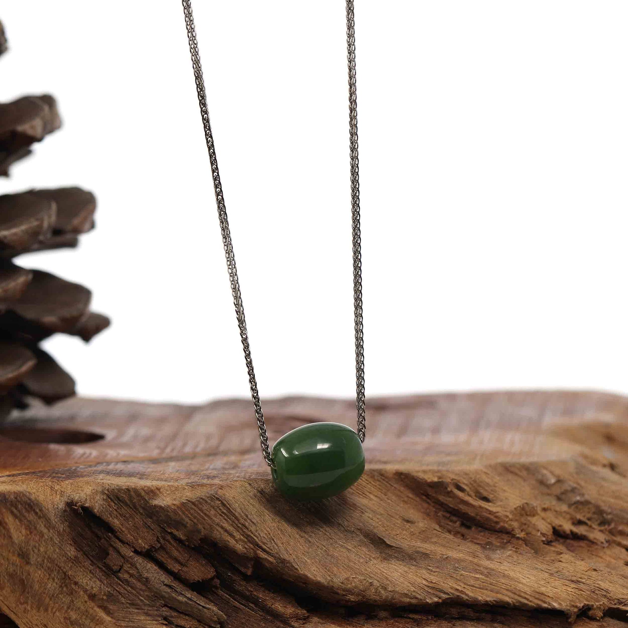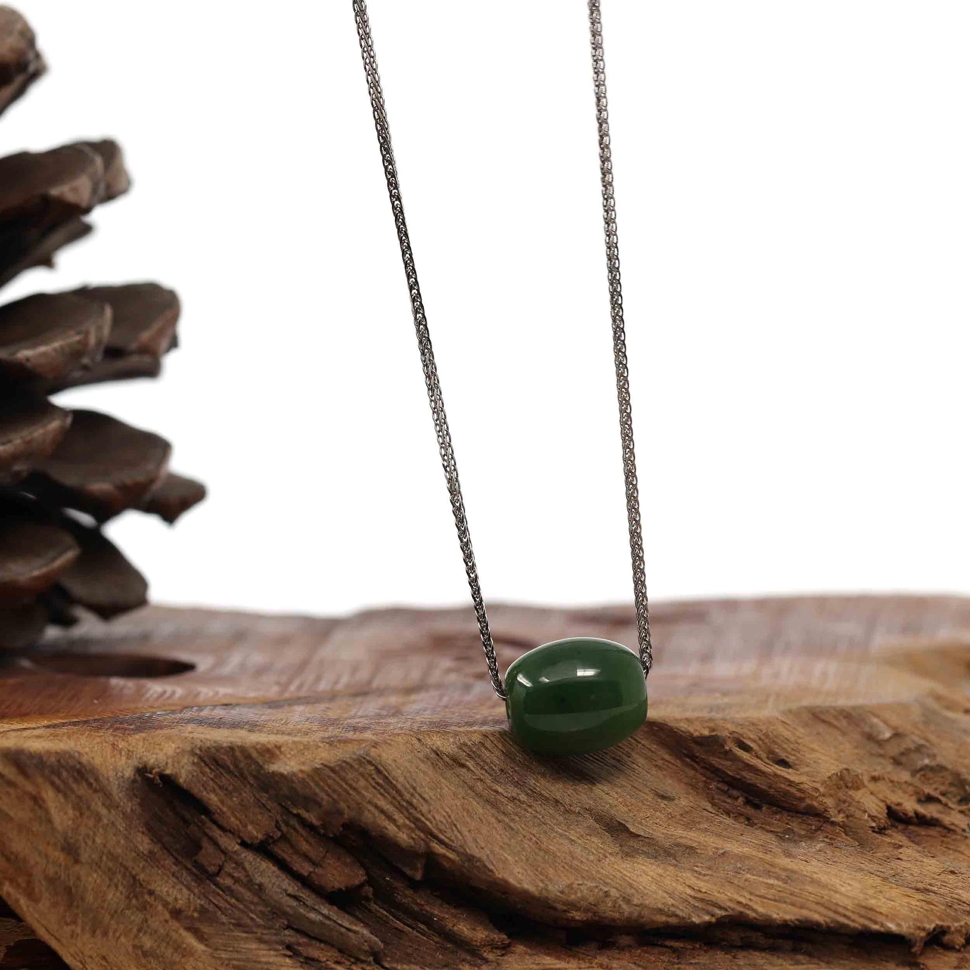 Baikalla™ "Good Luck Button" Necklace Forest Green Jade Lucky KouKou Pendant Necklace