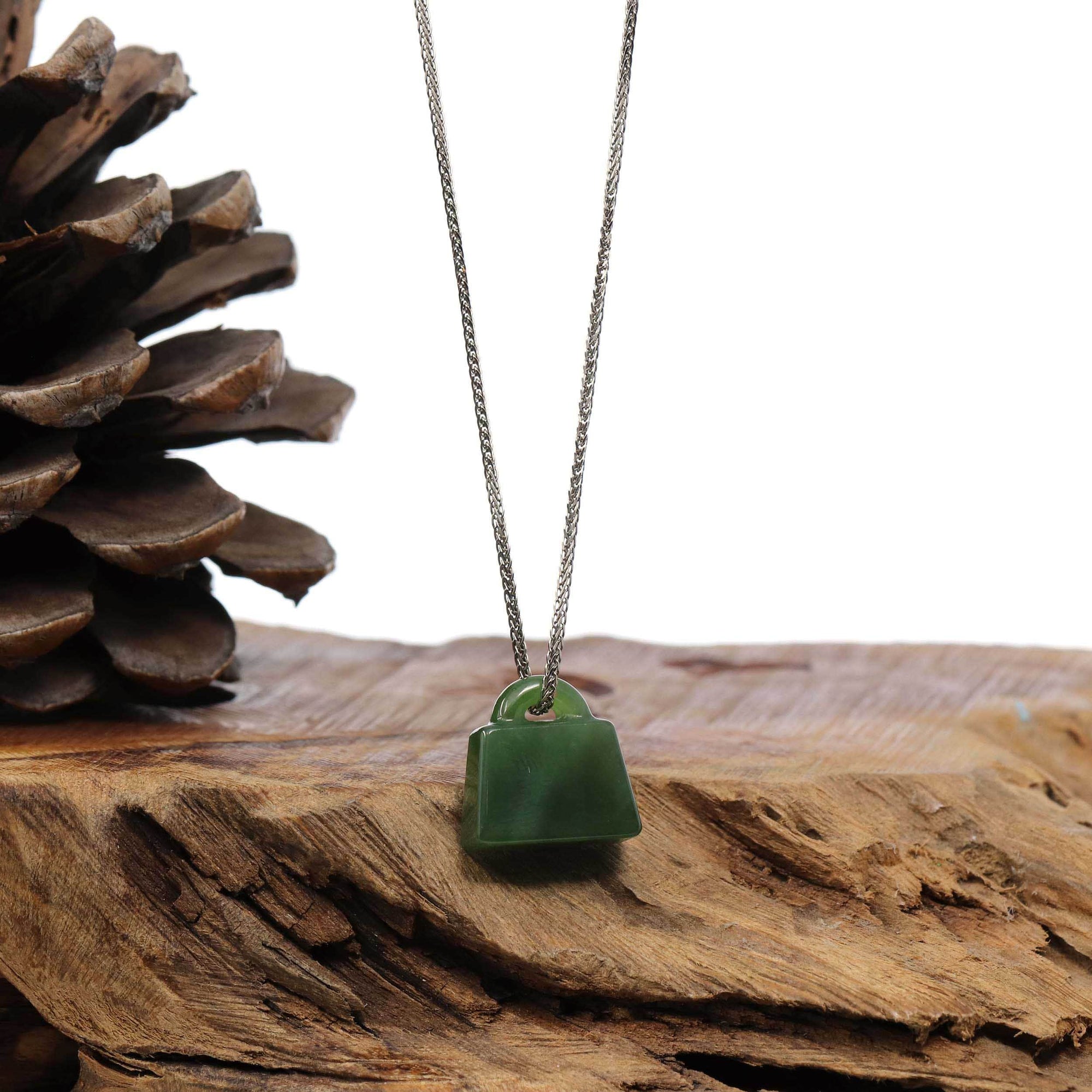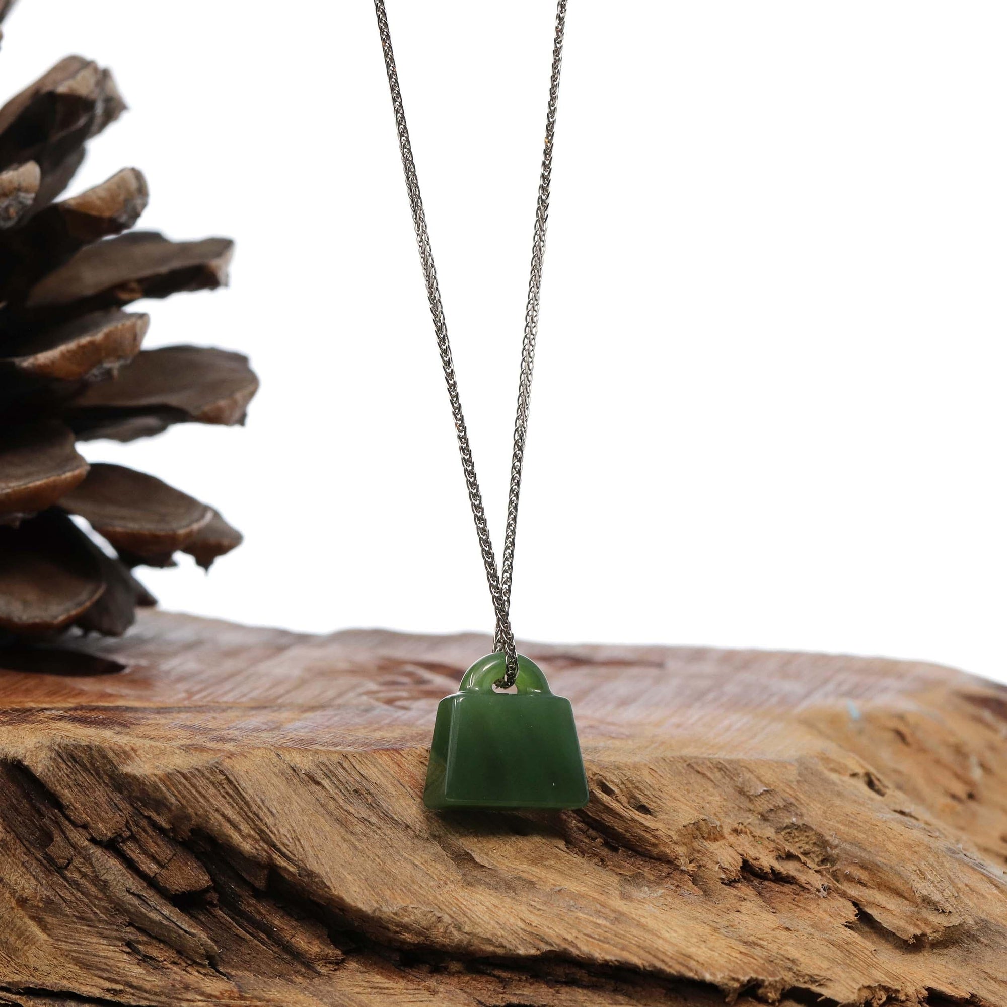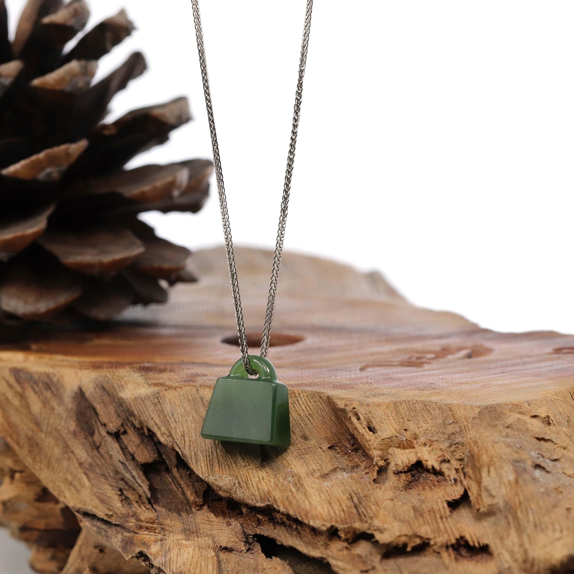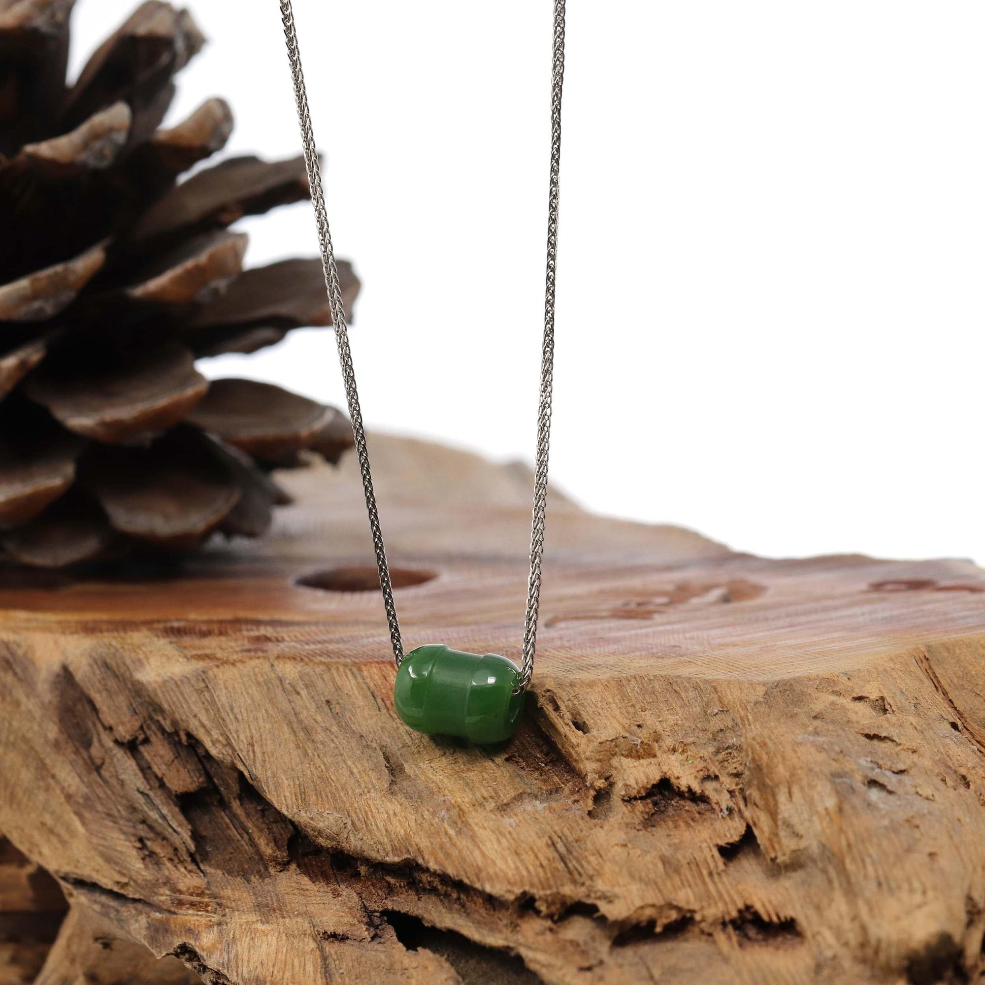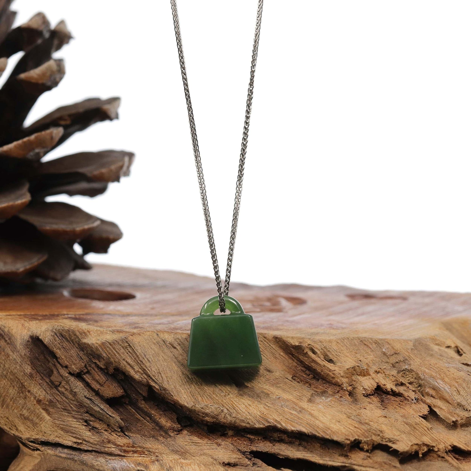 Baikalla™ "Good Luck Button" Necklace Forest Green Jade Lucky KouKou Pendant Necklace