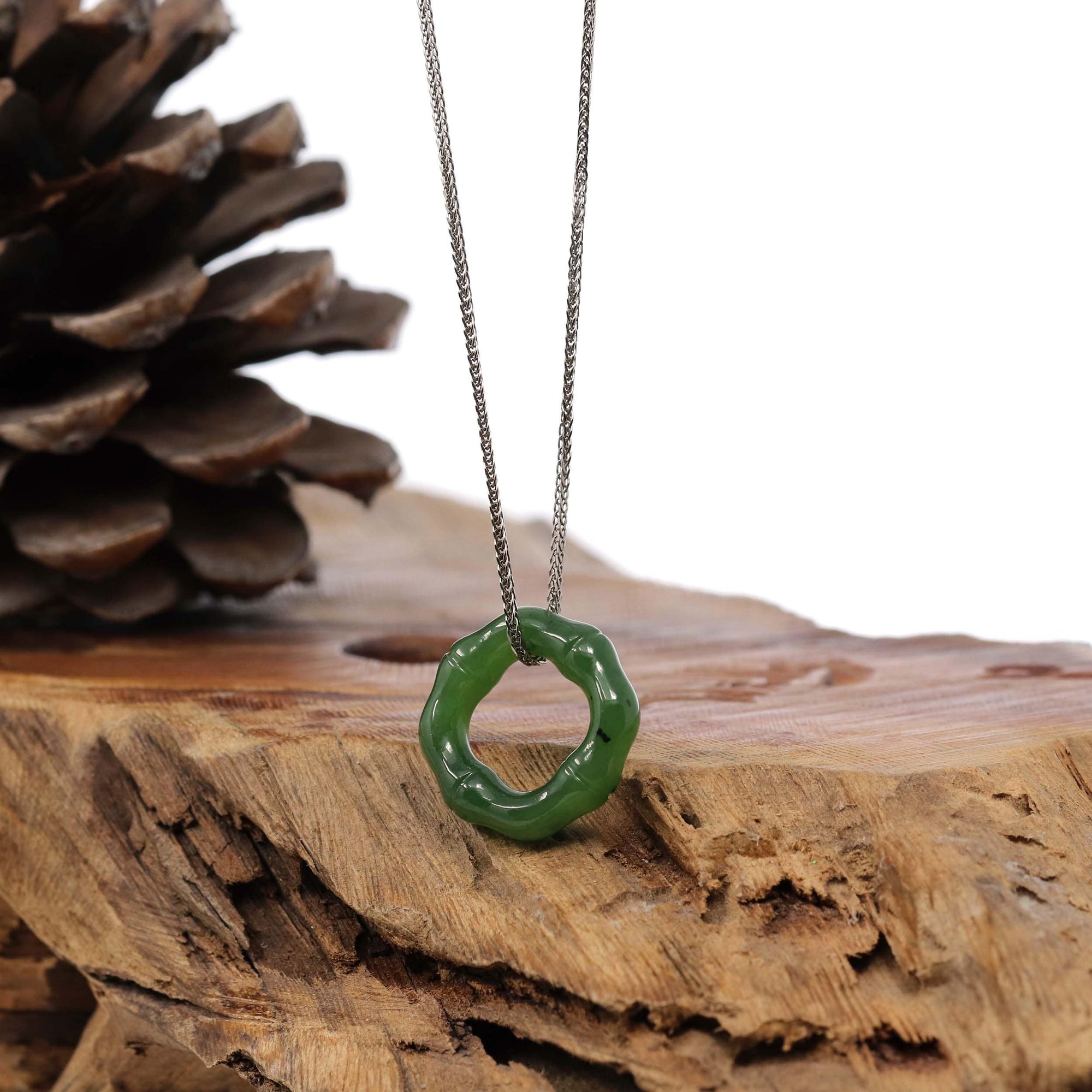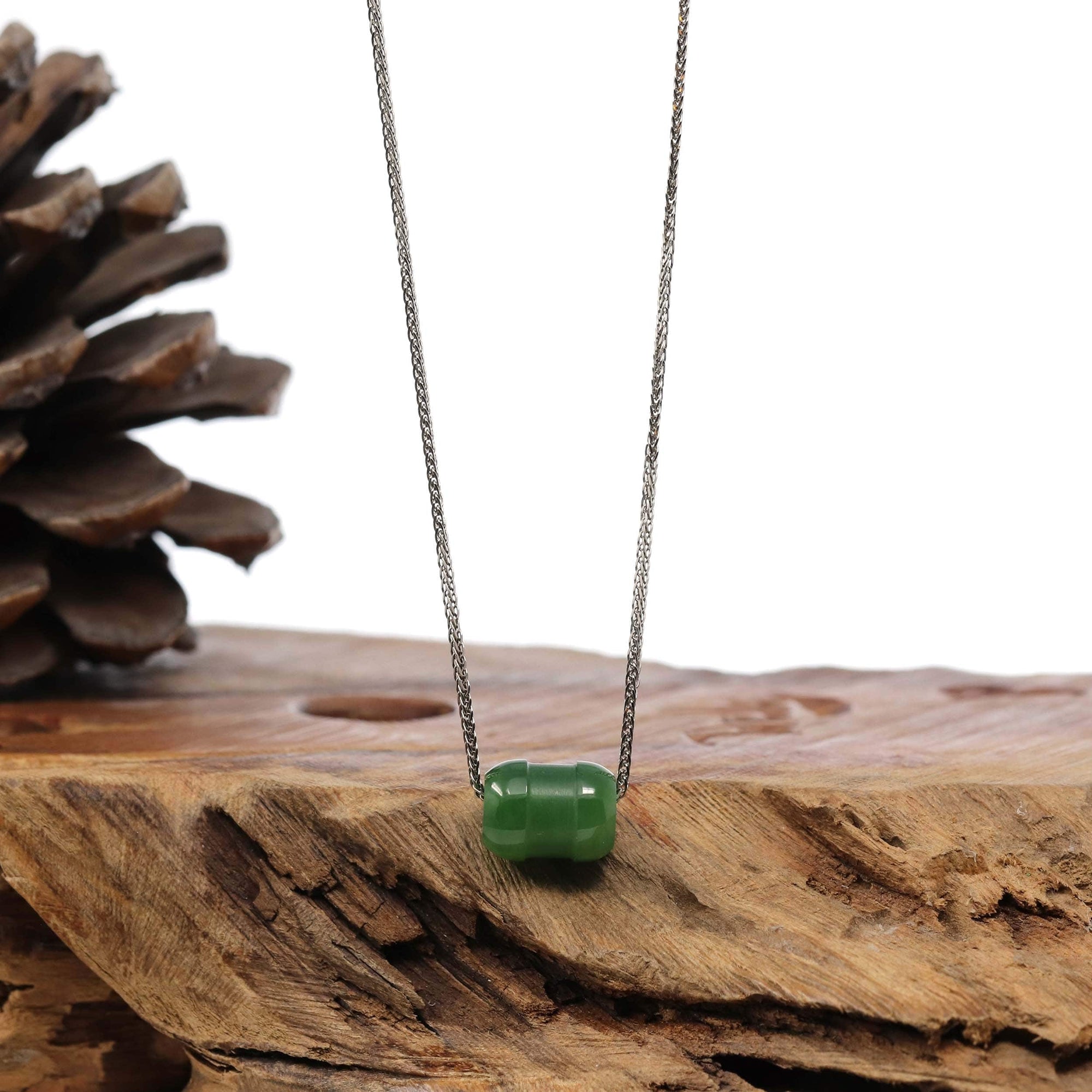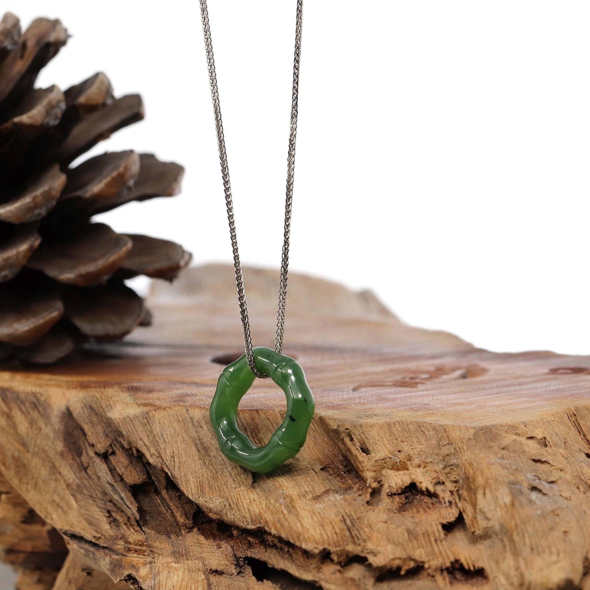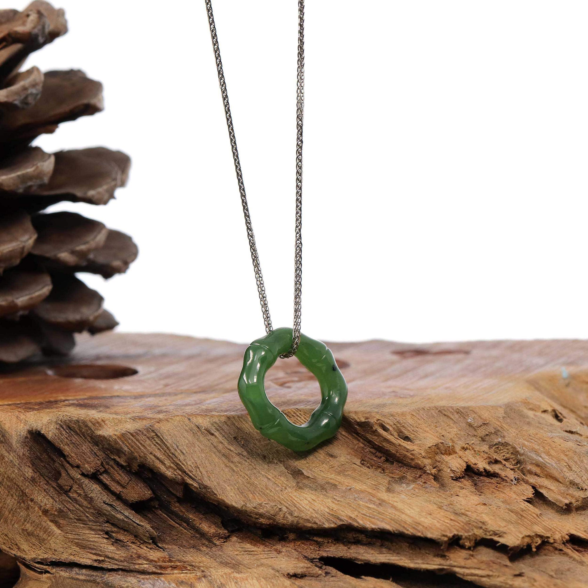 Baikalla™ "Good Luck Button" Necklace Forest Green Jade Lucky KouKou Pendant Necklace