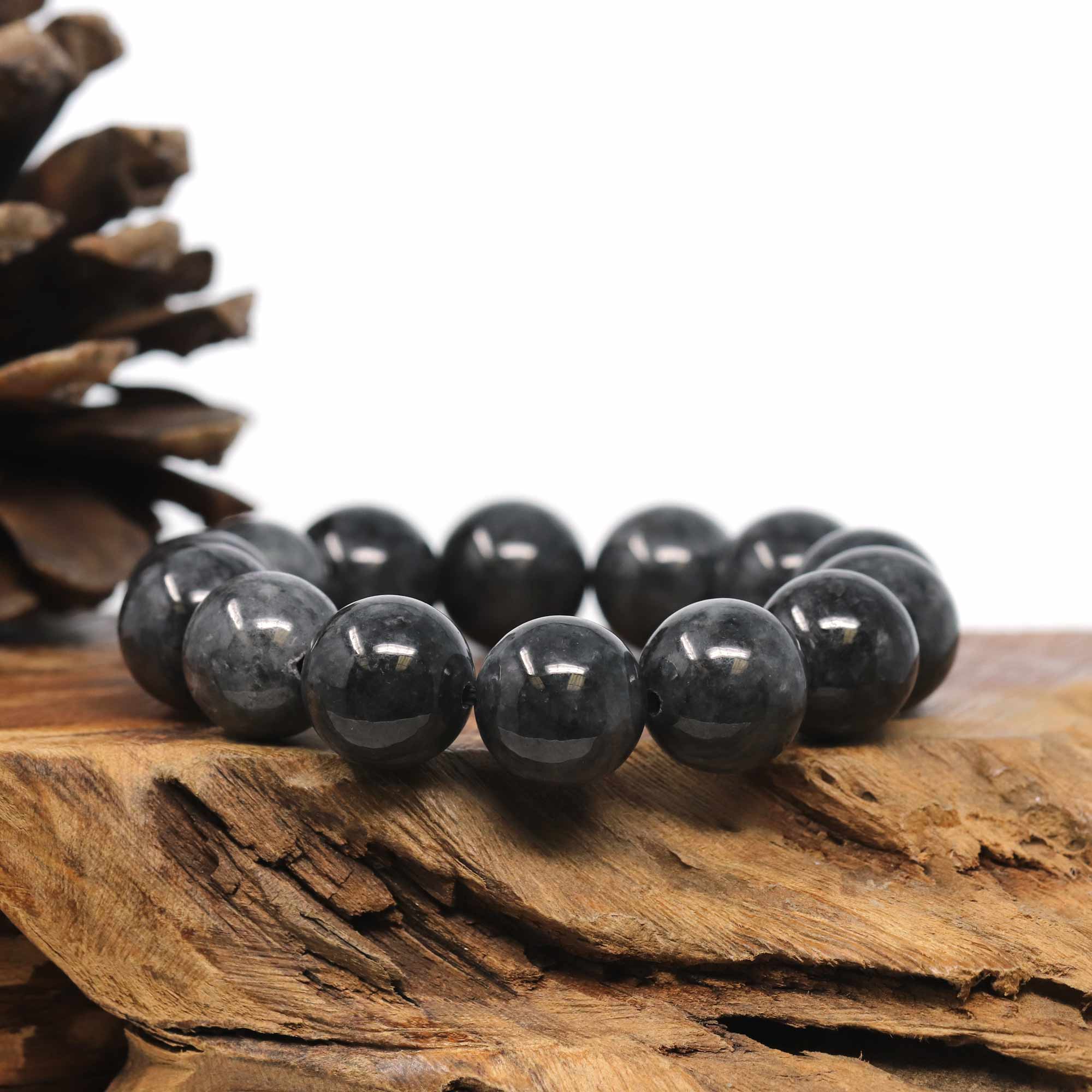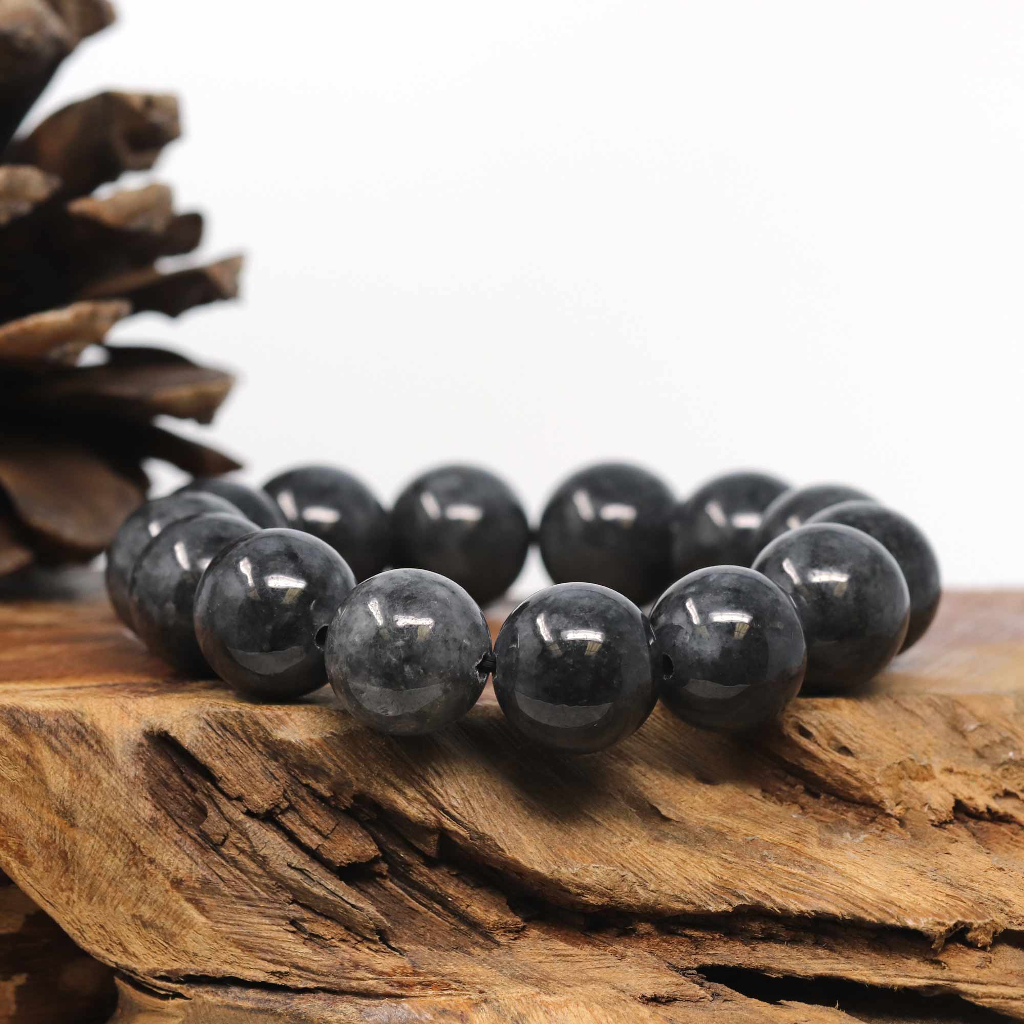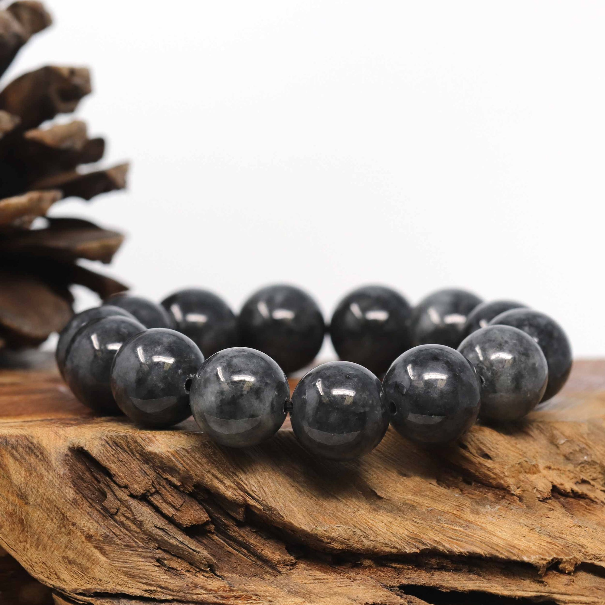 Baikalla Jewelry jade beads bracelet Baikalla WuJi "乌鸡" Black & Grey Jadeite Jade Large Round Beads Men's Bracelet (15 & 13mm)