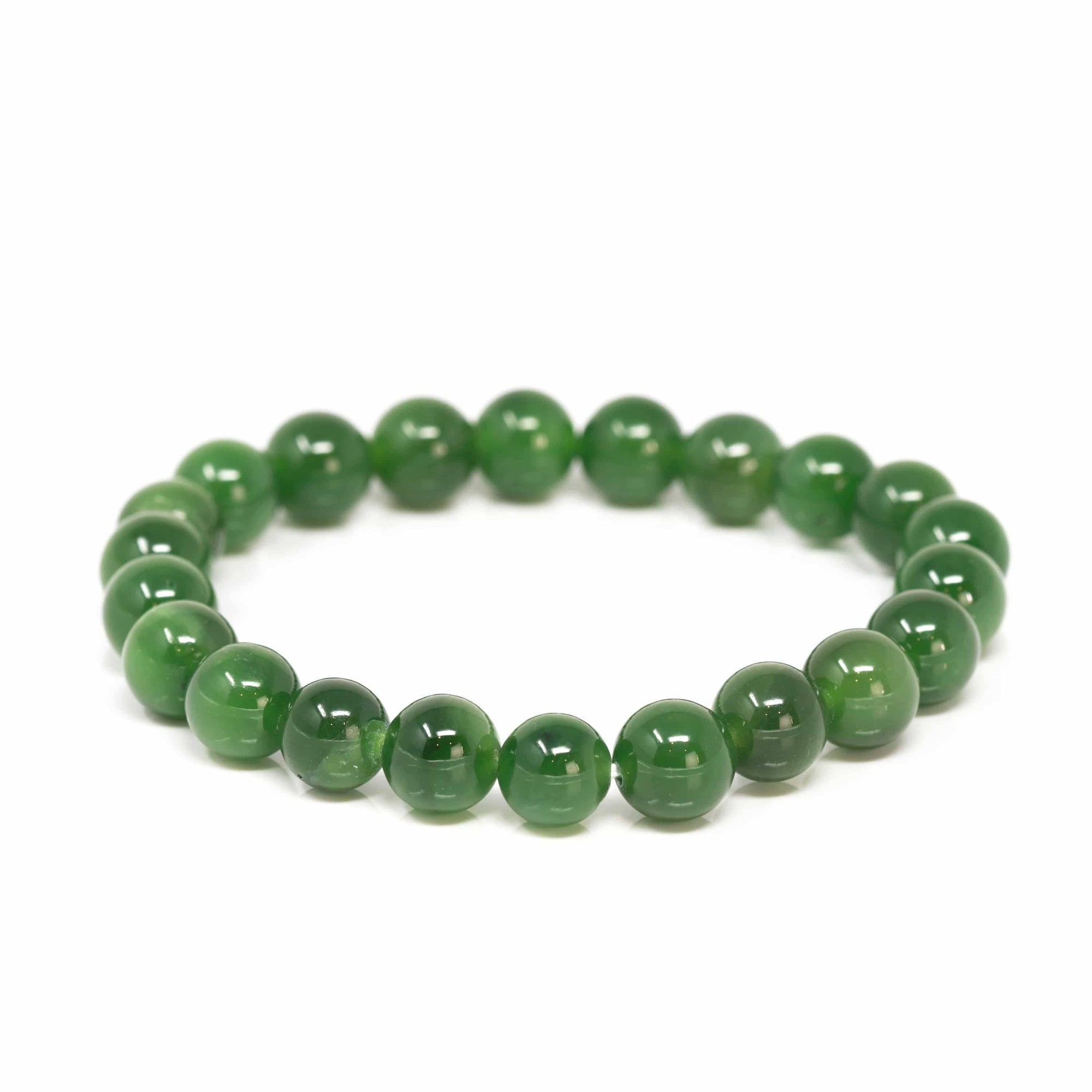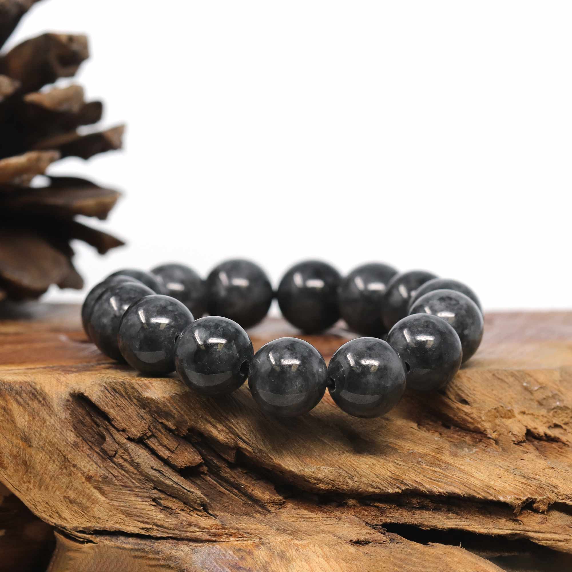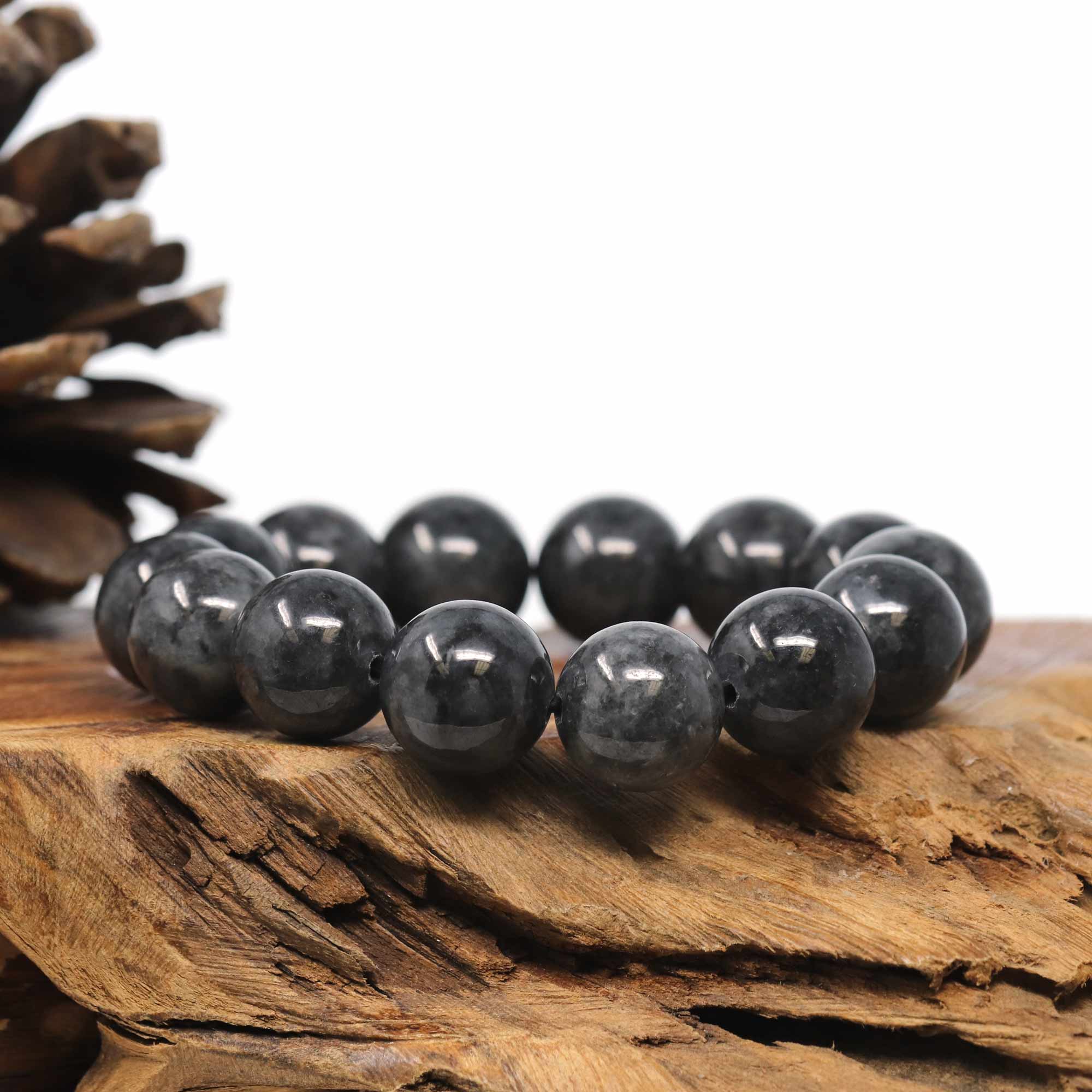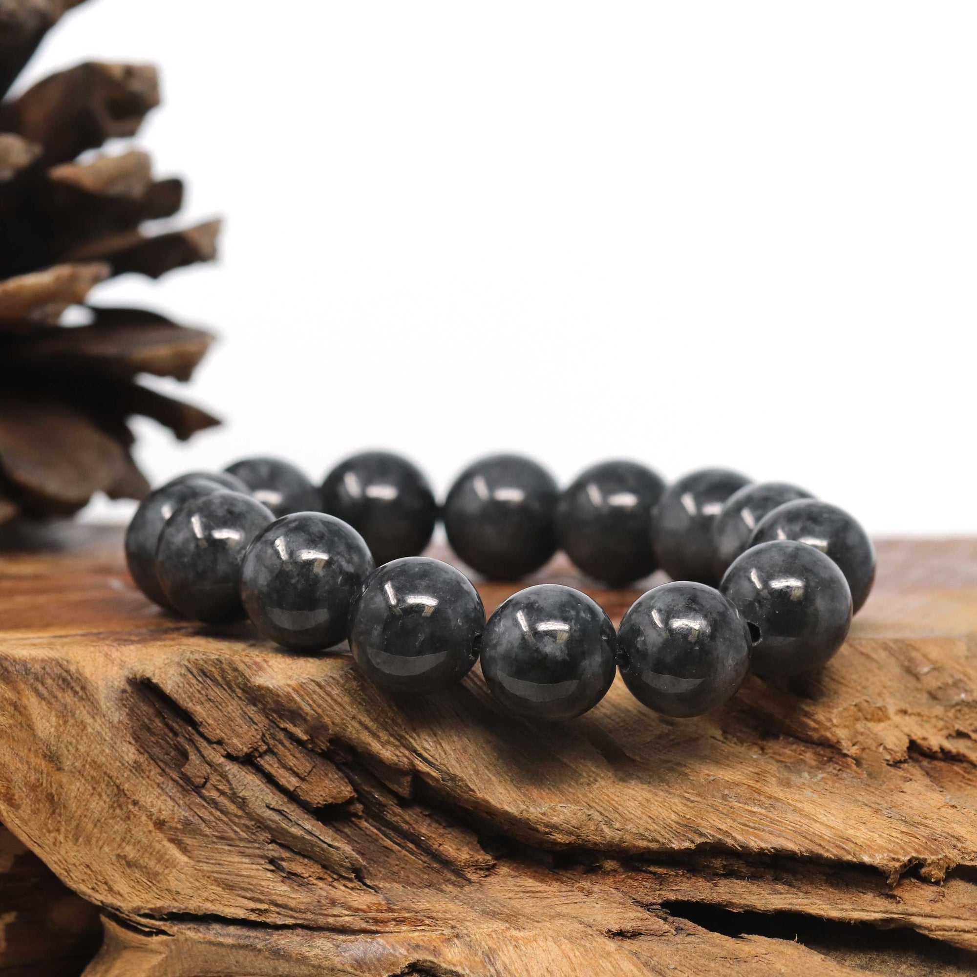Baikalla WuJi "乌鸡" Black & Grey Jadeite Jade Large Round Beads Men's Bracelet (13mm)