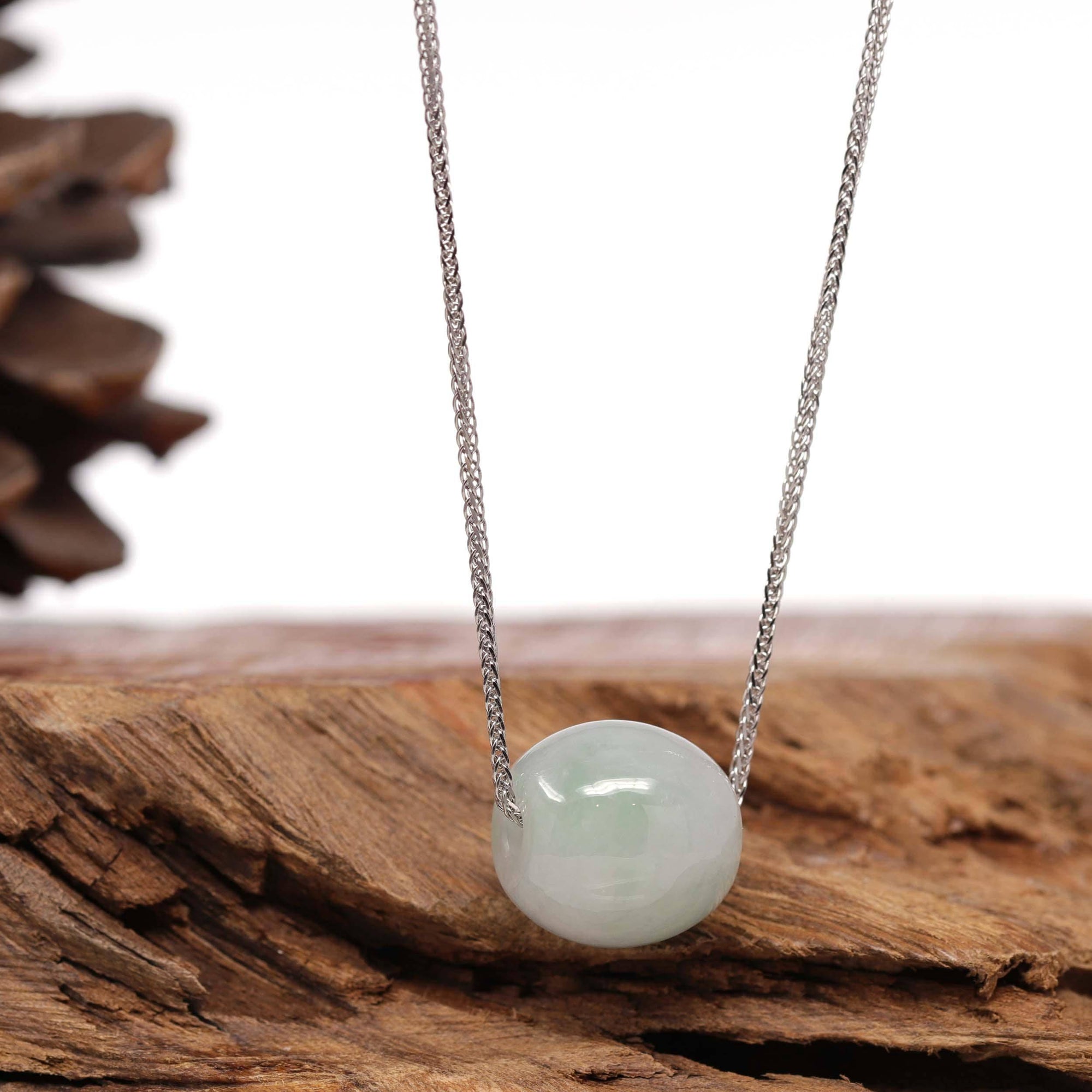 Baikalla™ "Good Luck Button" Necklace Real Ice Blue Green Jade Lucky TongTong Pendant Necklace
